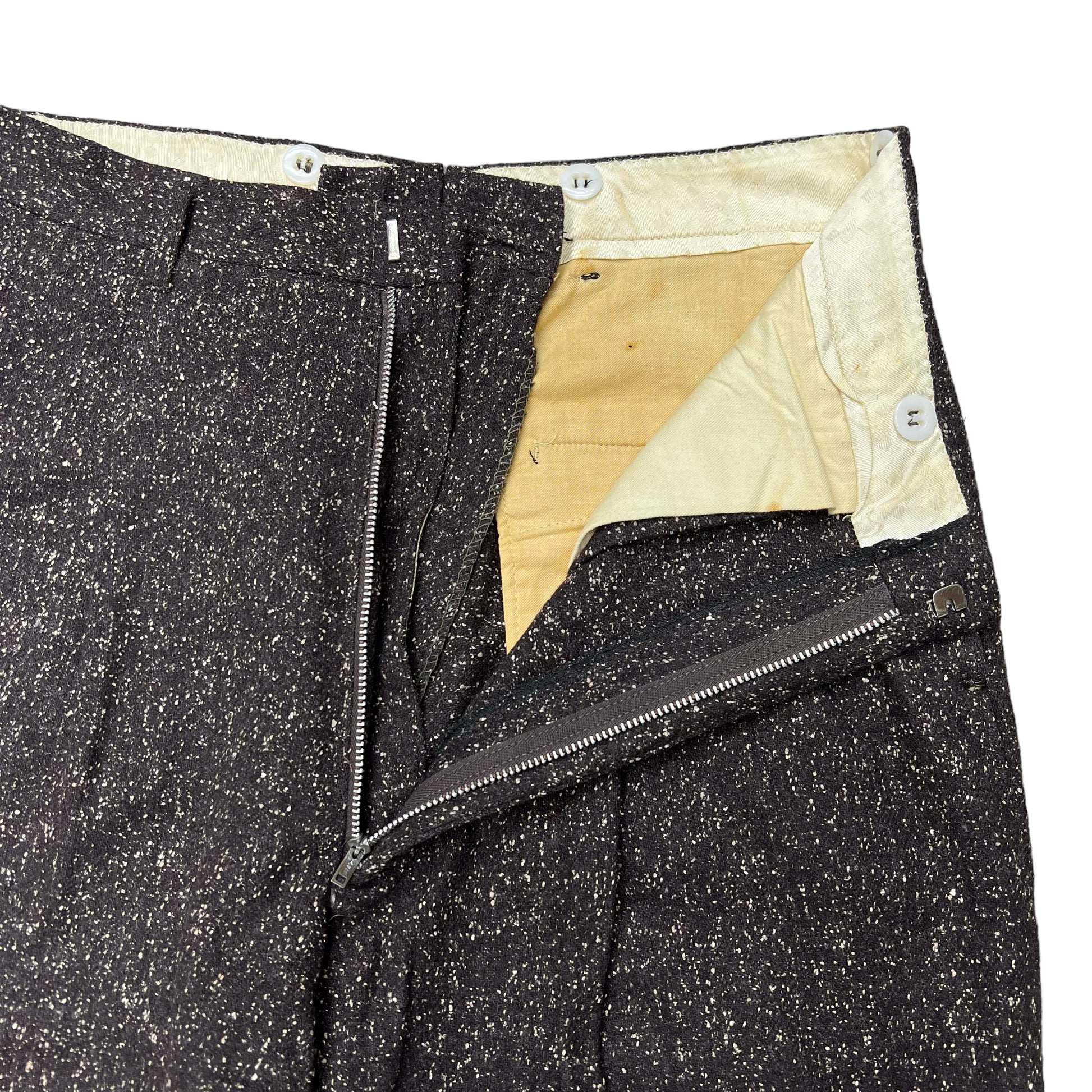1940s Brown soft cotton/wool fleck drop loop trousers (30w)