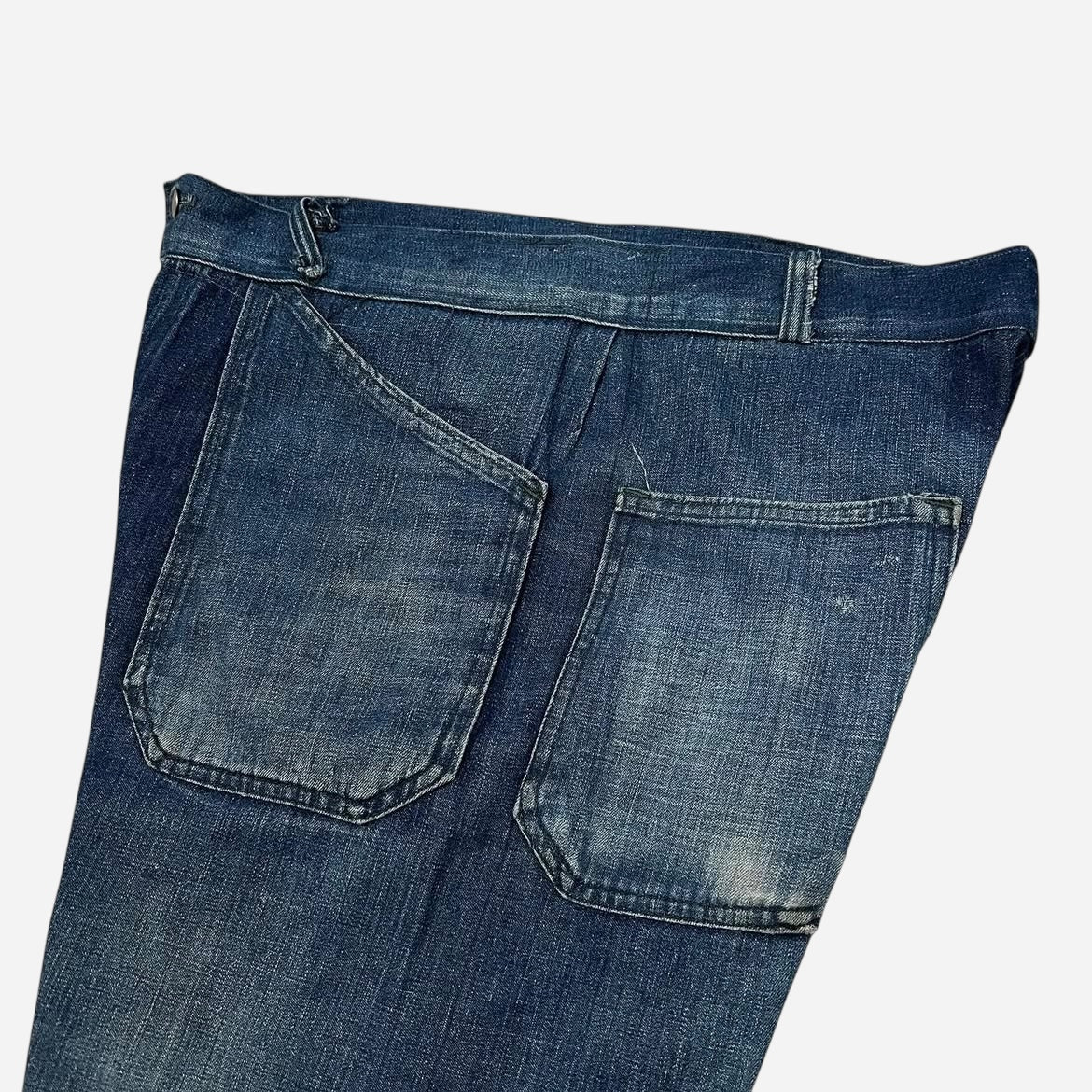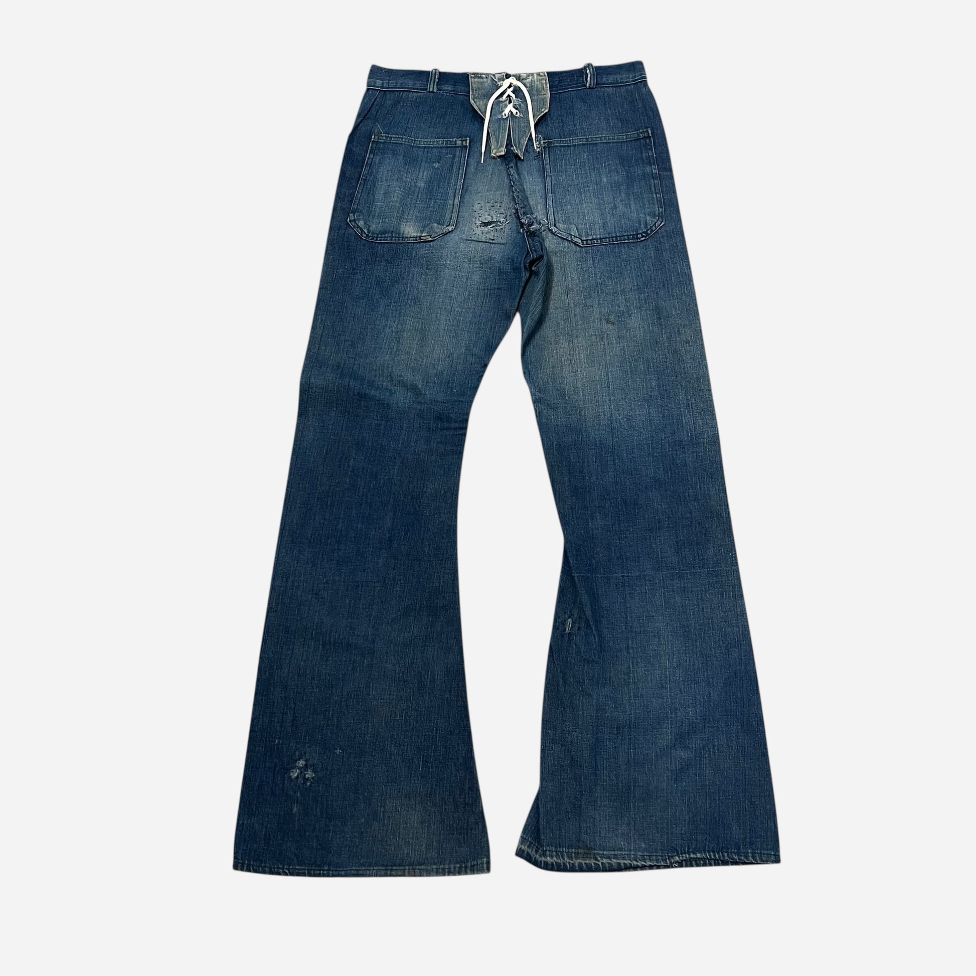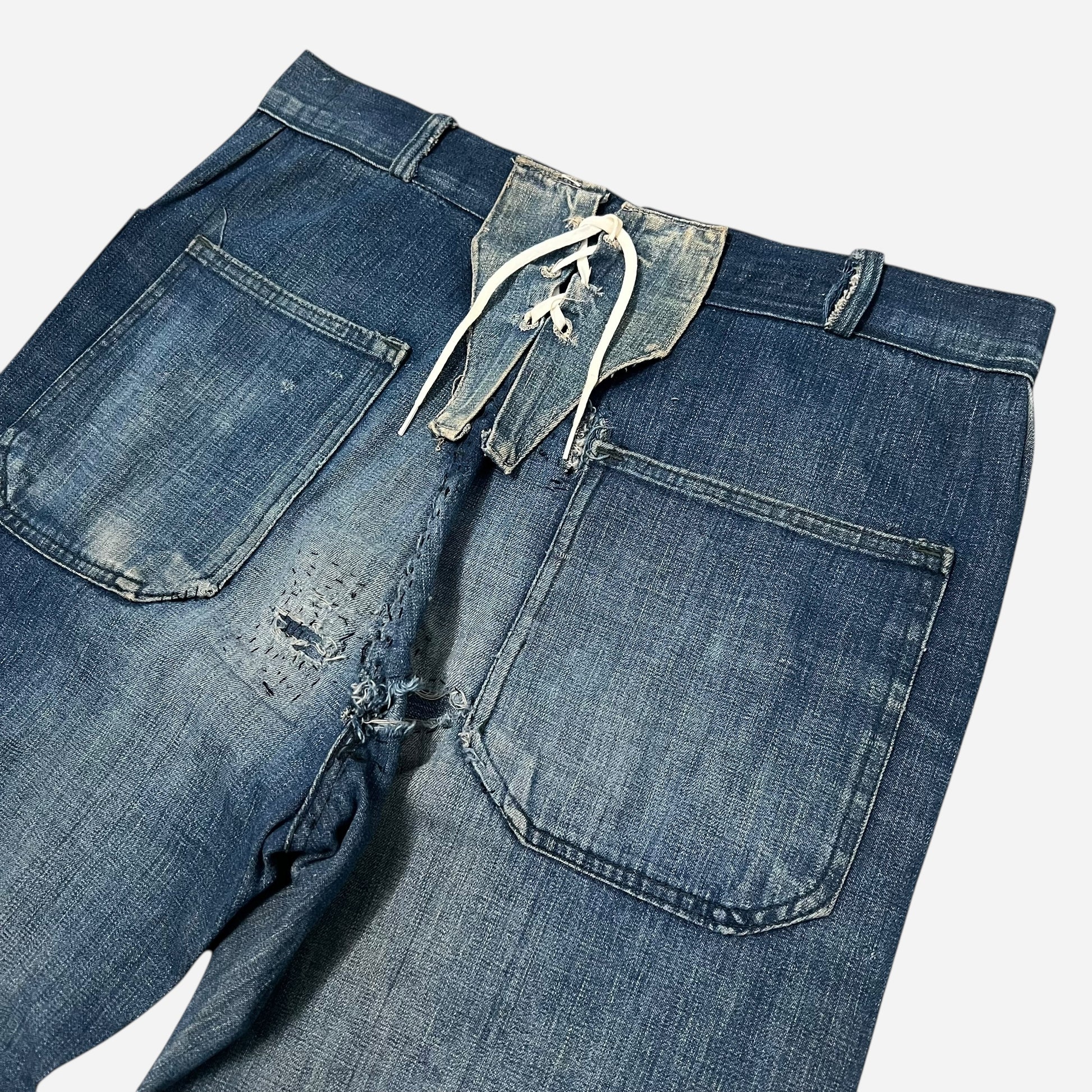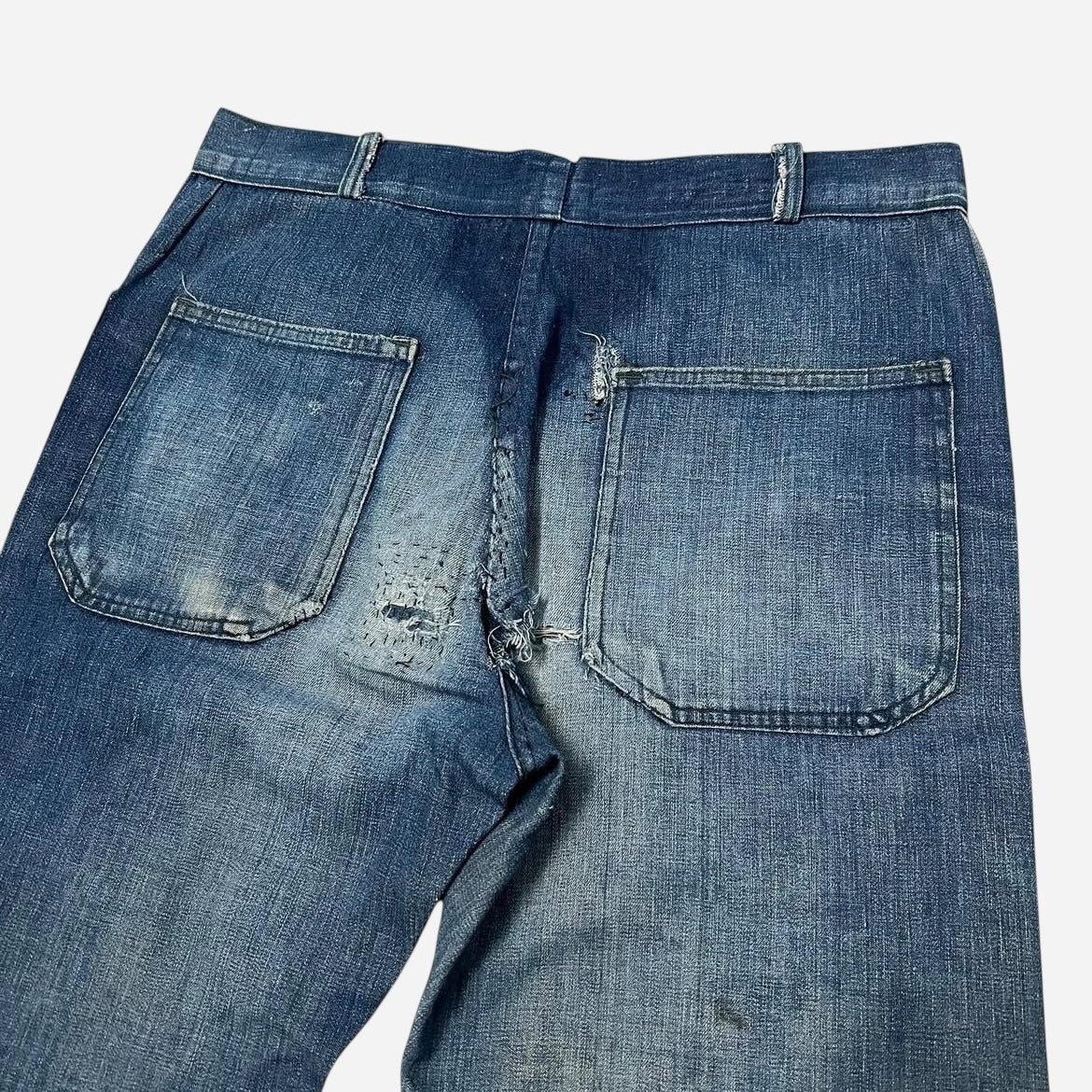 1940s Civilian purchase shipyard worker USN enlisted fatigue pocket lace back flared denim (33w)