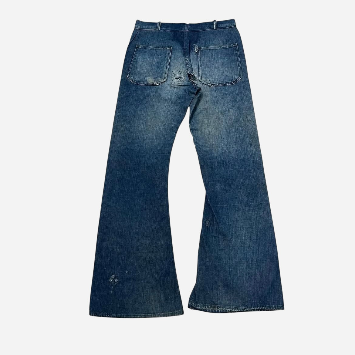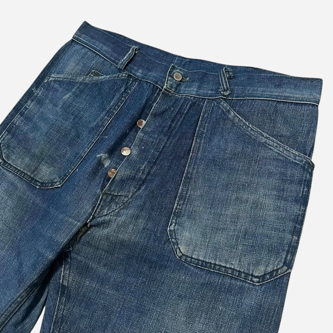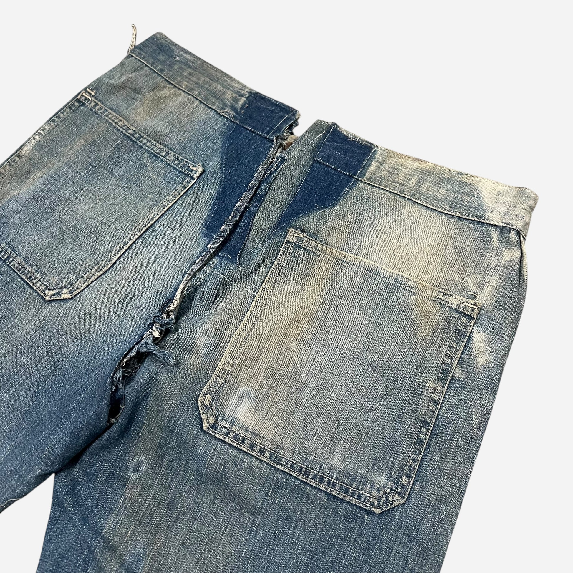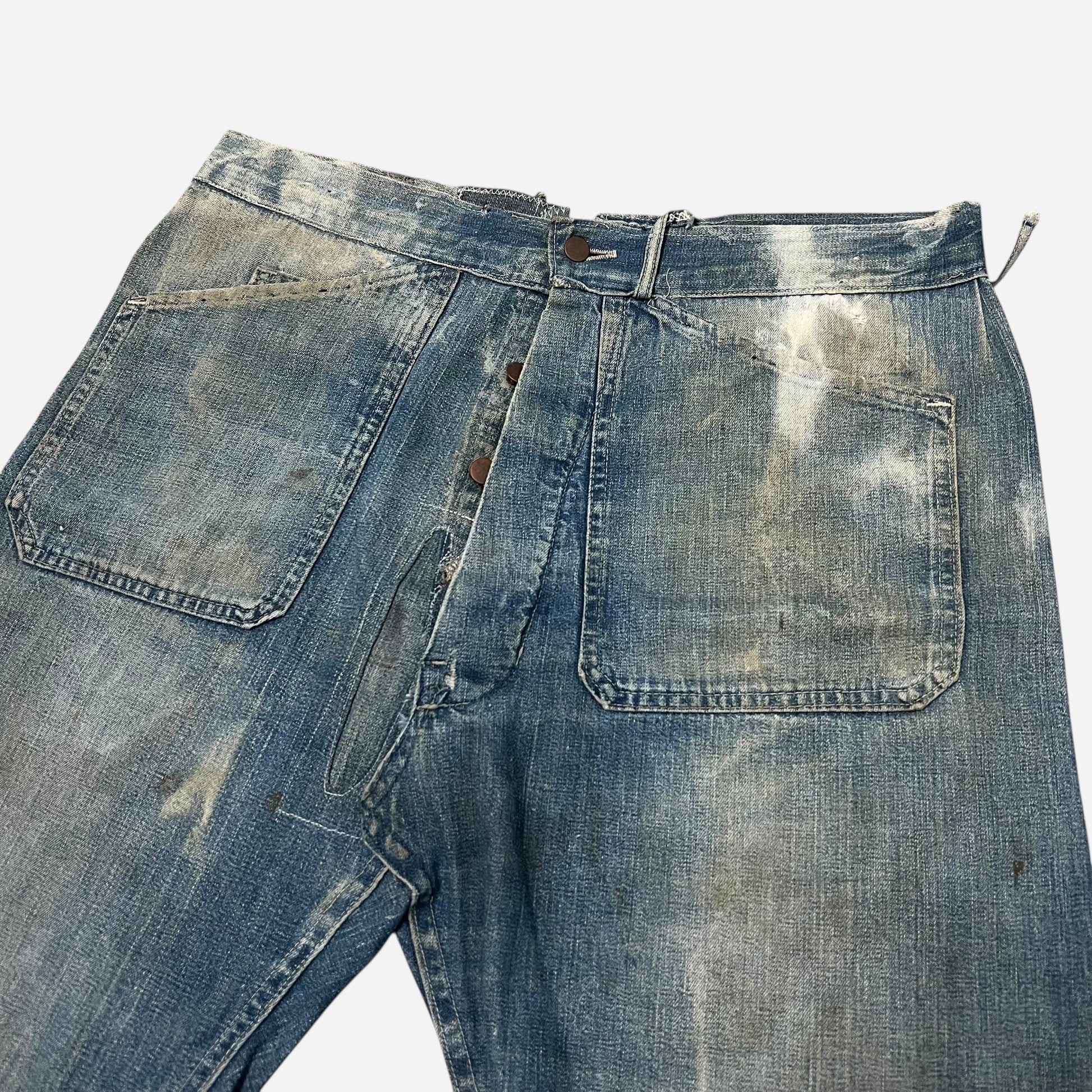 1940s Civilian purchase shipyard worker USN enlisted fatigue pocket lace back flared denim (33w)