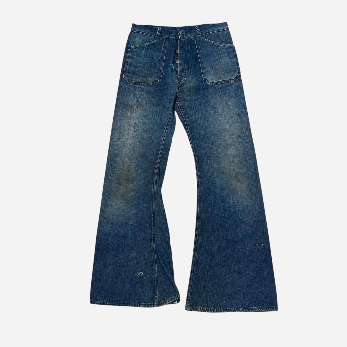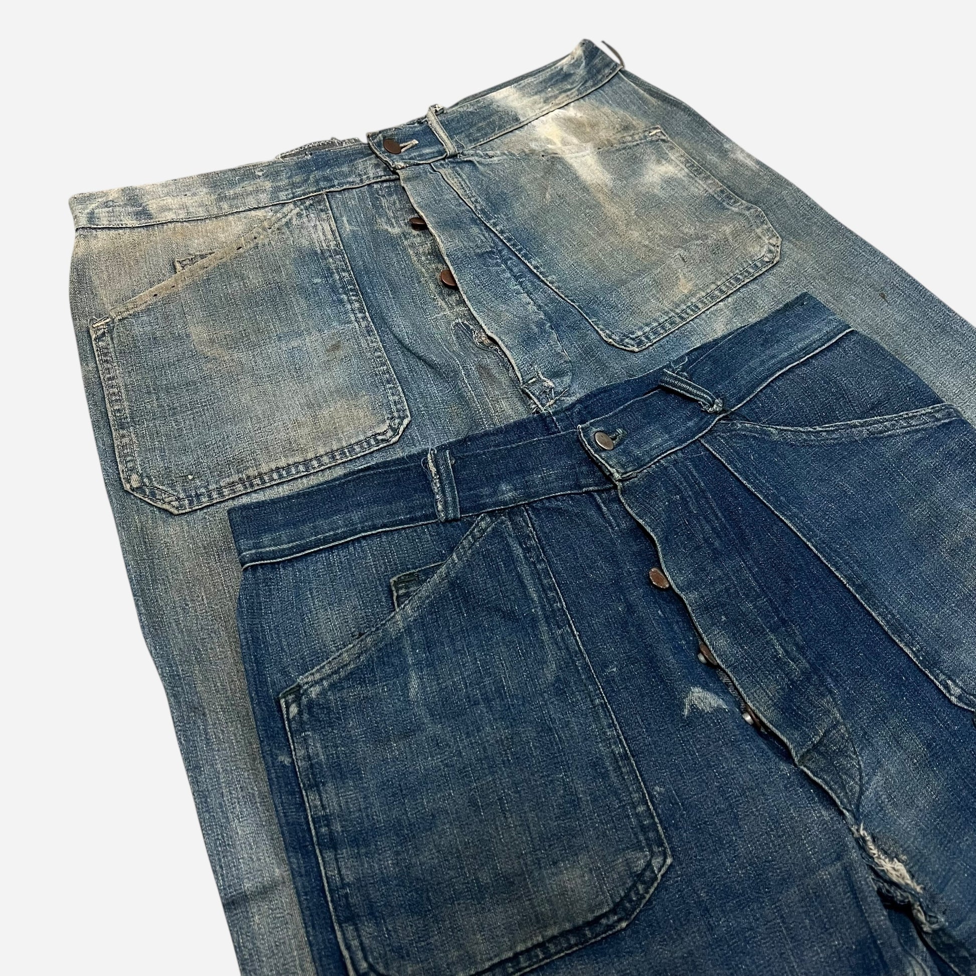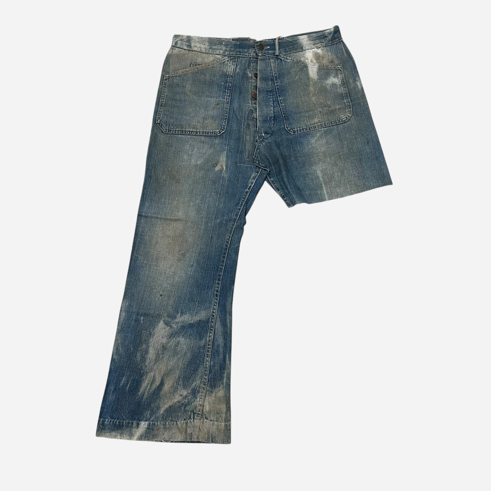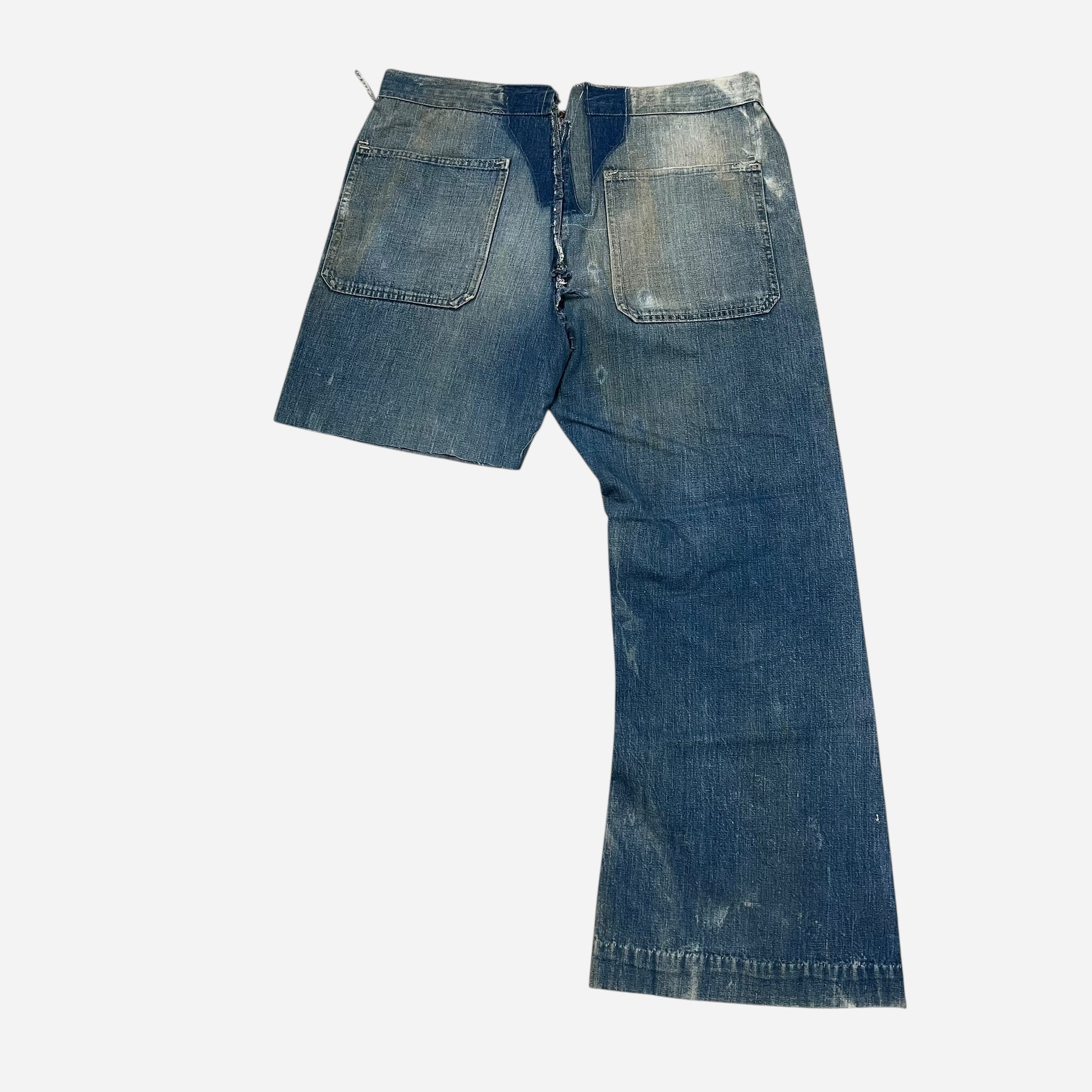1940s Civilian purchase shipyard worker USN enlisted fatigue pocket lace back flared denim (33w)
