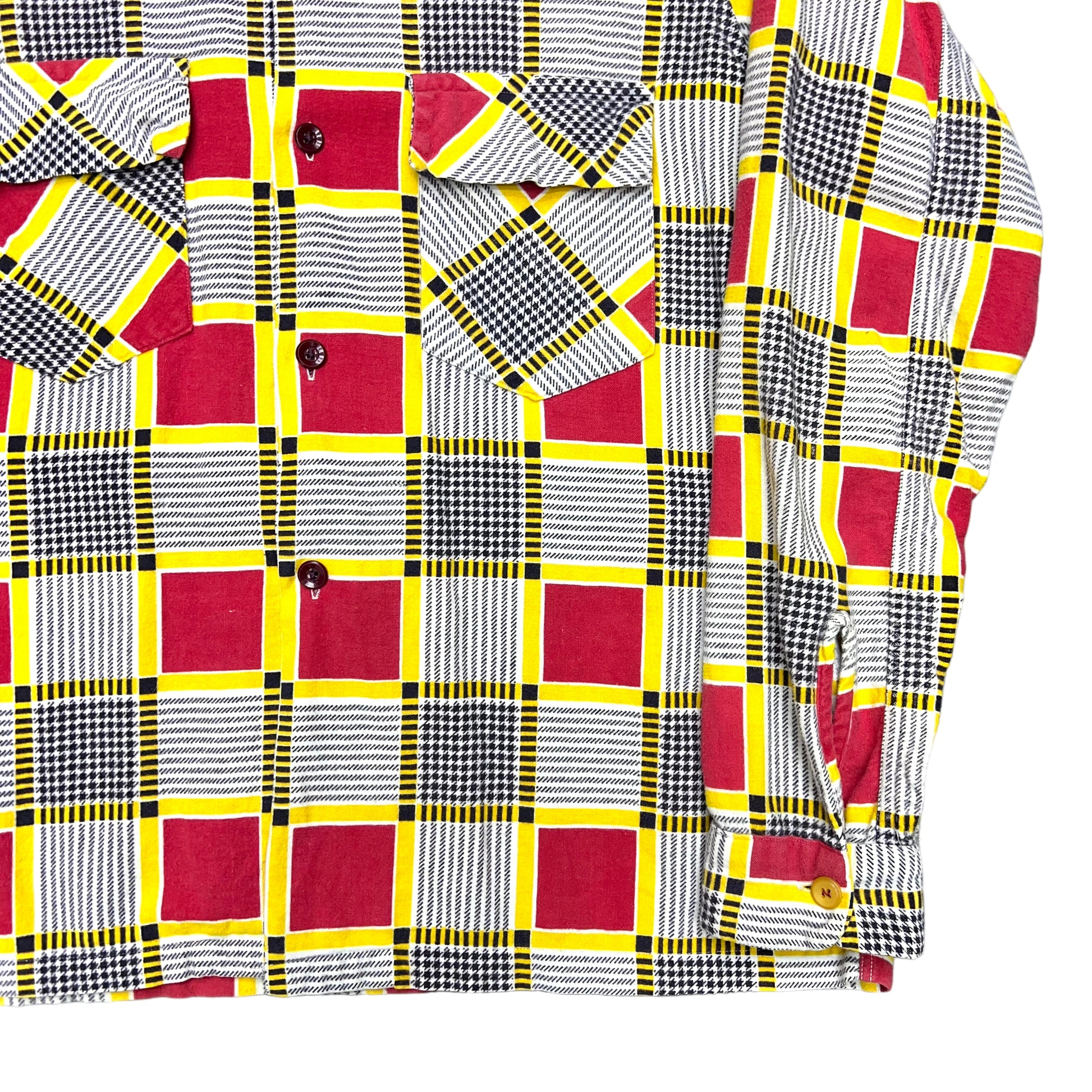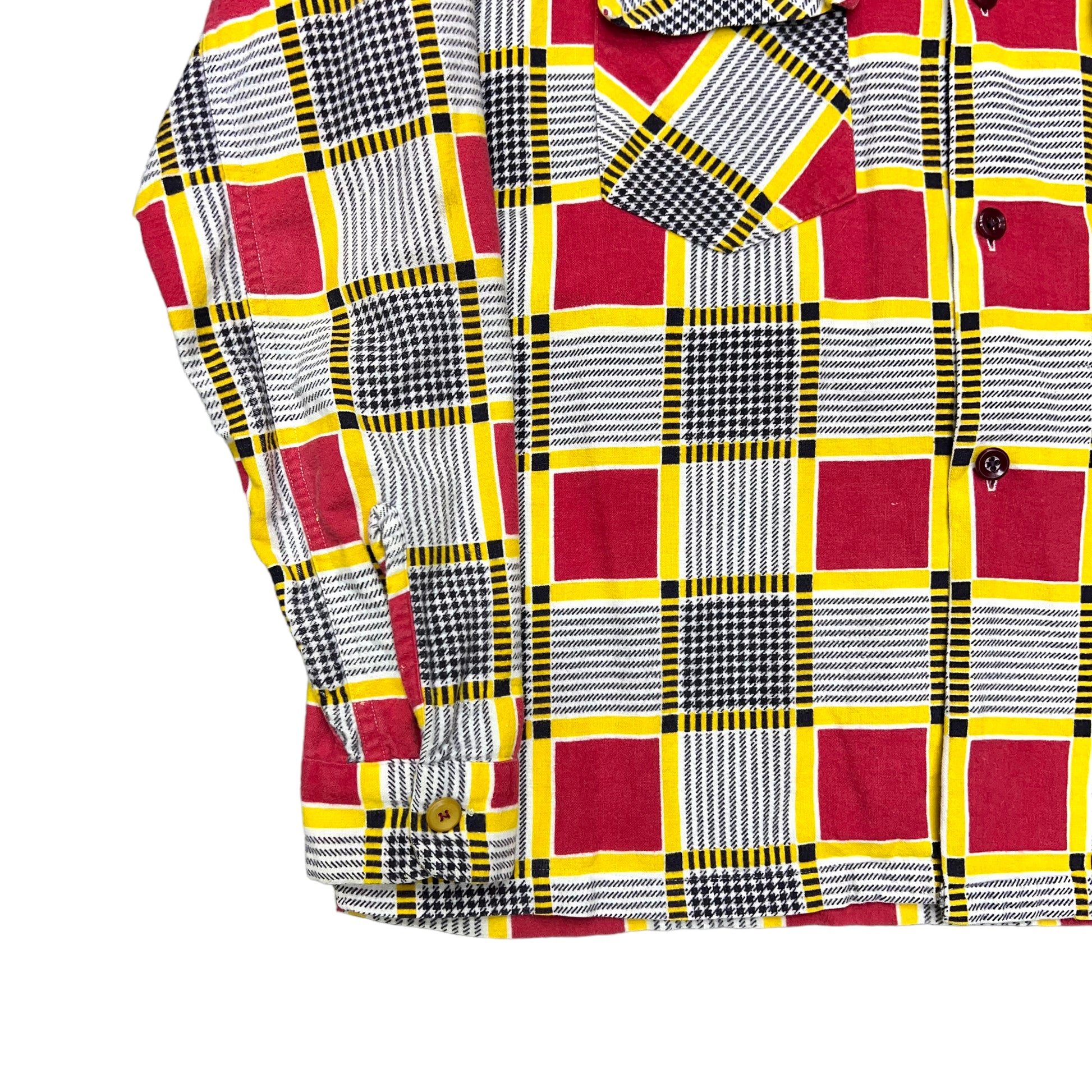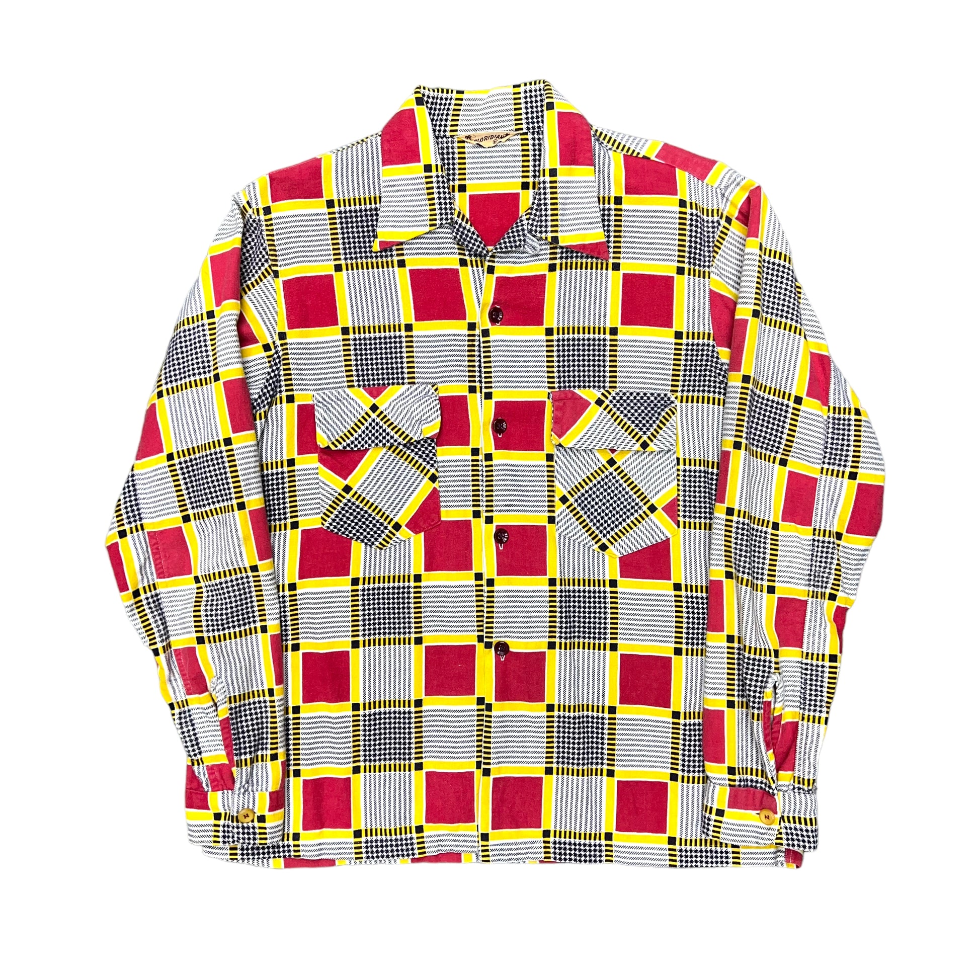 1940s Cotton printed plaid loop collar shirt Floridian (M)