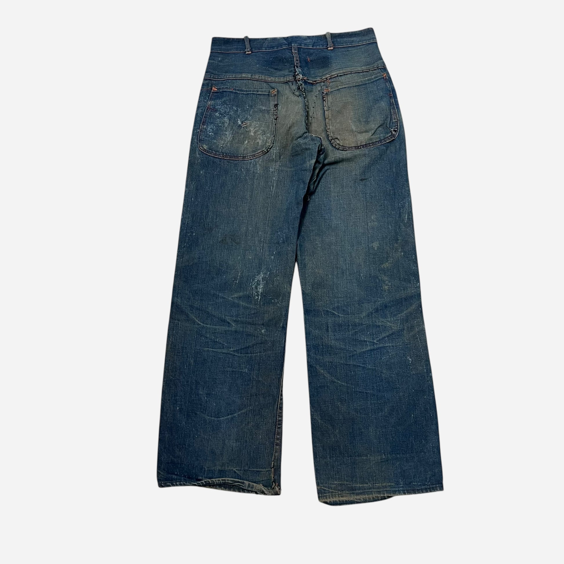 1940s Dark wash ghost buckle back donut button fly jeans (29w)