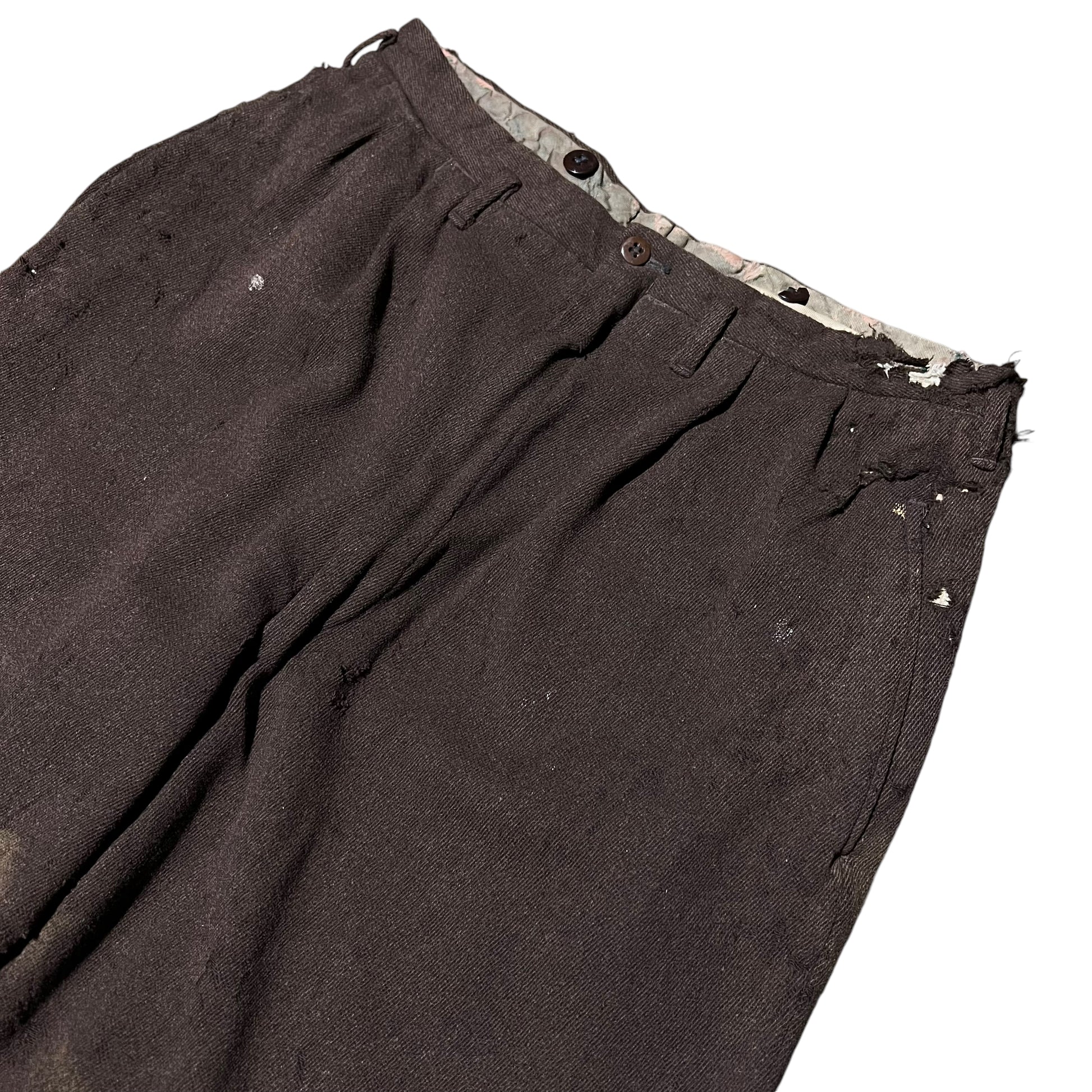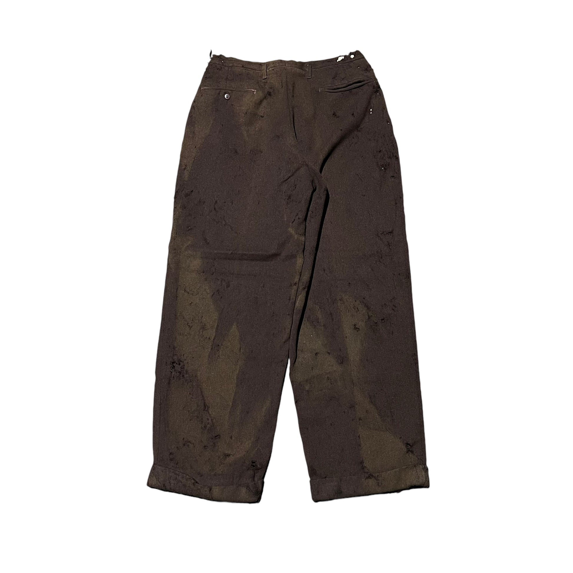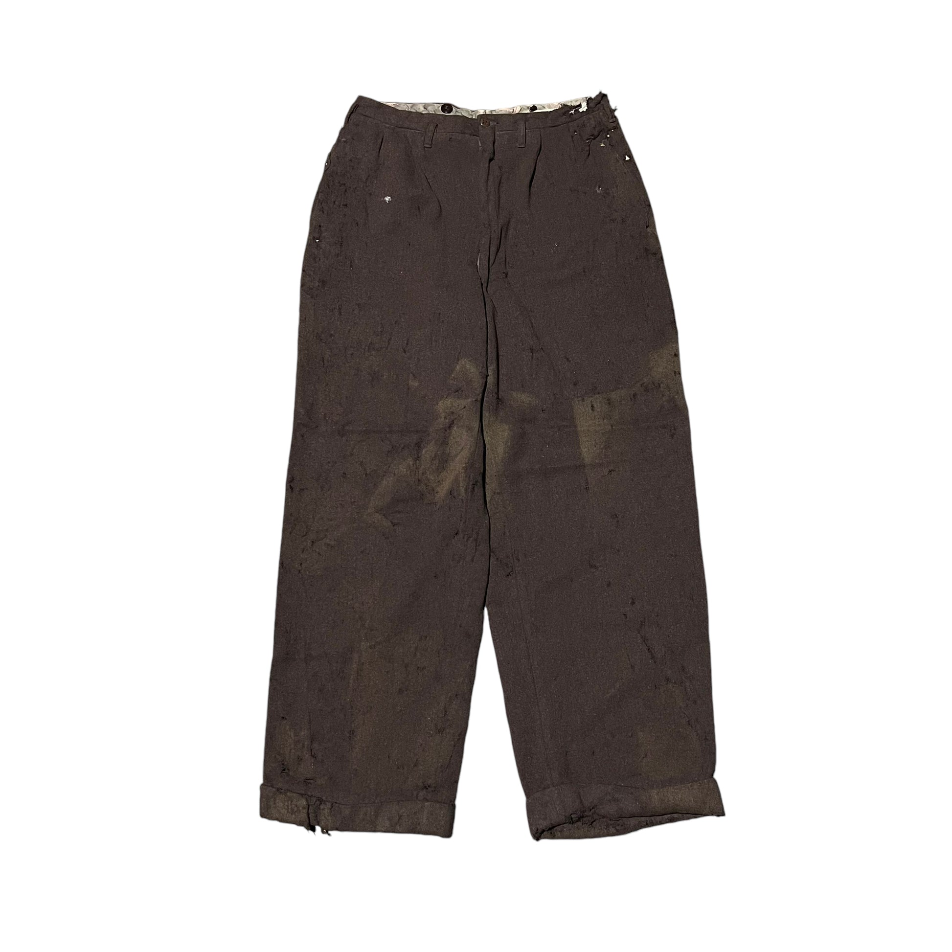 1940s Distressed brown wool drop loop pleated pants (32w)