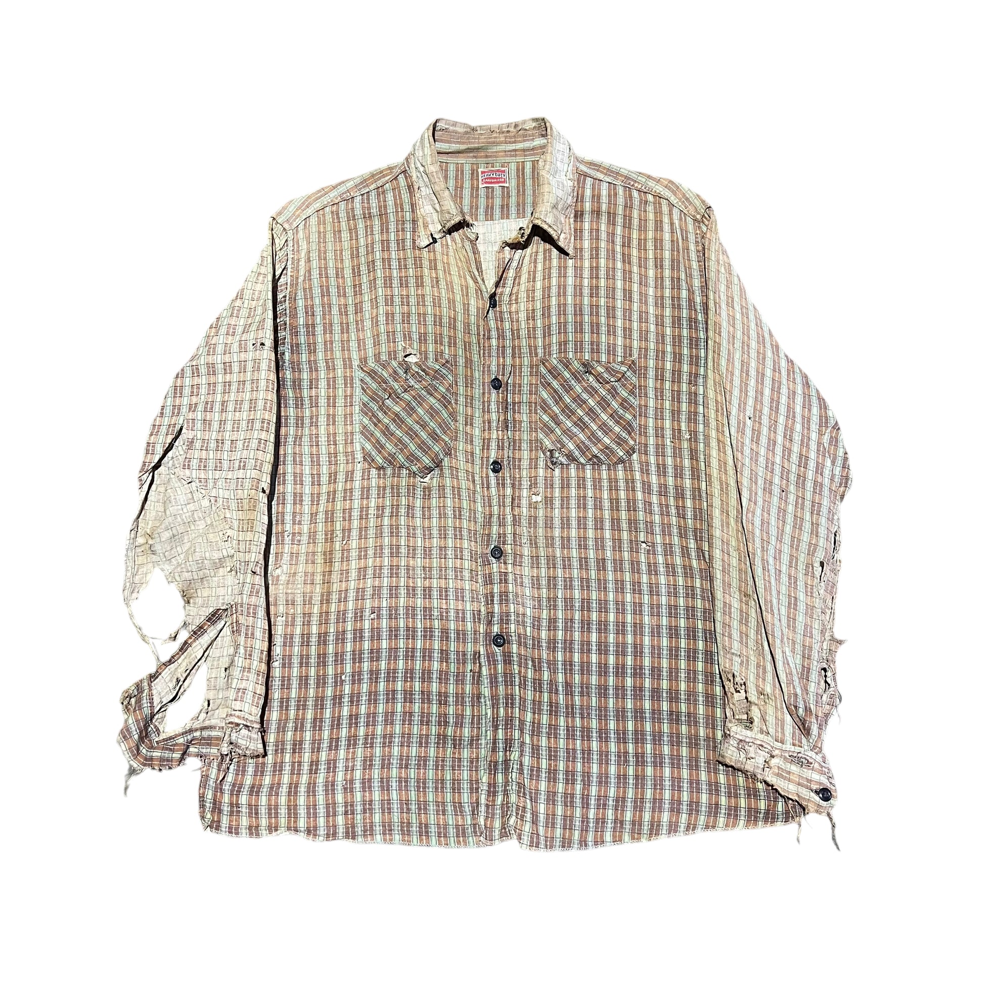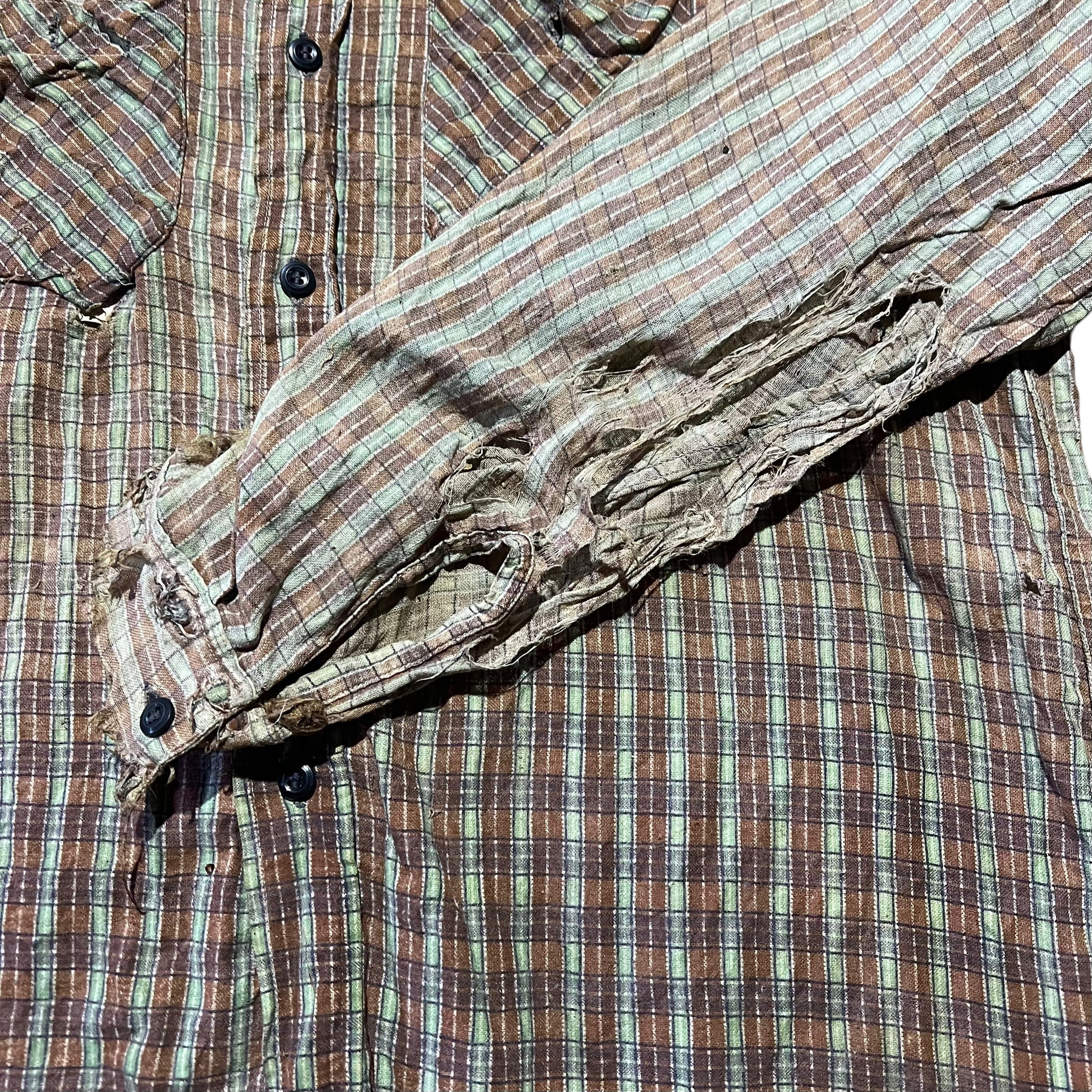 1940s Distressed cotton pattern shirt flannel (M/L)
