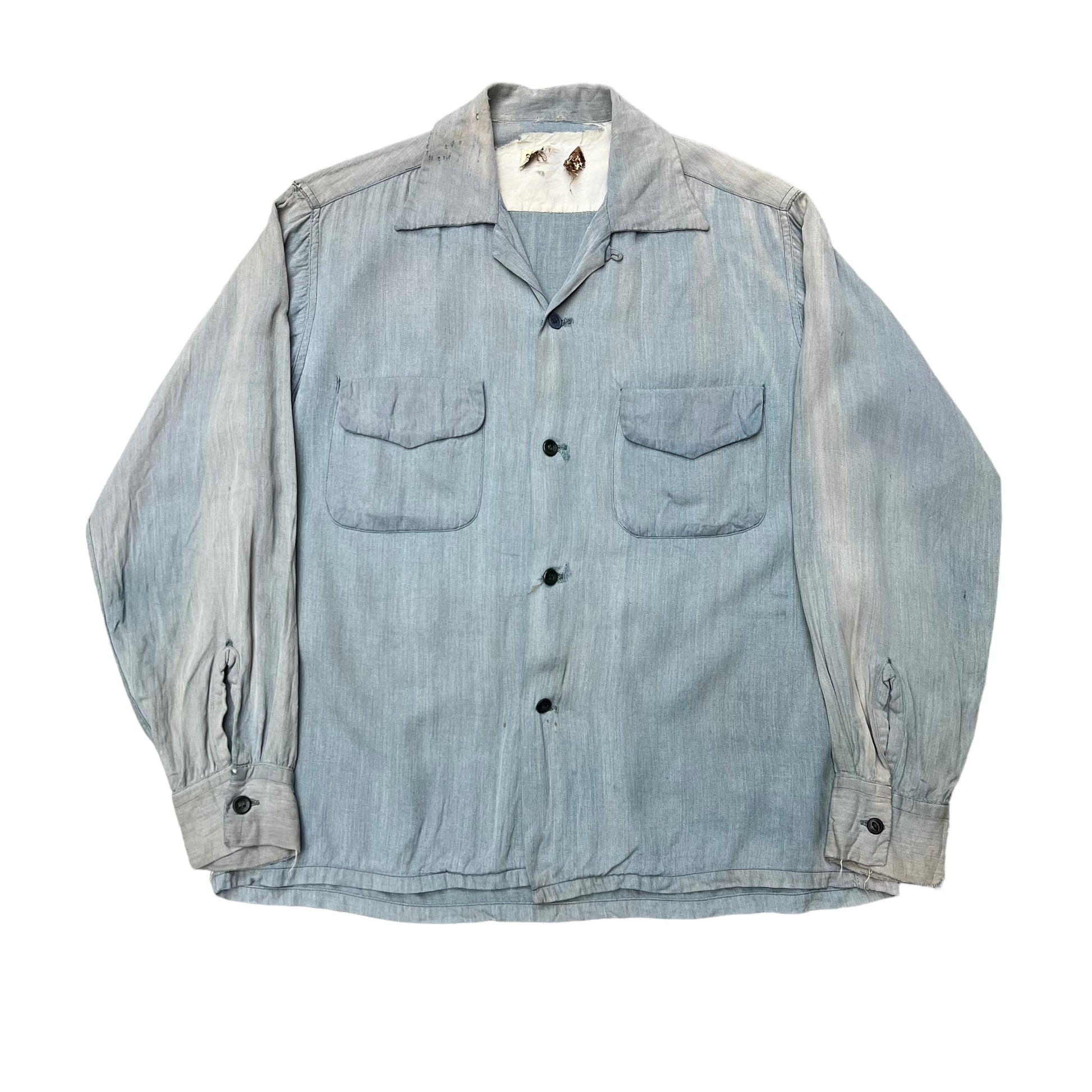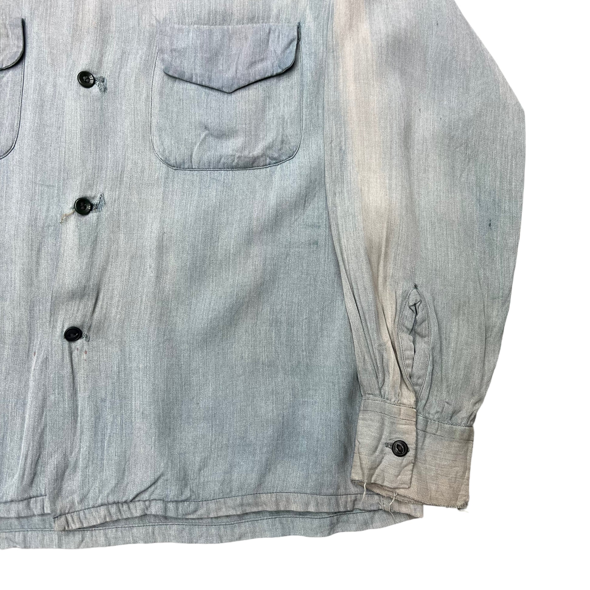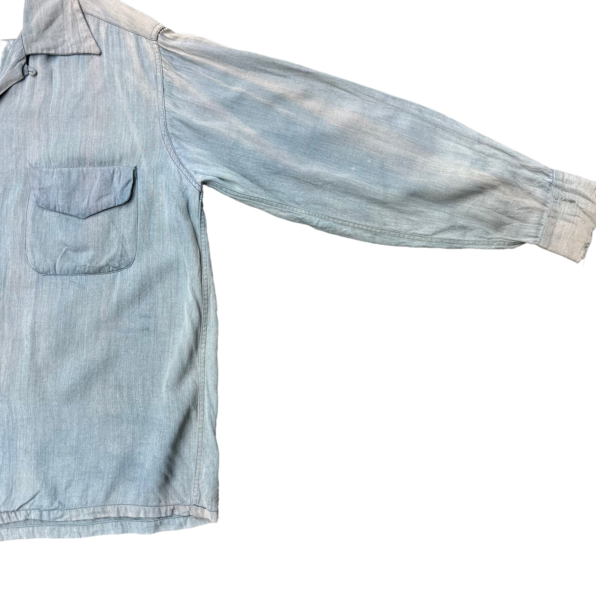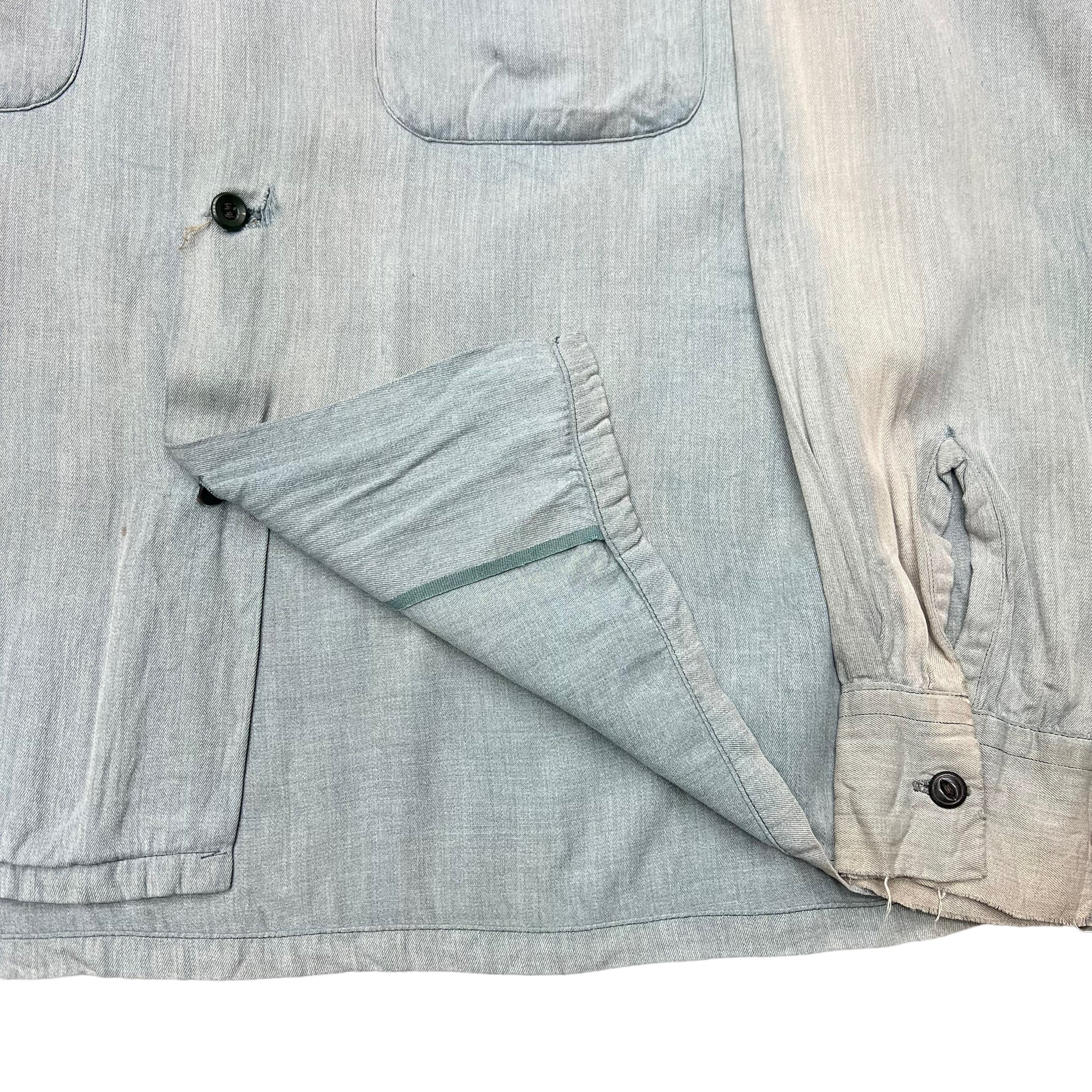 1940s Distressed faded rayon loop collar shirt (S/M)