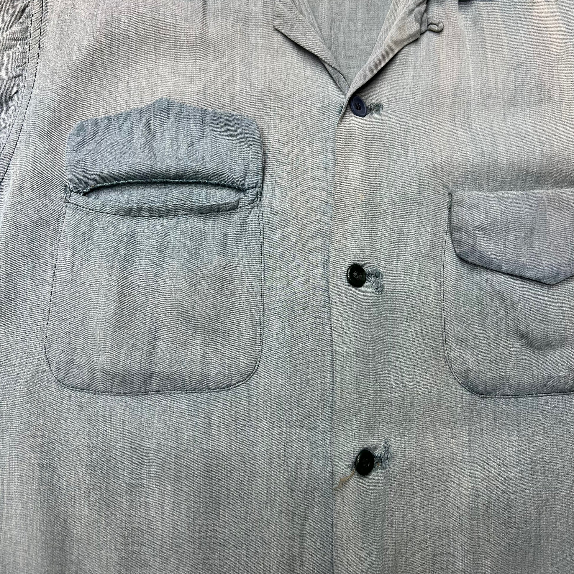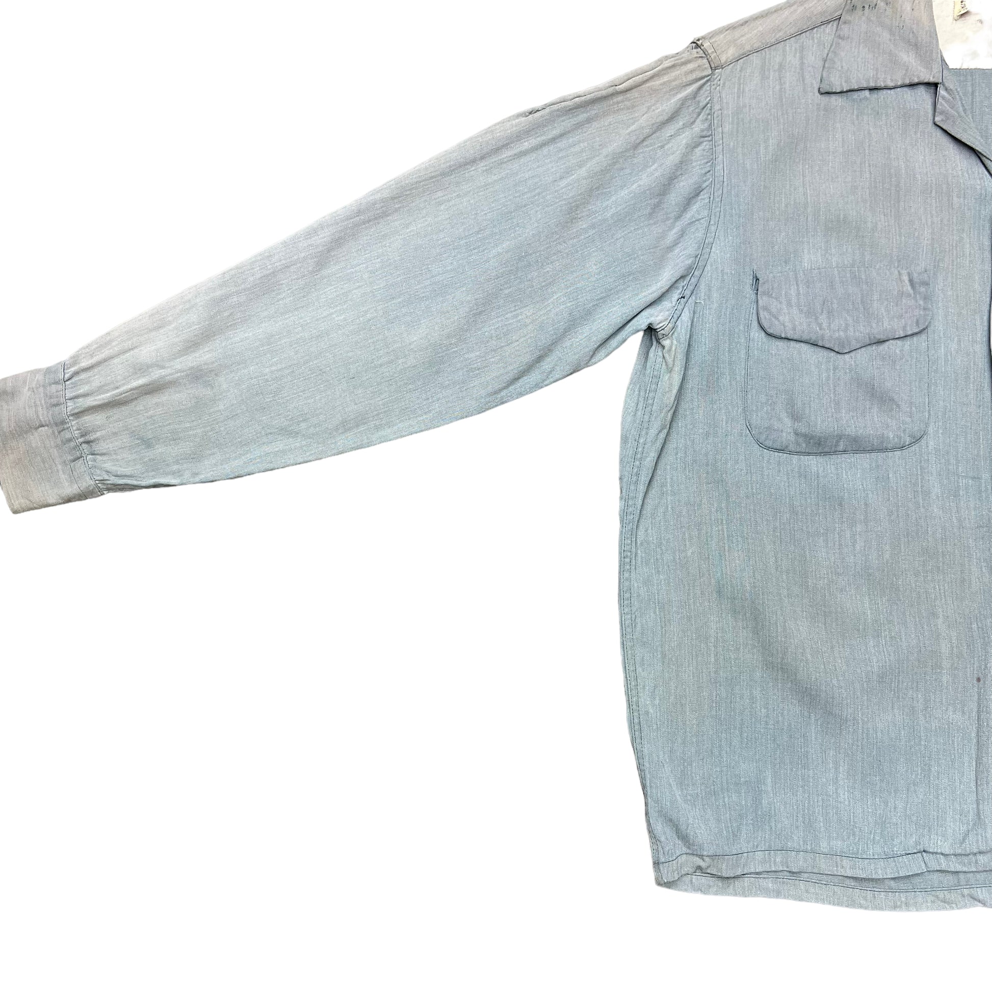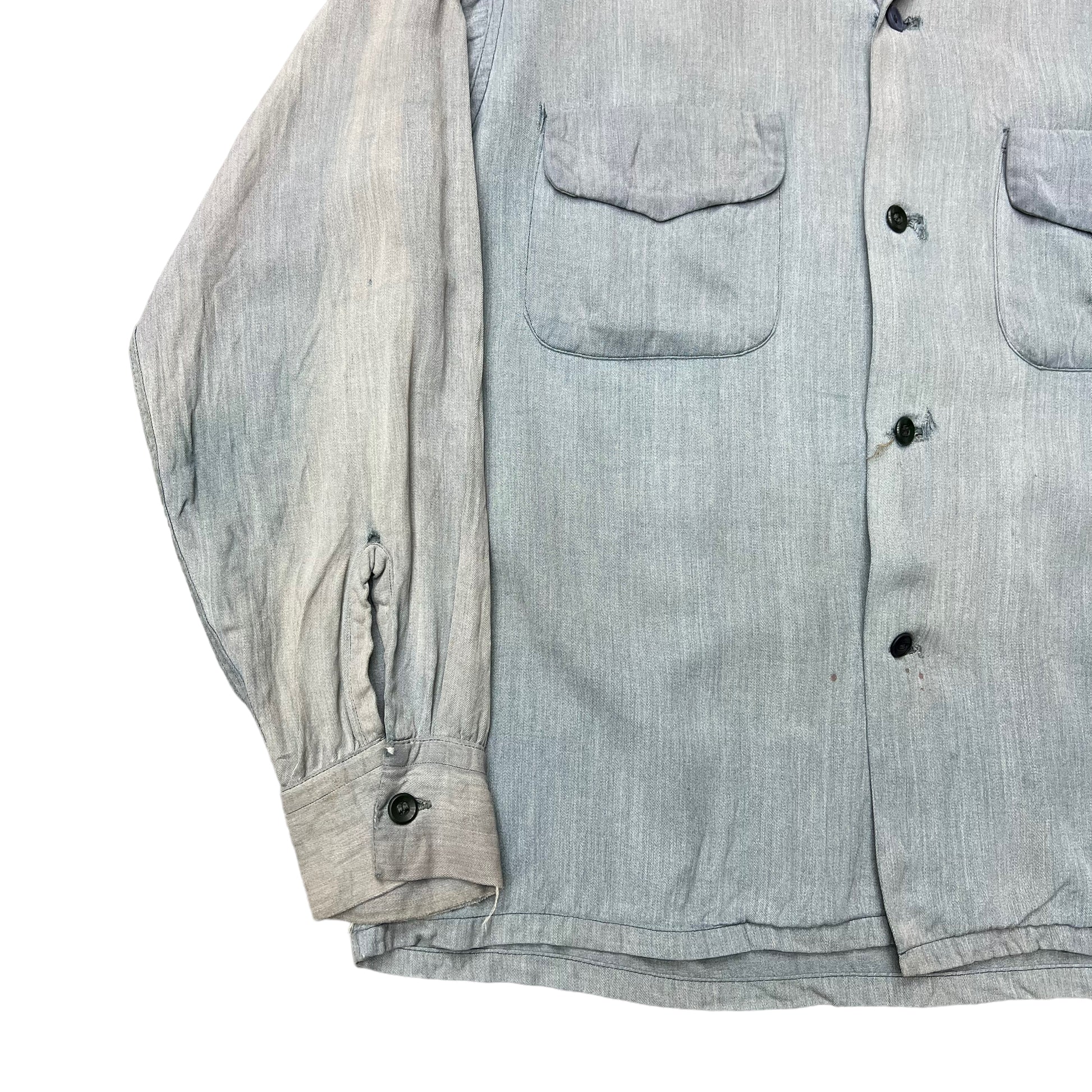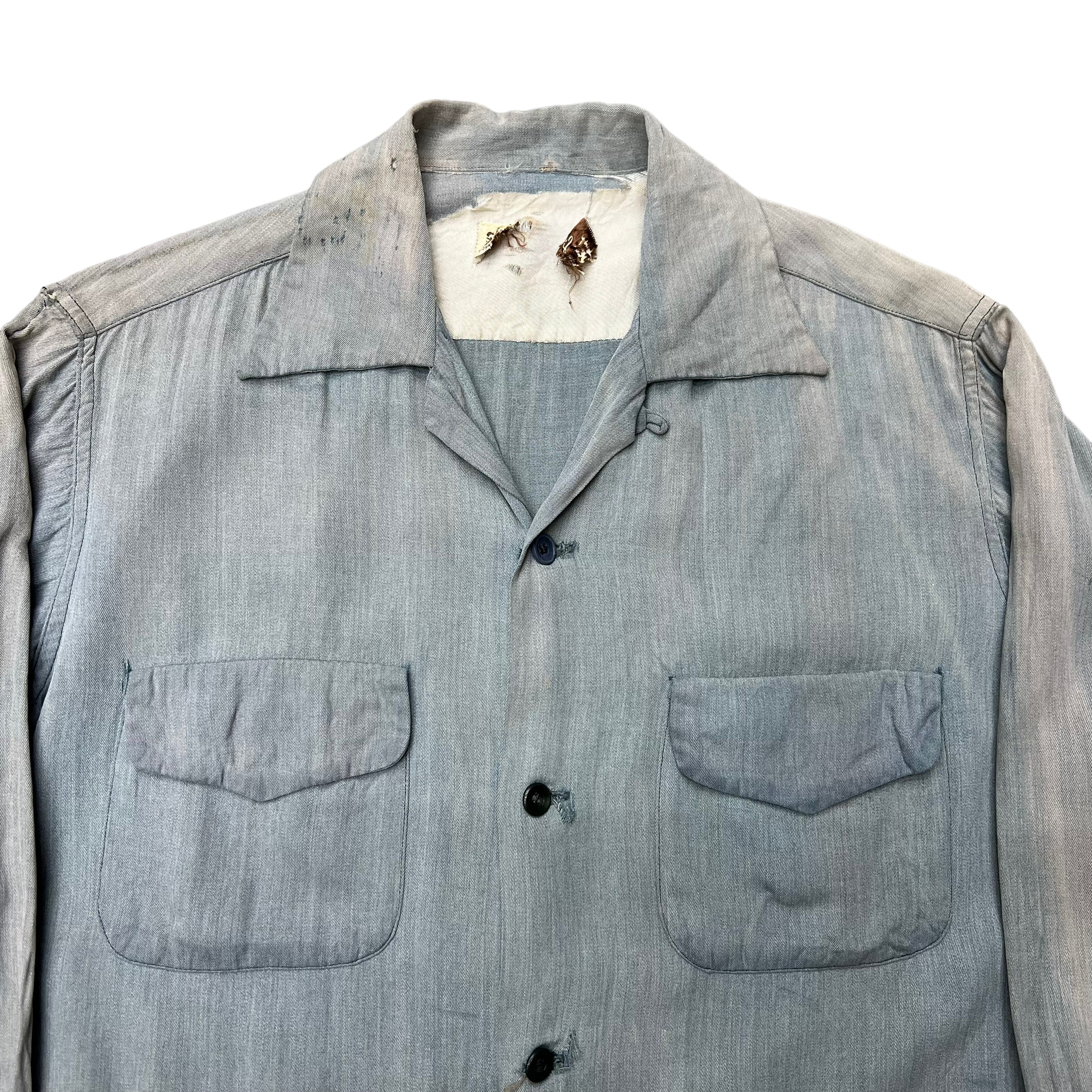 1940s Distressed faded rayon loop collar shirt (S/M)