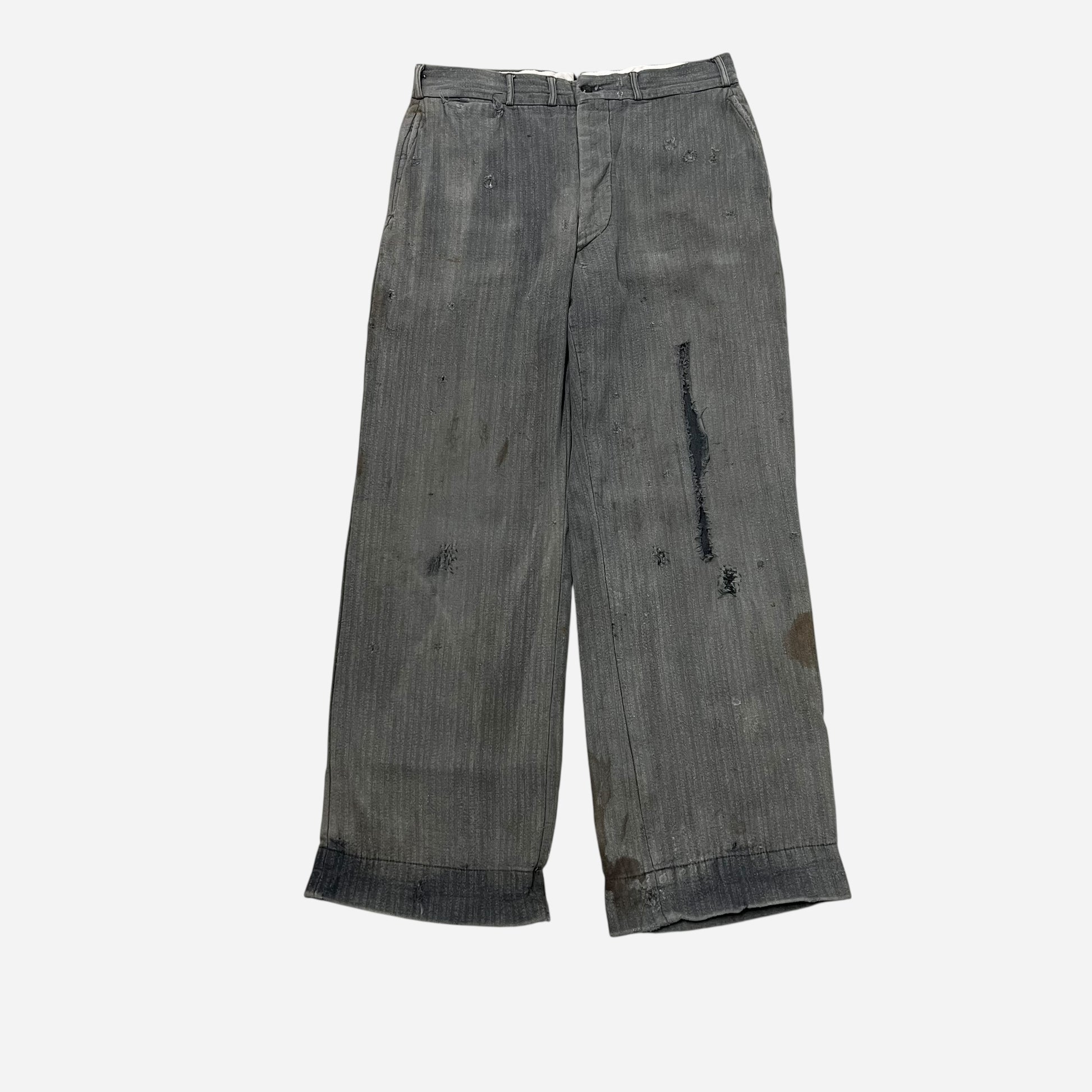 1940s Gray sun faded pattern heavy cotton button fly pants (30w)