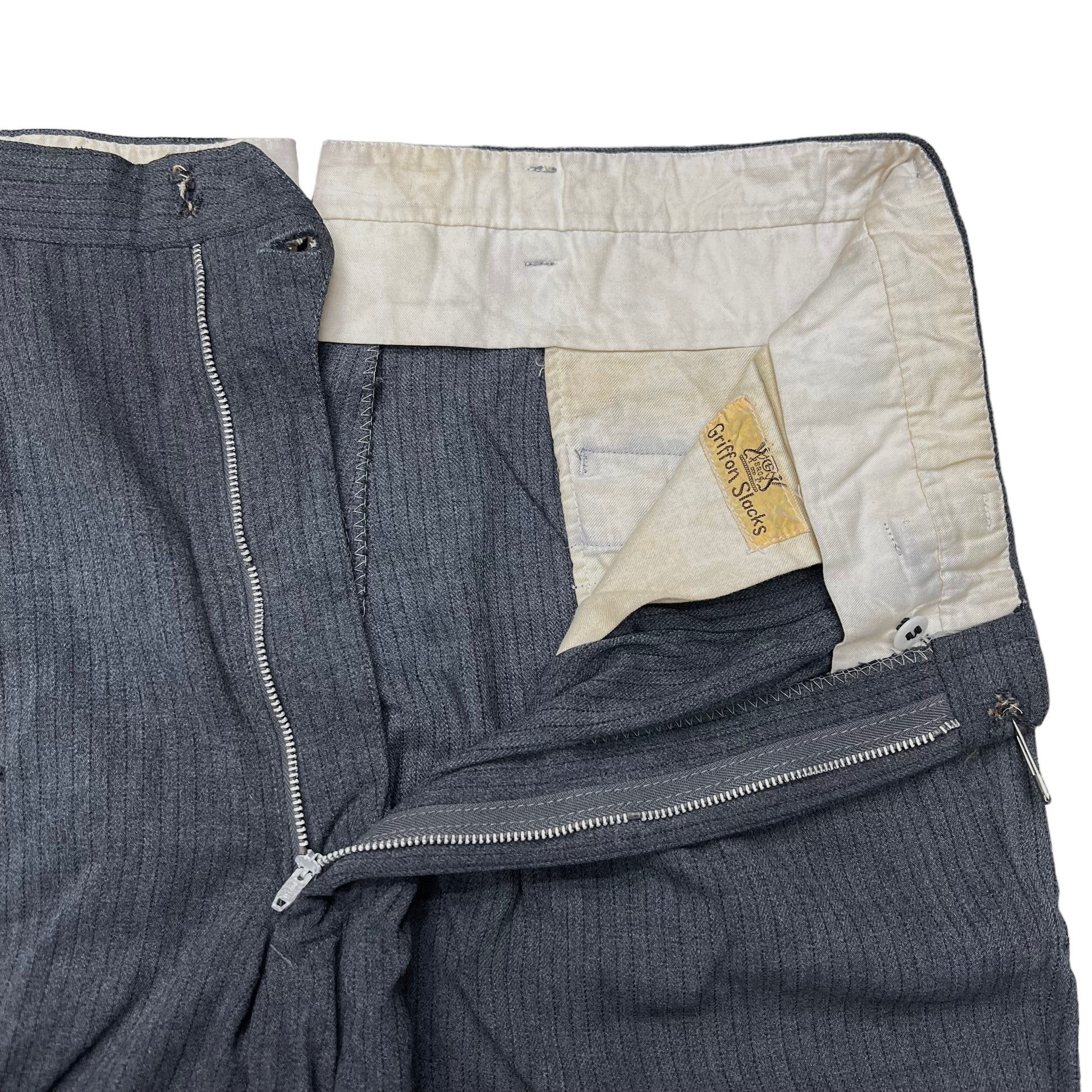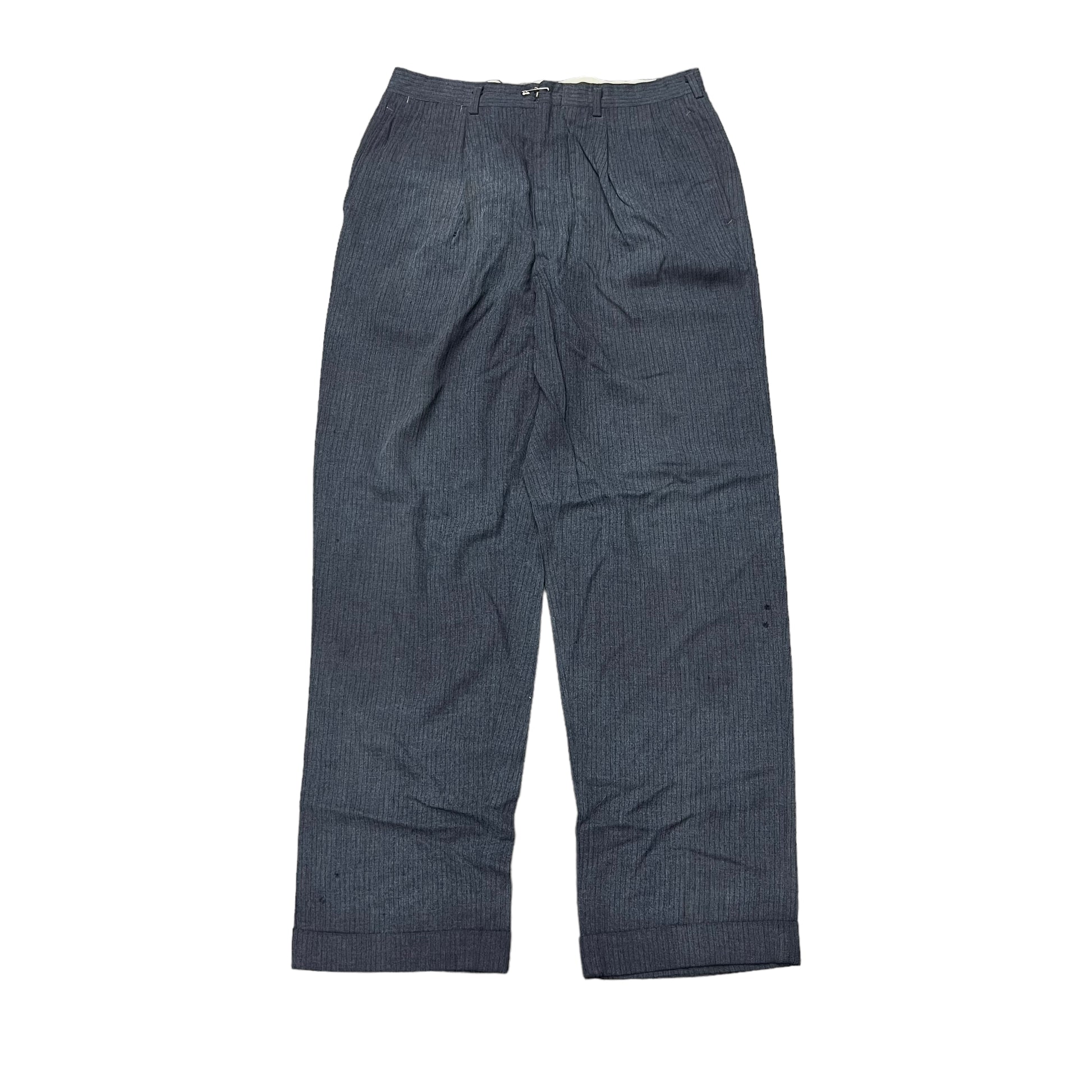 1940s Grey pleated gabardine striped pants (32w)