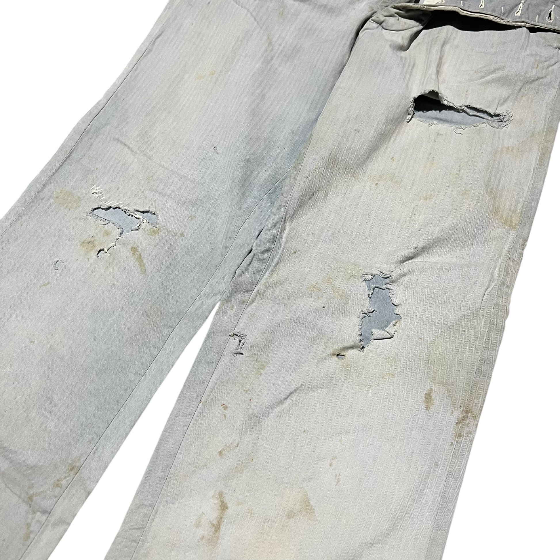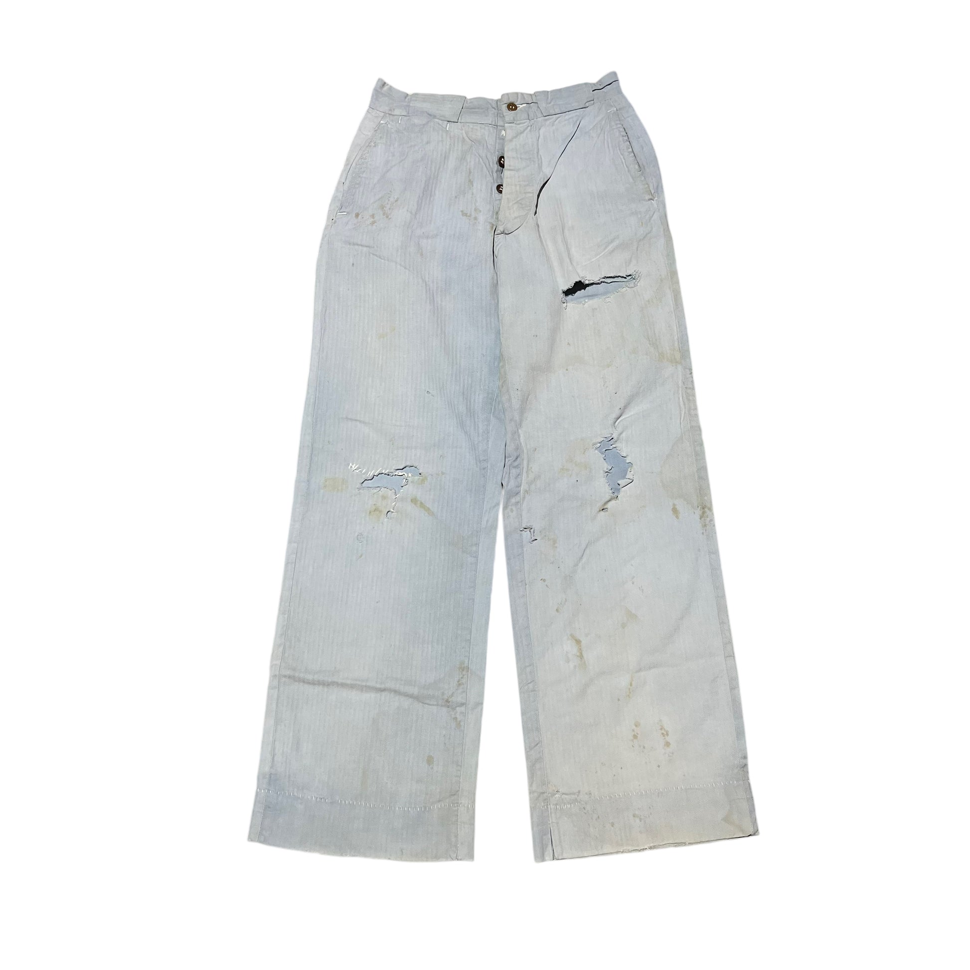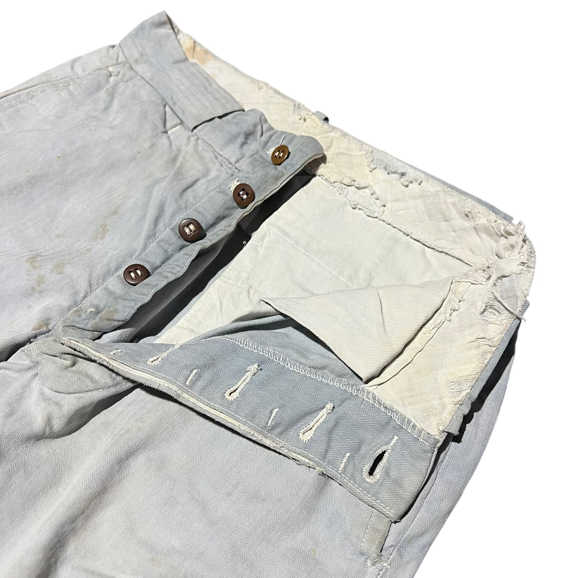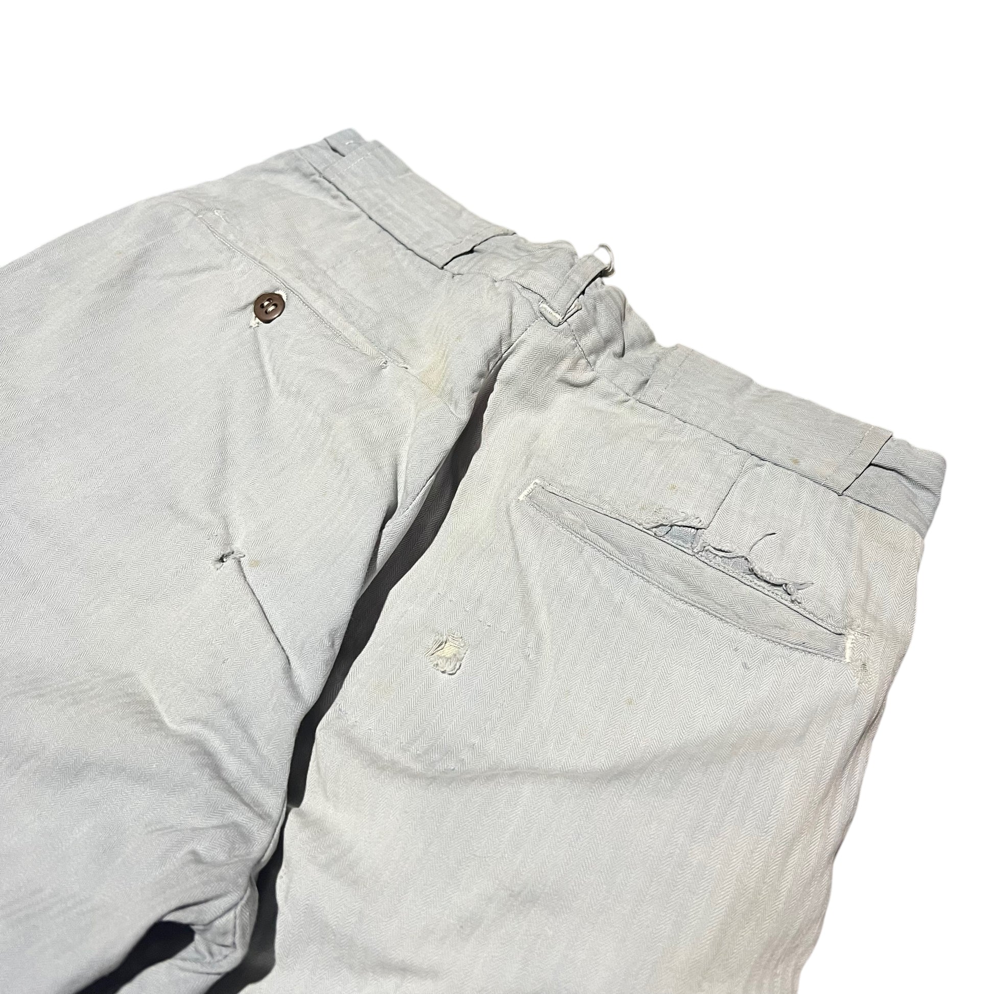 1940s Light blue cotton hbt button fly work pants (28w)