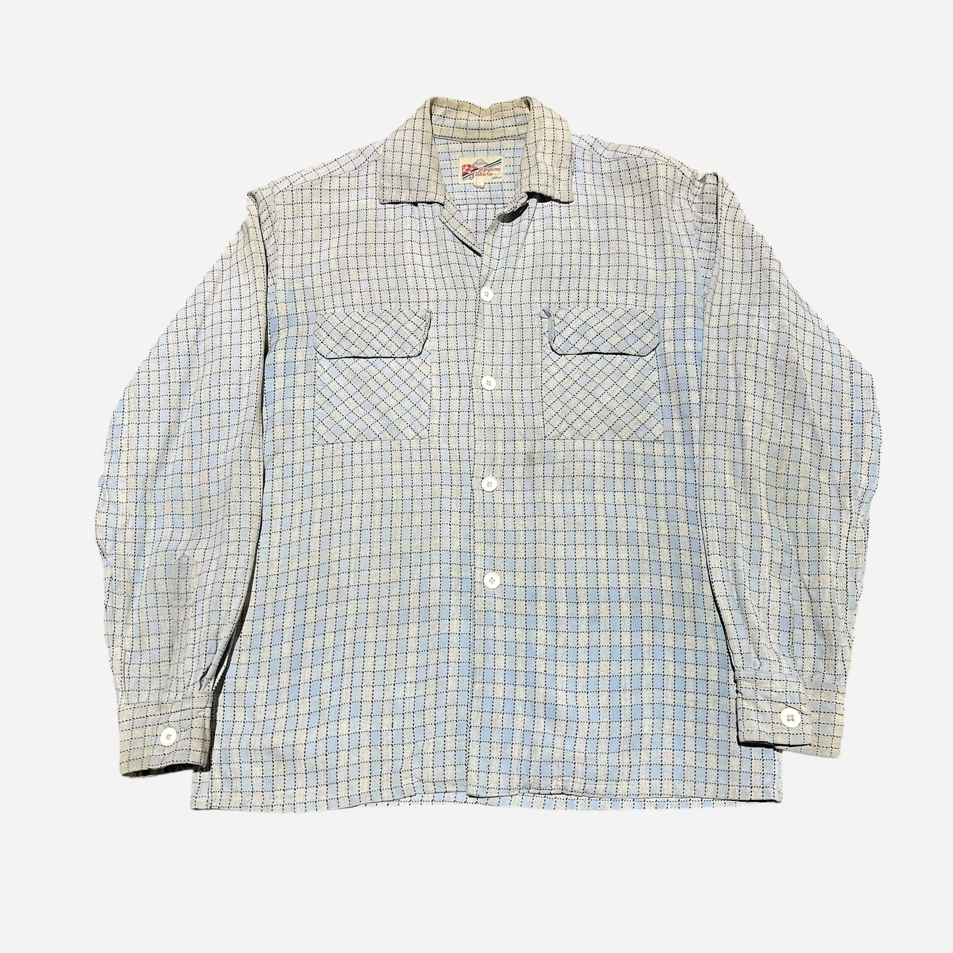1940s Light blue cotton loop collar shirt Japanese souvenir (M)