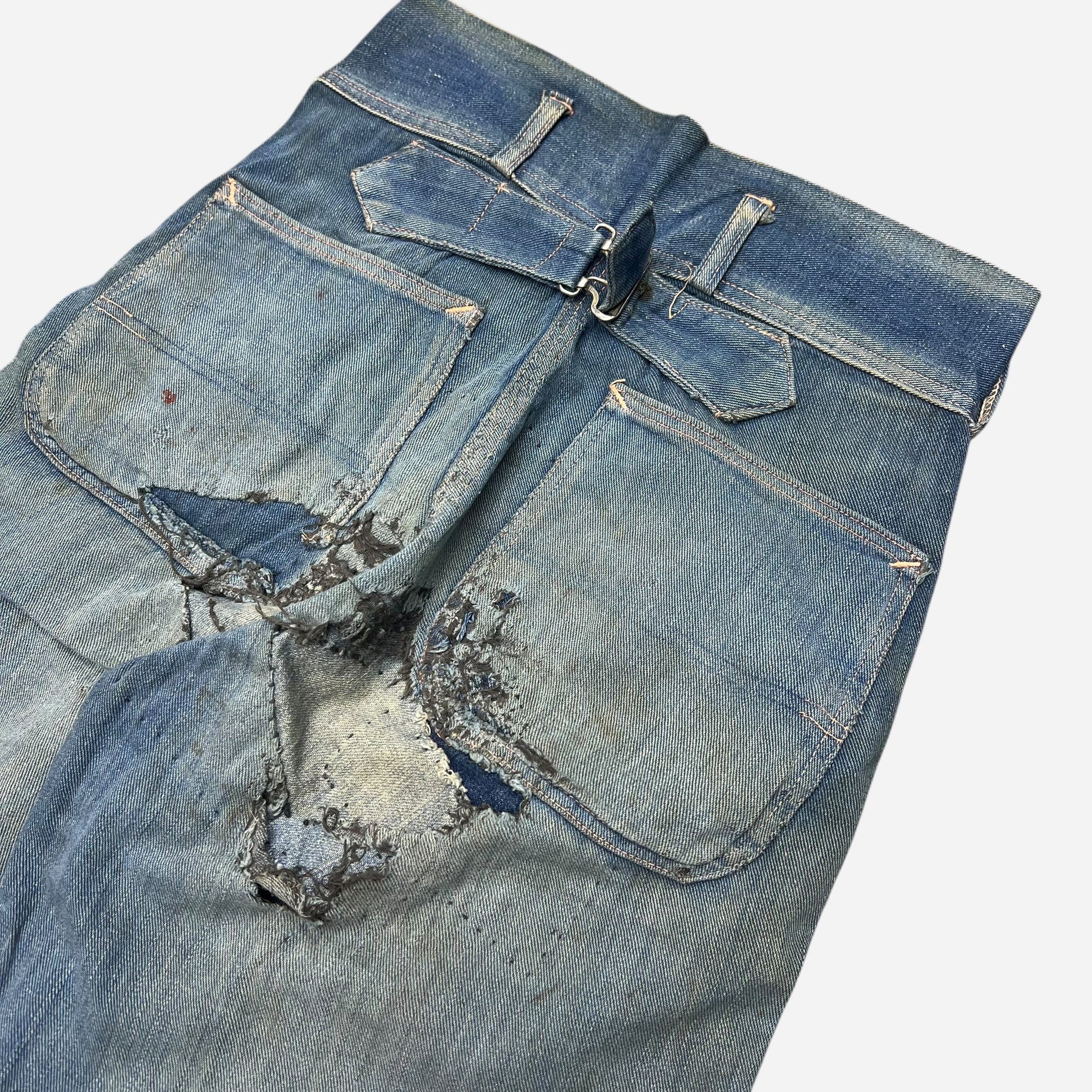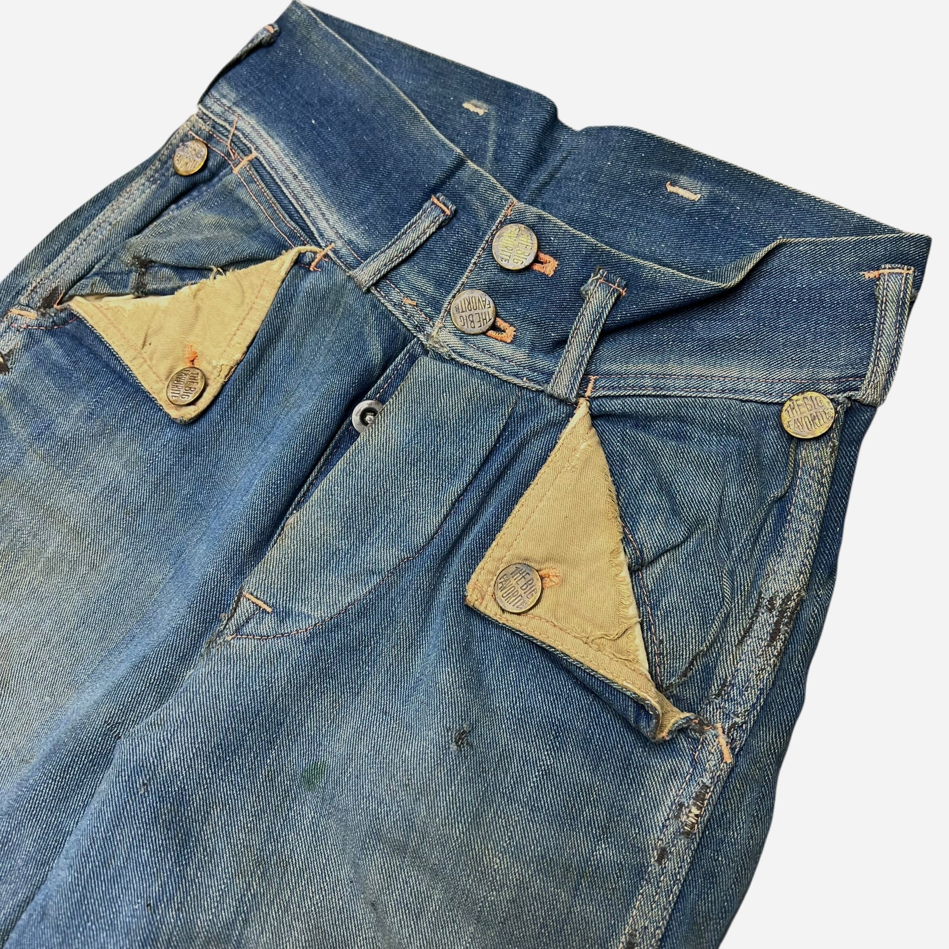 1940s N&W The Big Favorite mule flap buckle back denim jeans (24w)