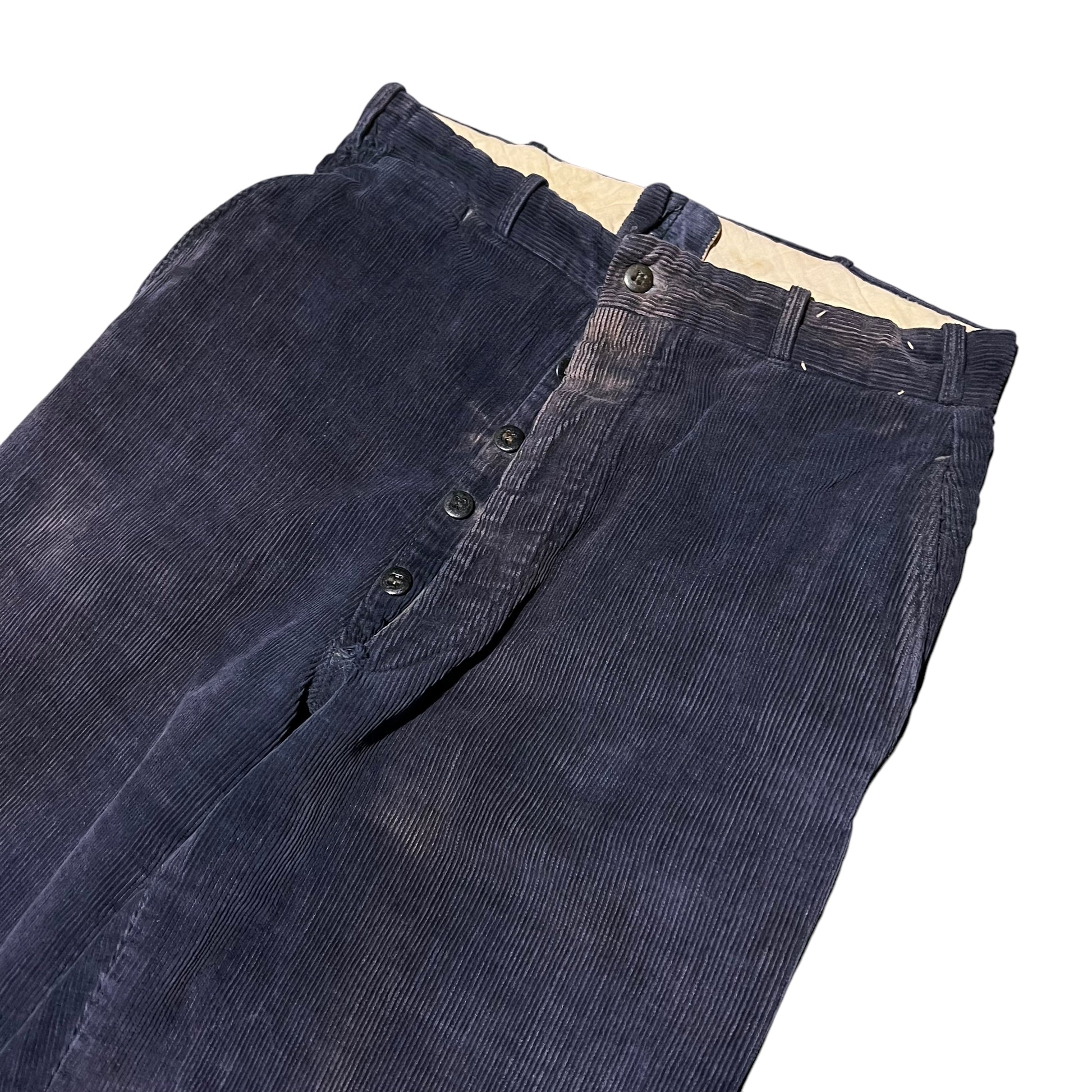 1940s Purple sun faded button fly corduroy work pants (28w)