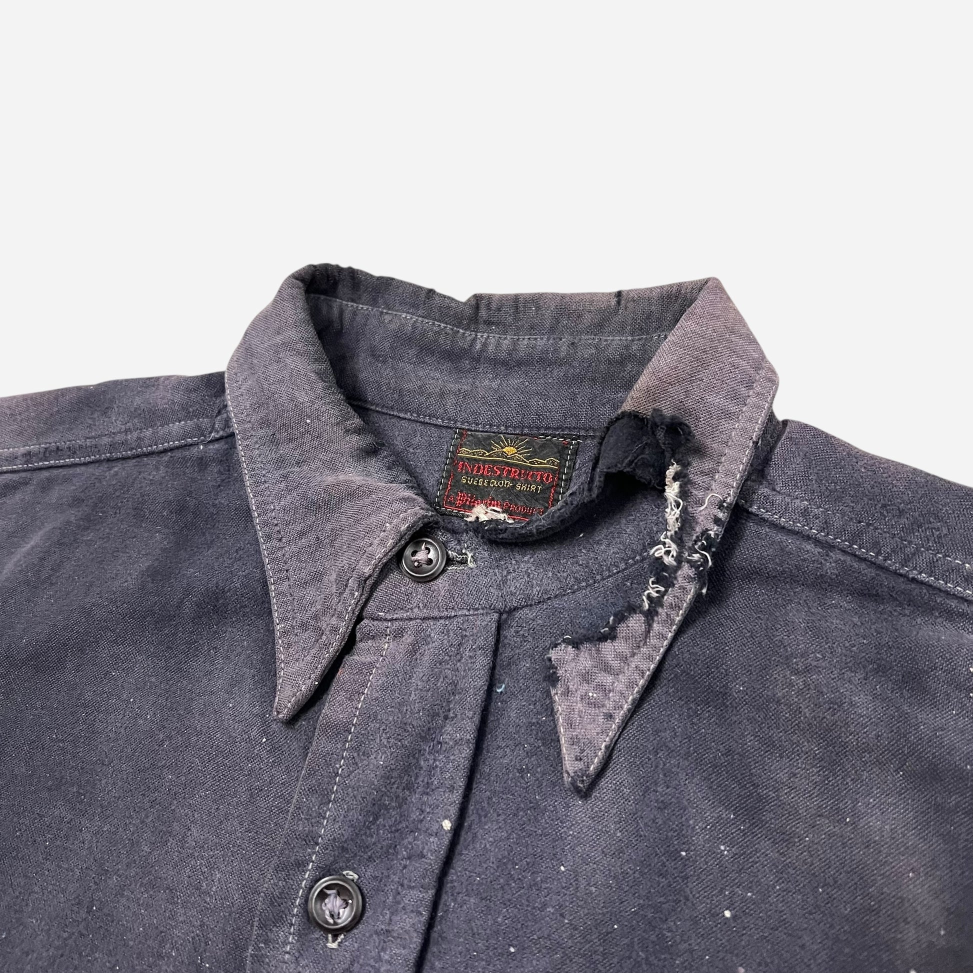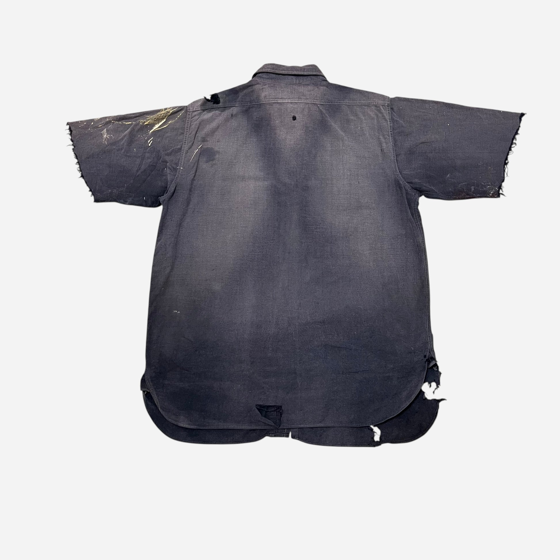 1940s Purple sun faded moleskin heavy cotton paint splatter shirt (L/XL)