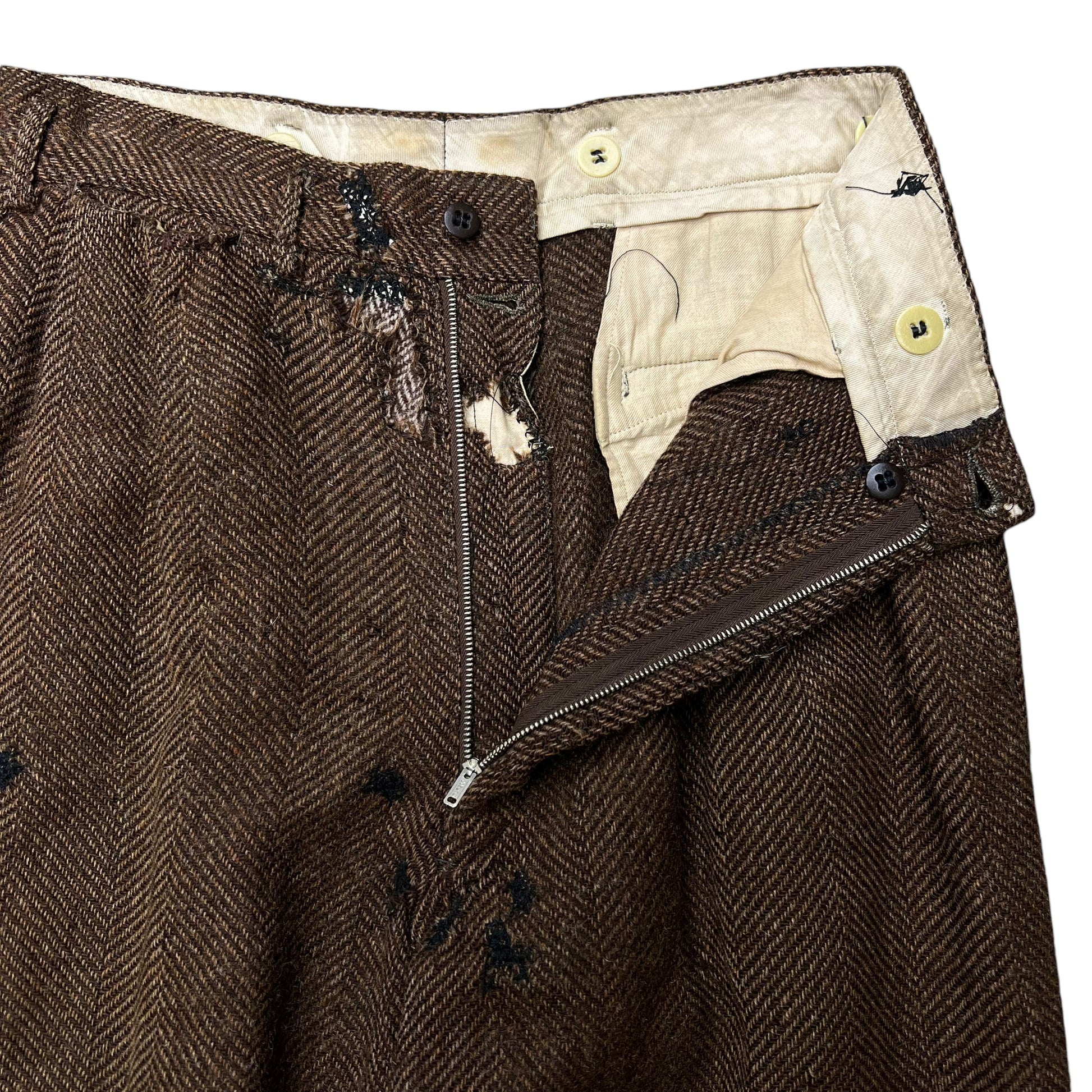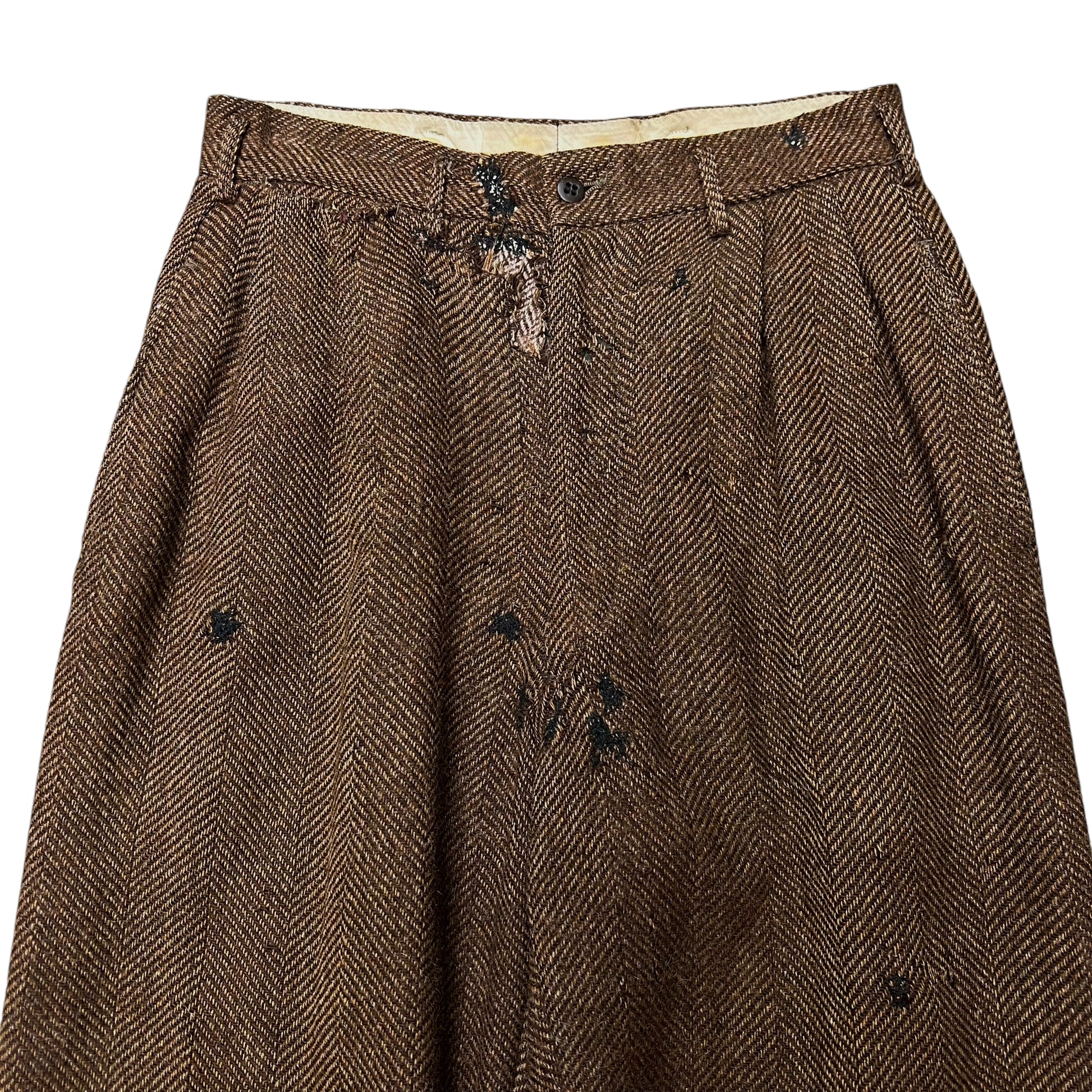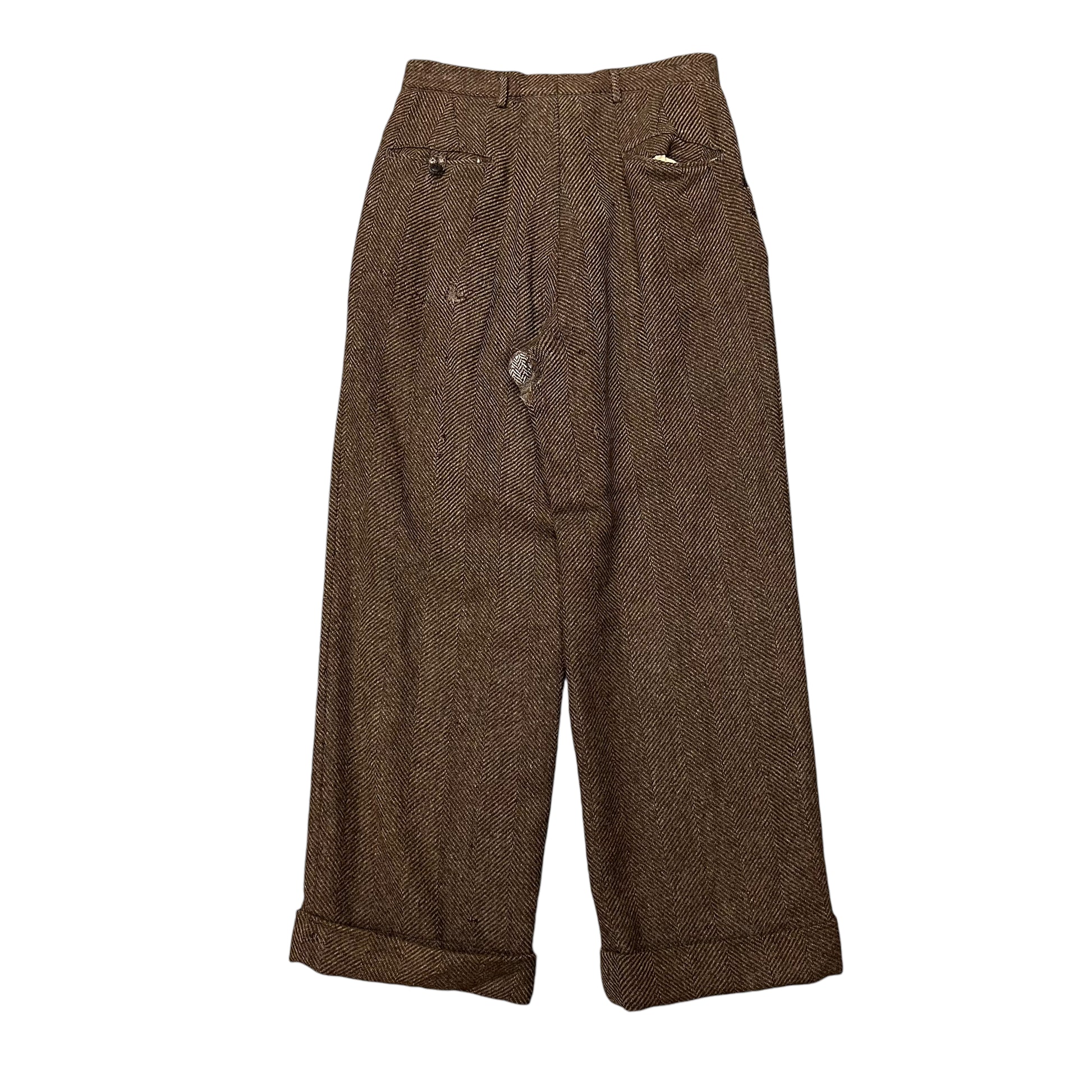 1940s Repaired brown tweed pleated pants trousers (28w)