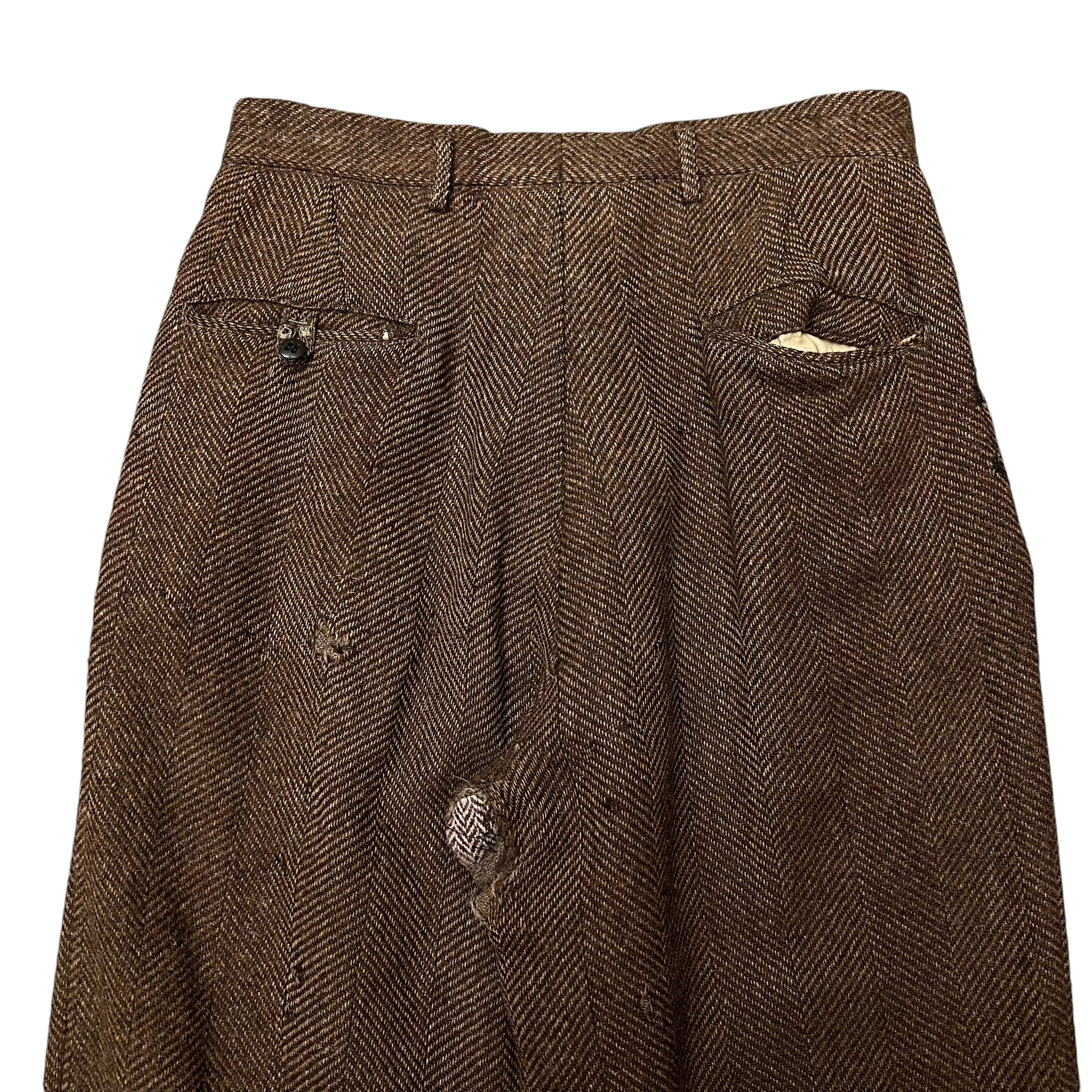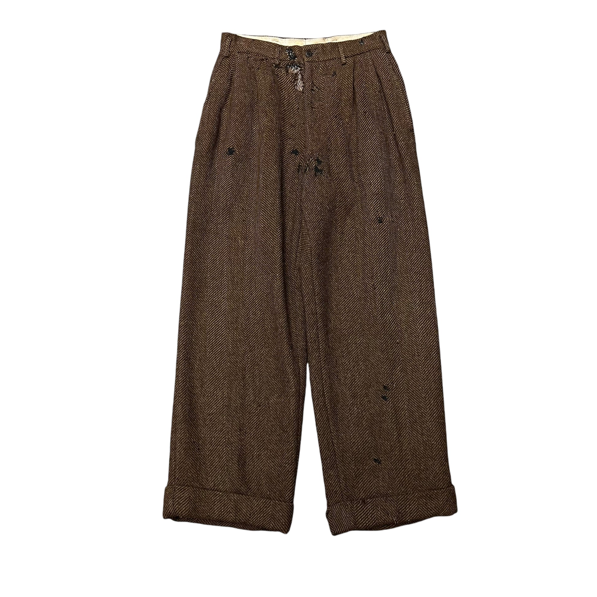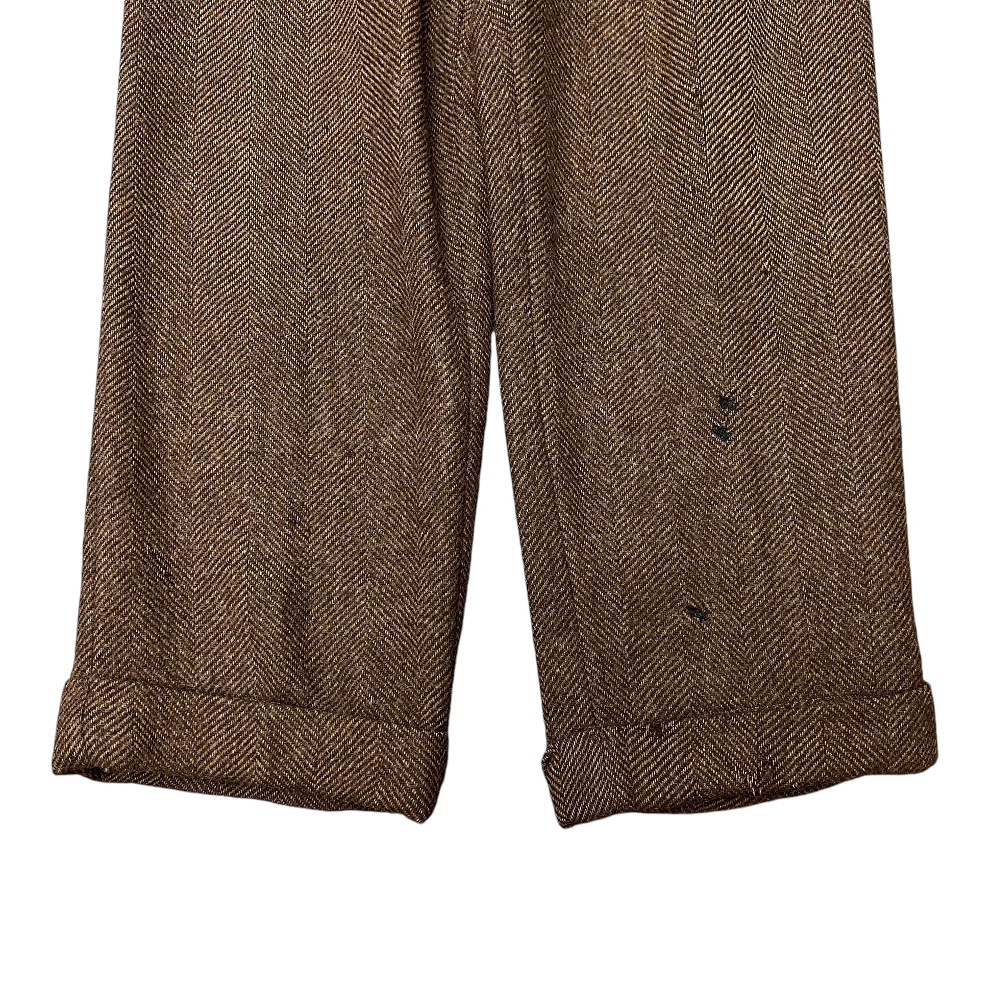 1940s Repaired brown tweed pleated pants trousers (28w)