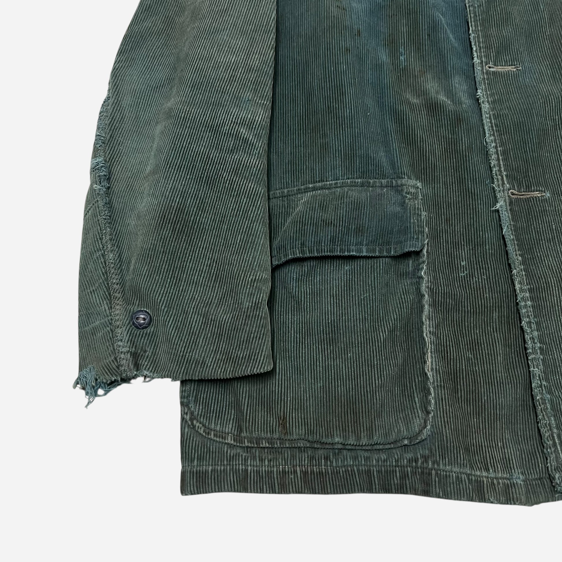 1940s “Rugby” green sun faded corduroy jacket cotton plaid lined (L)