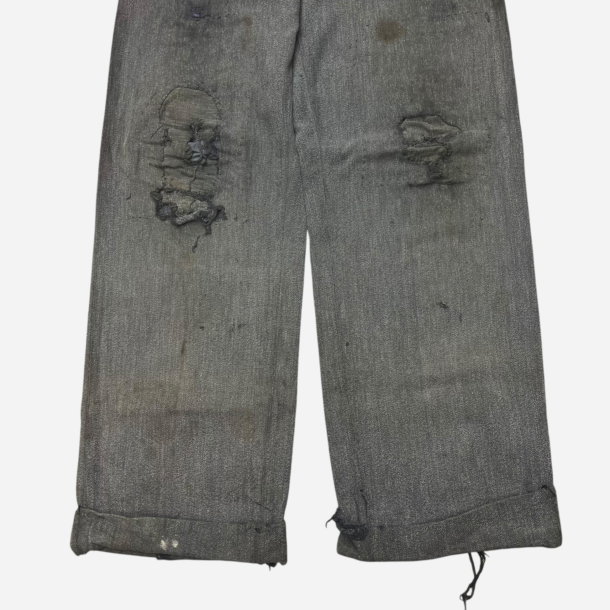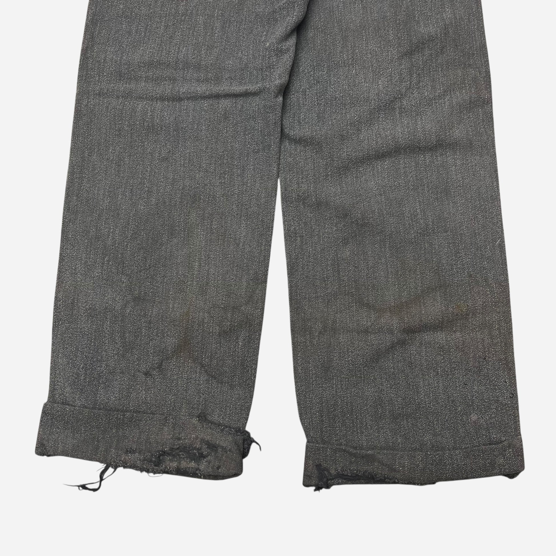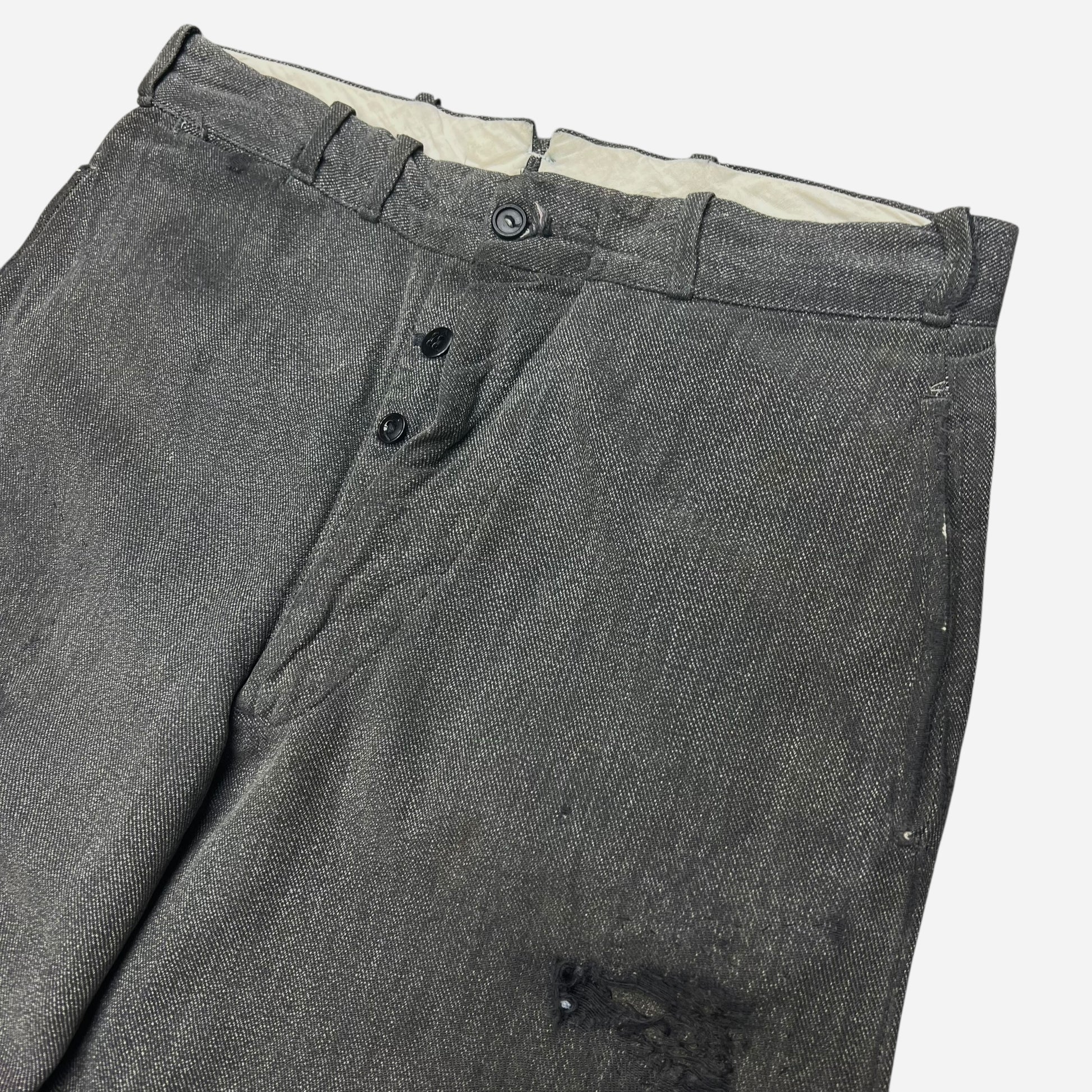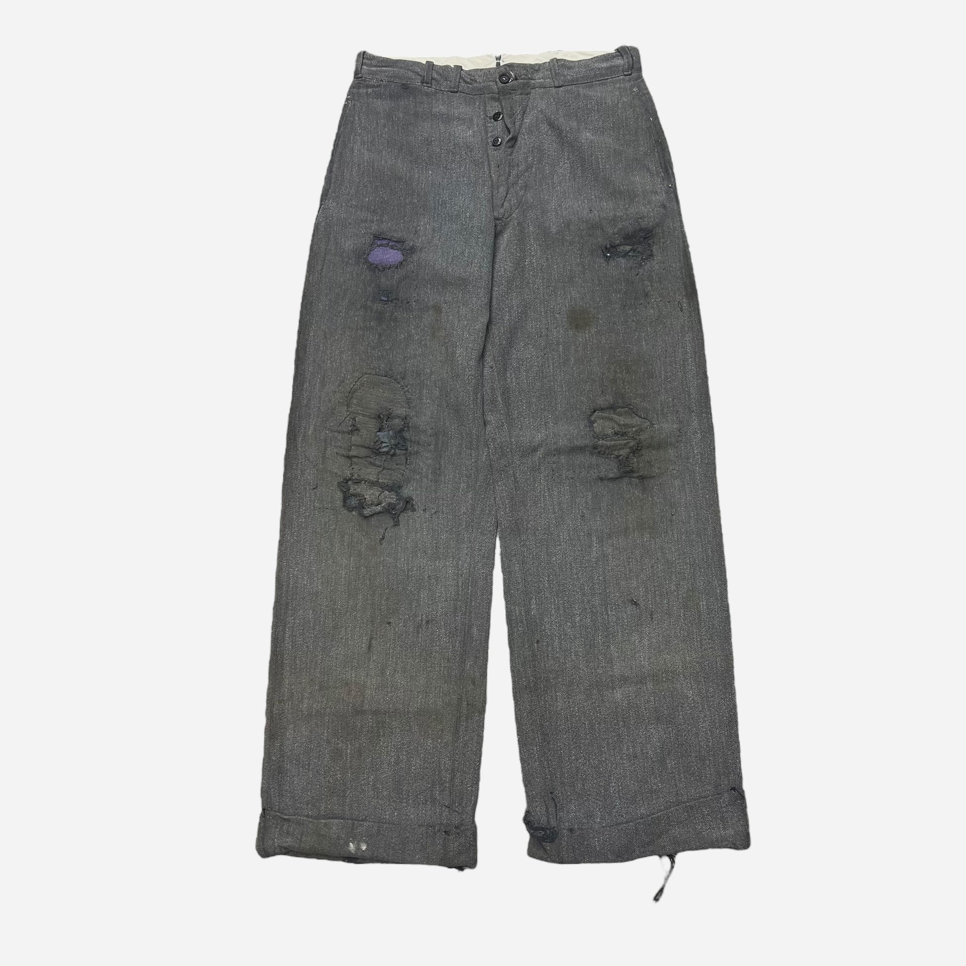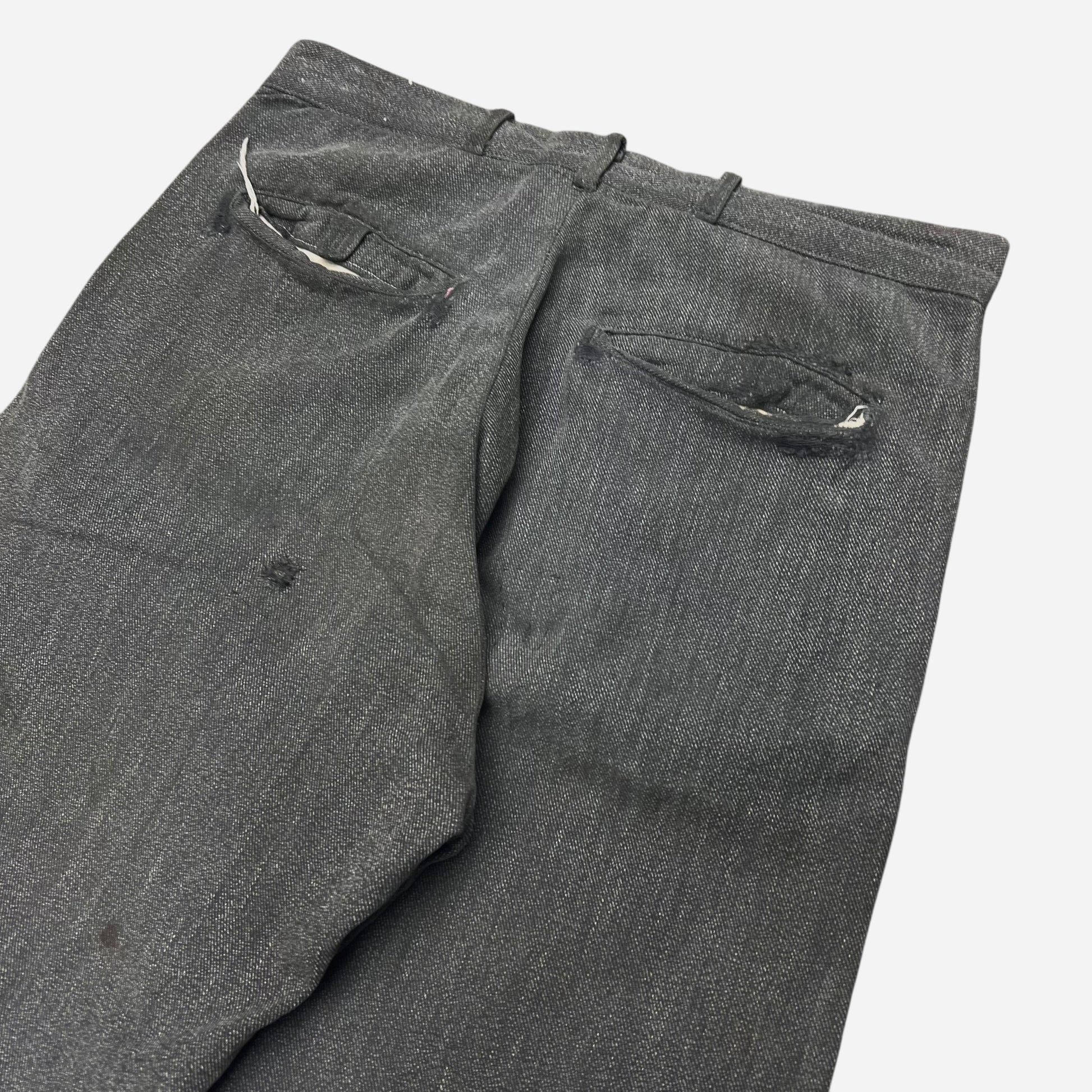 1940s Salt and pepper cotton repaired button fly work pants (31w)