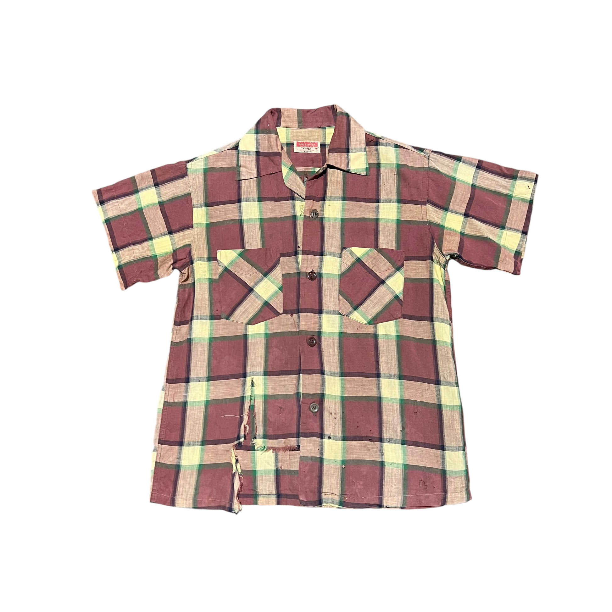1940s Tom Sawyer cotton plaid loop collar shirt (XS)