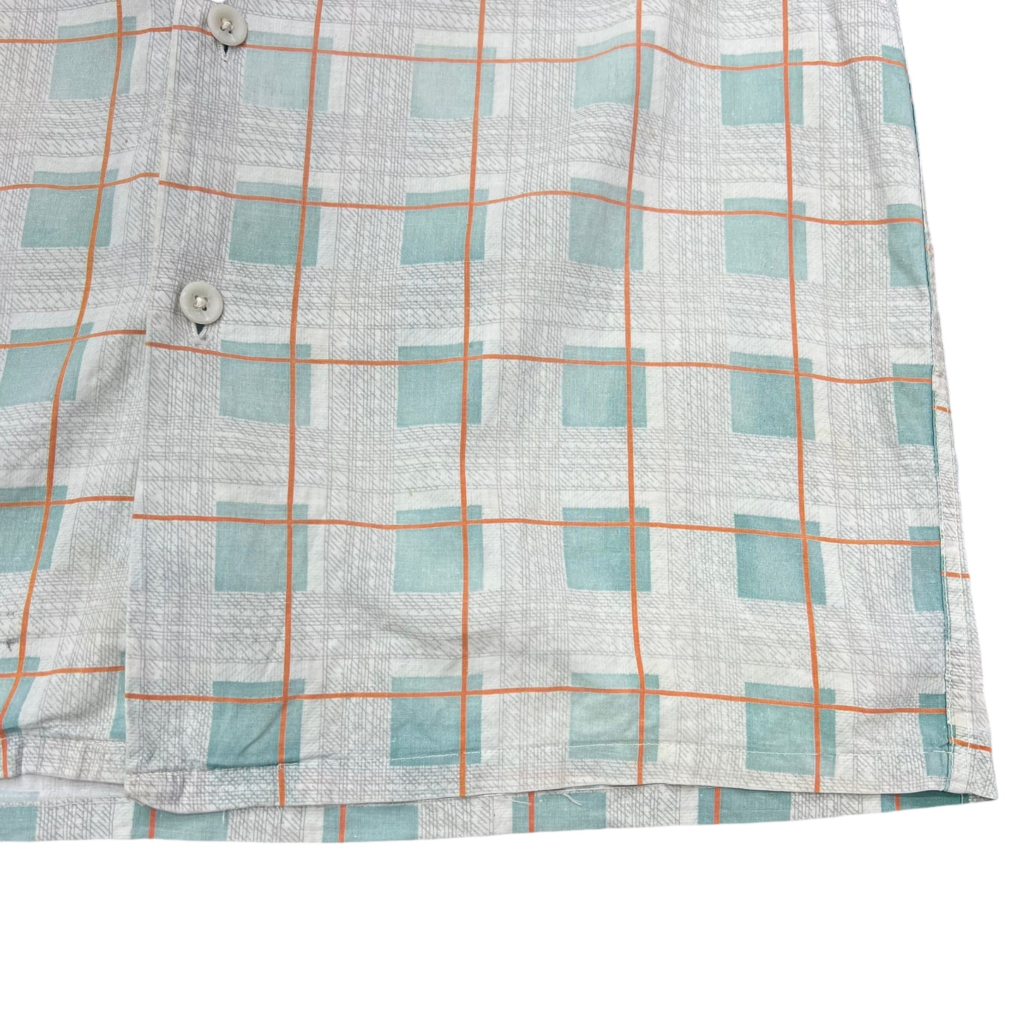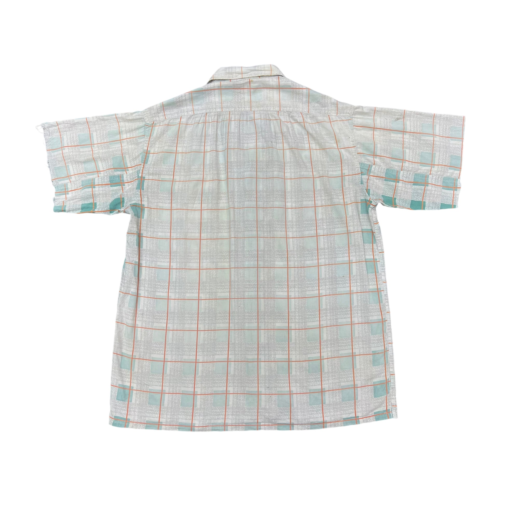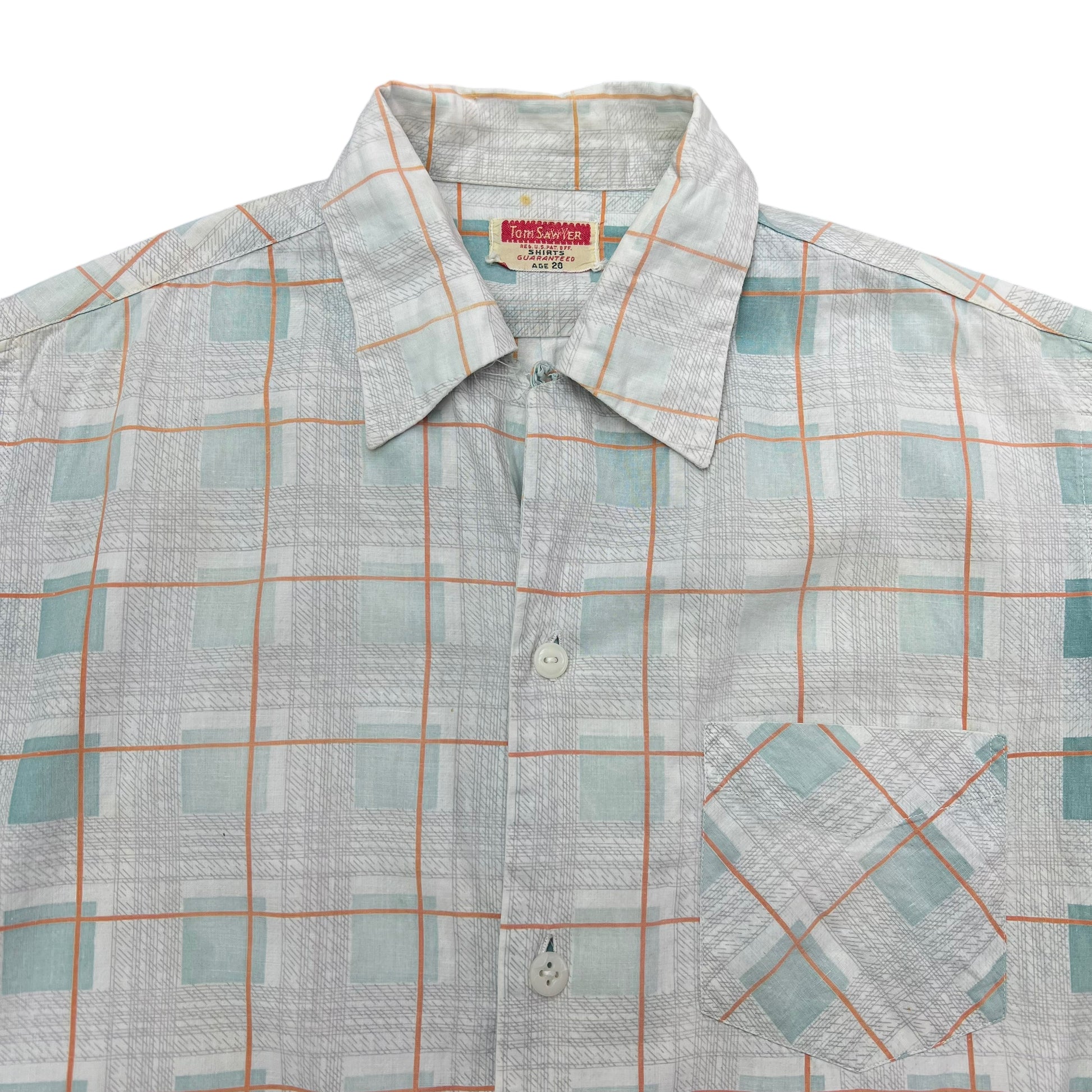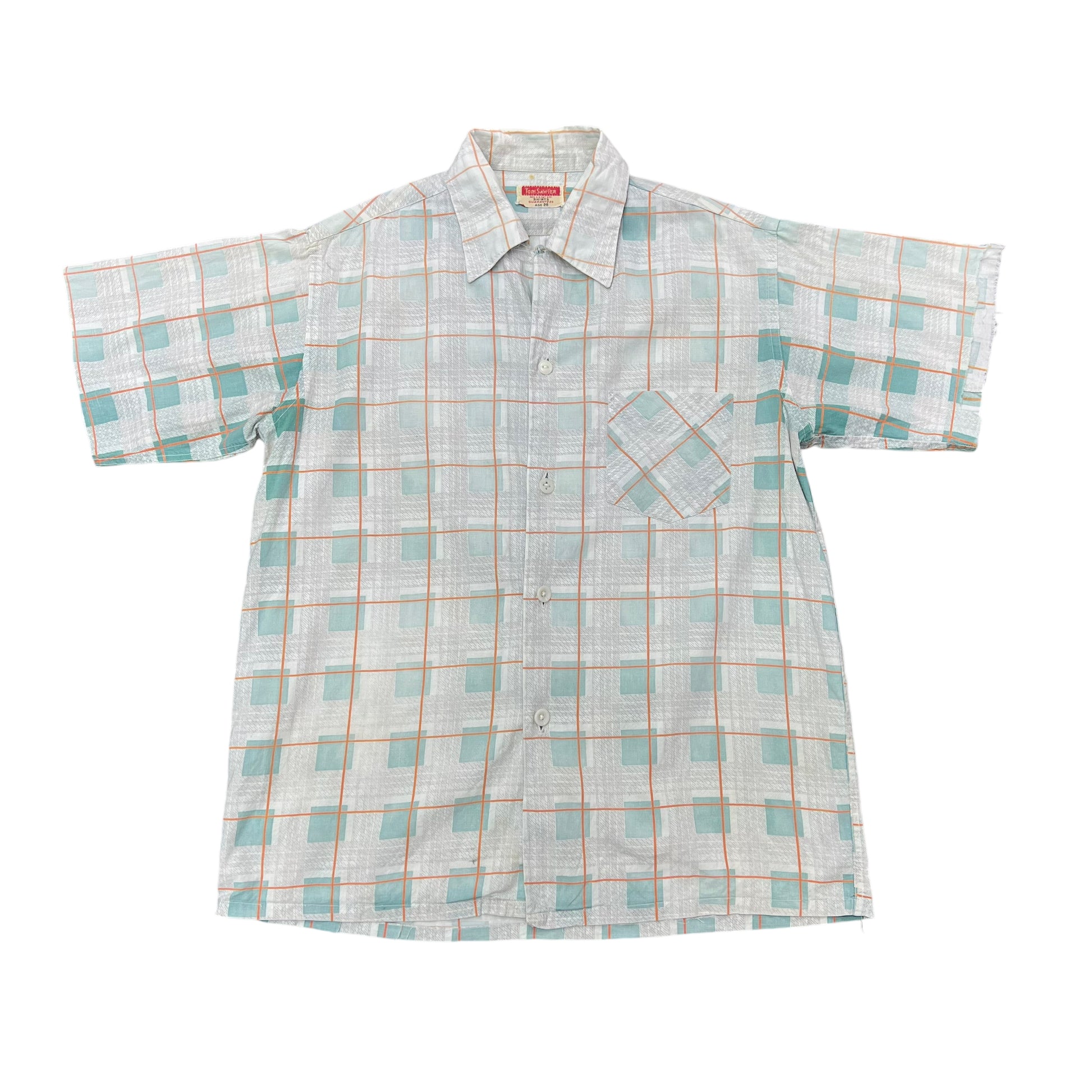 1940s Tom Sawyer sun faded plaid cotton loop collar shirt (M)