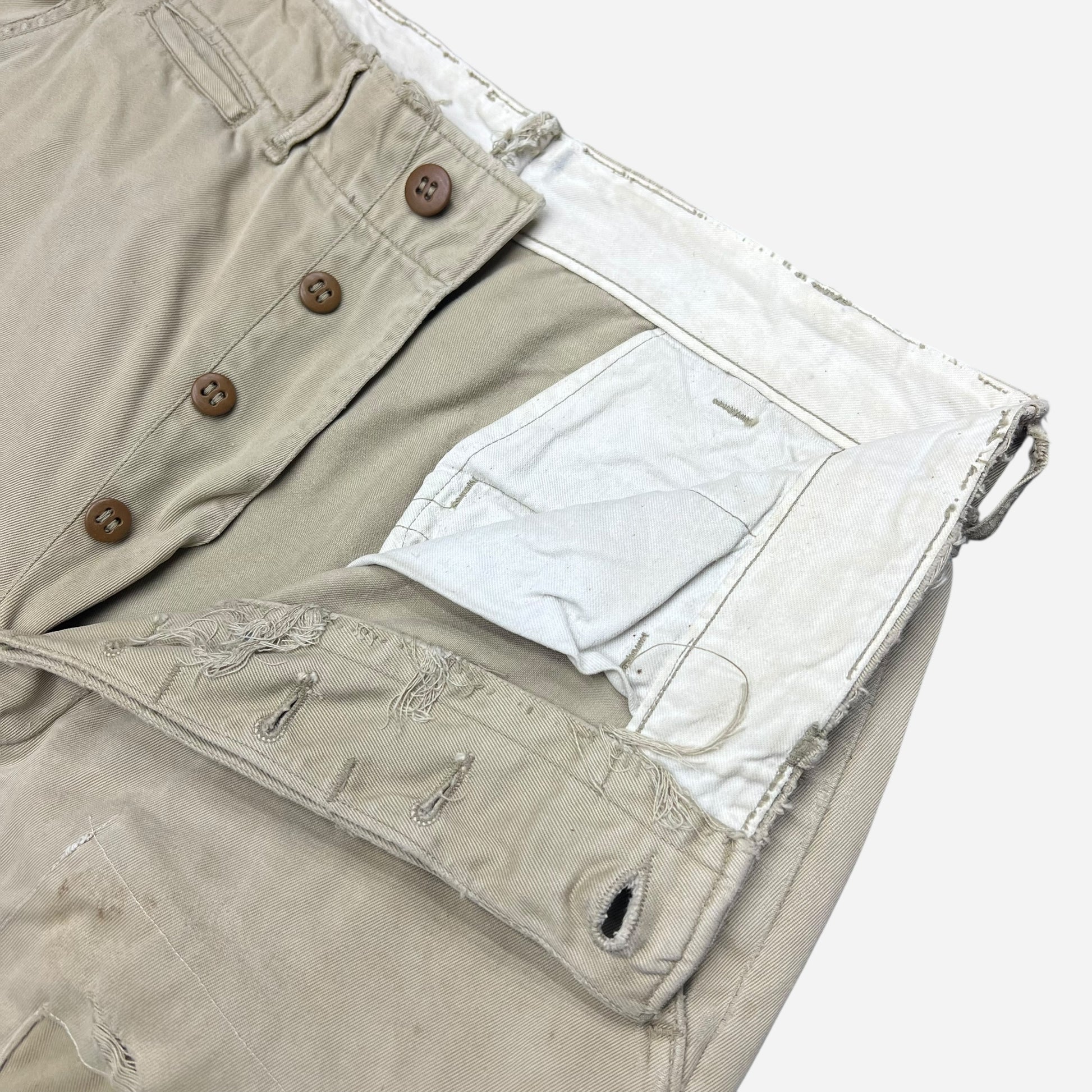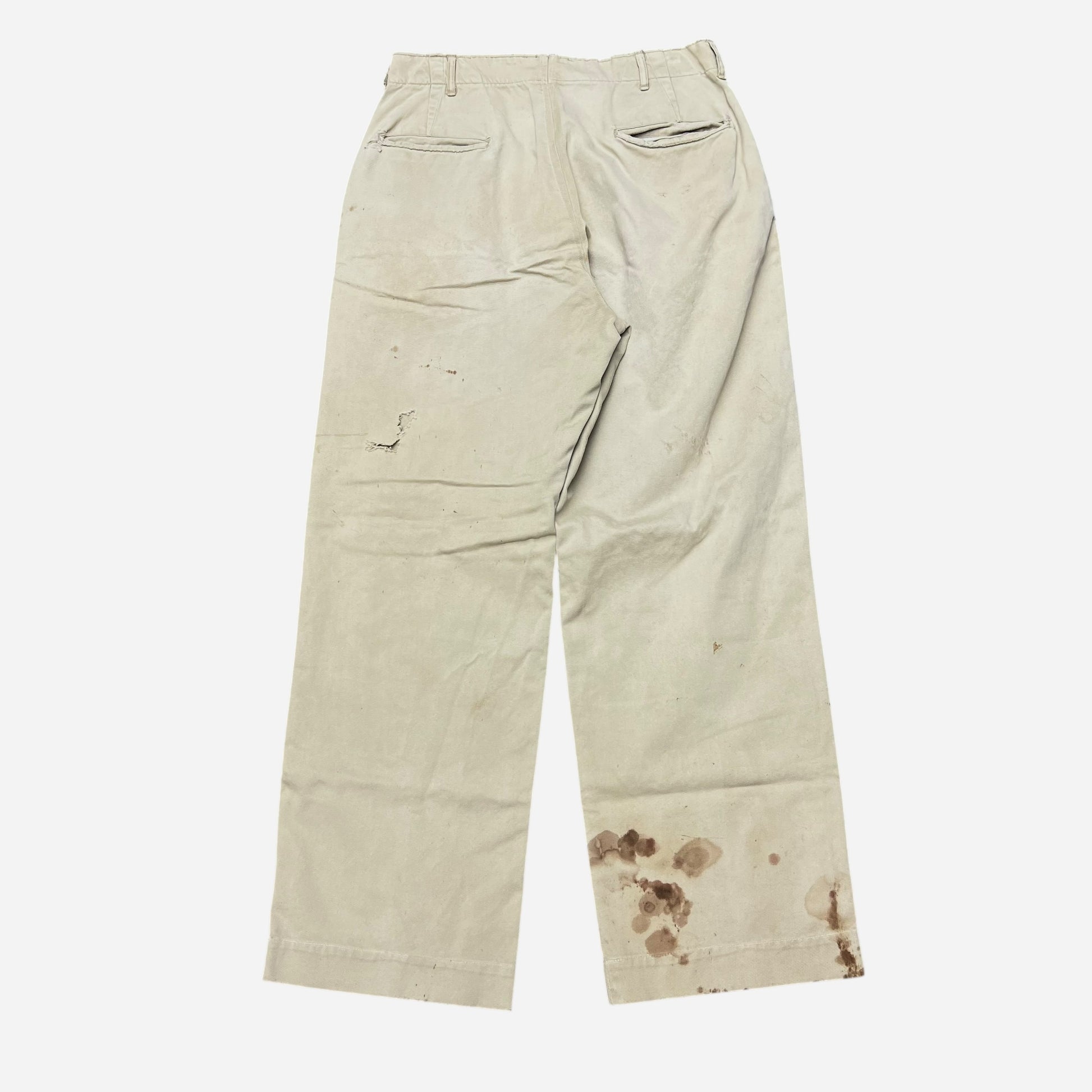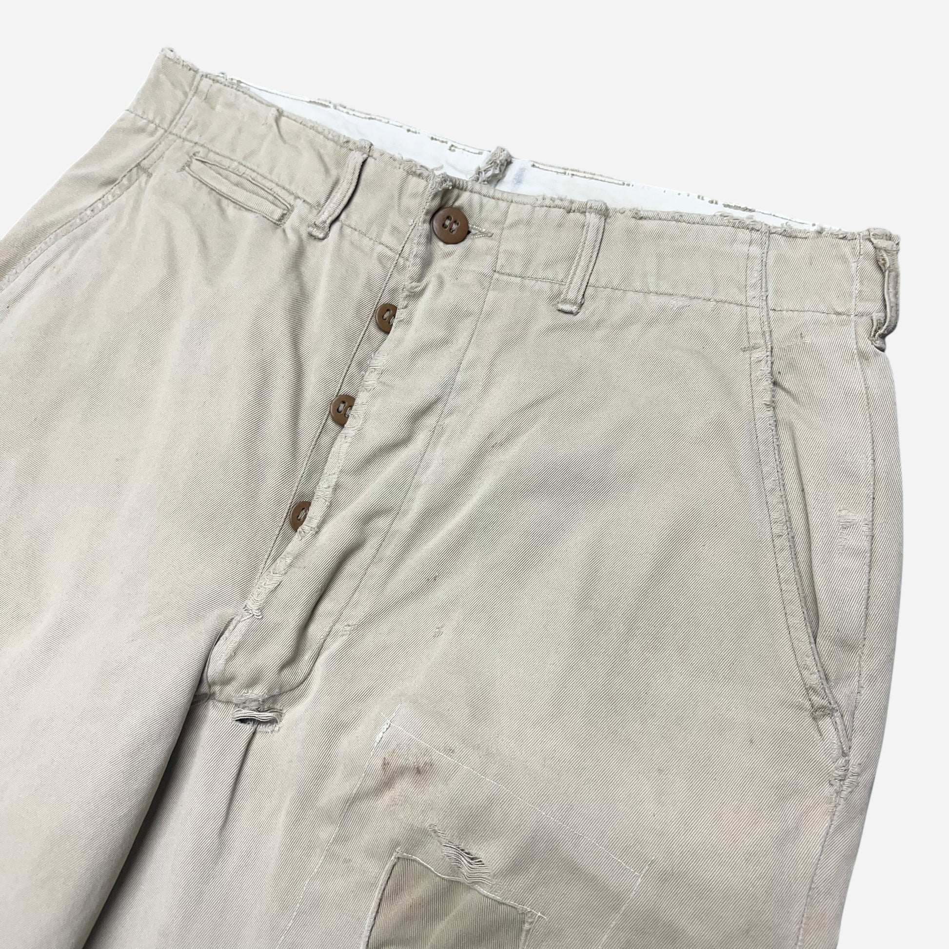 1940s US Army khaki chinos repaired pants (31w)