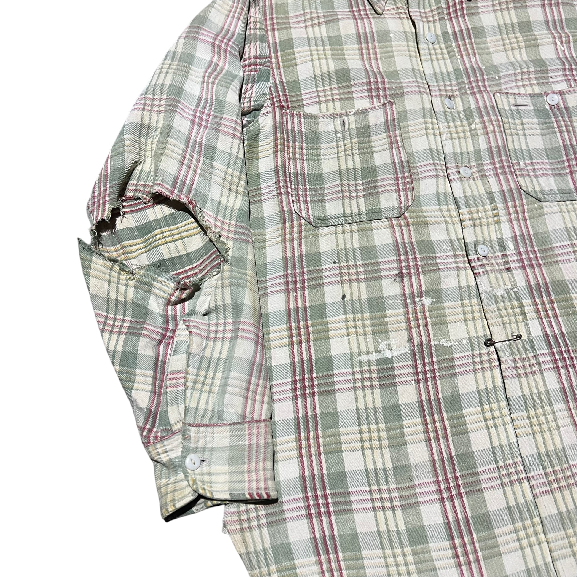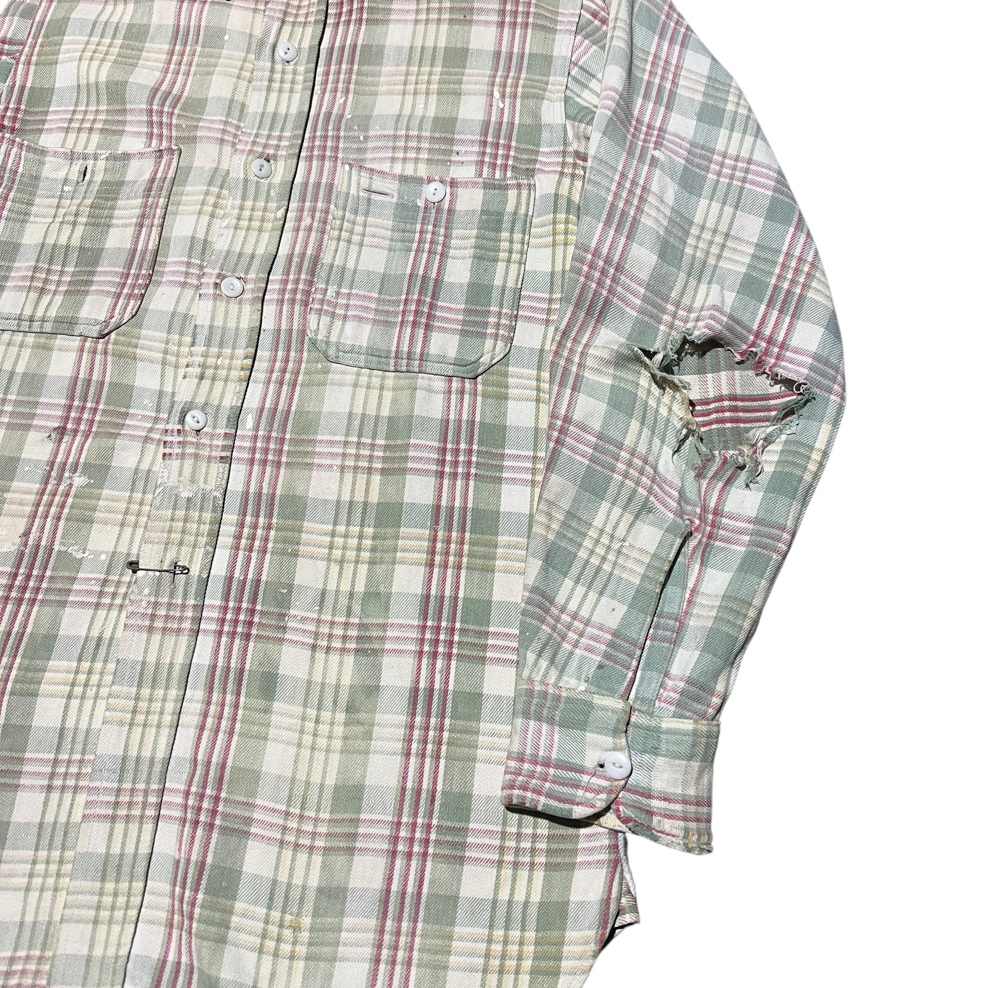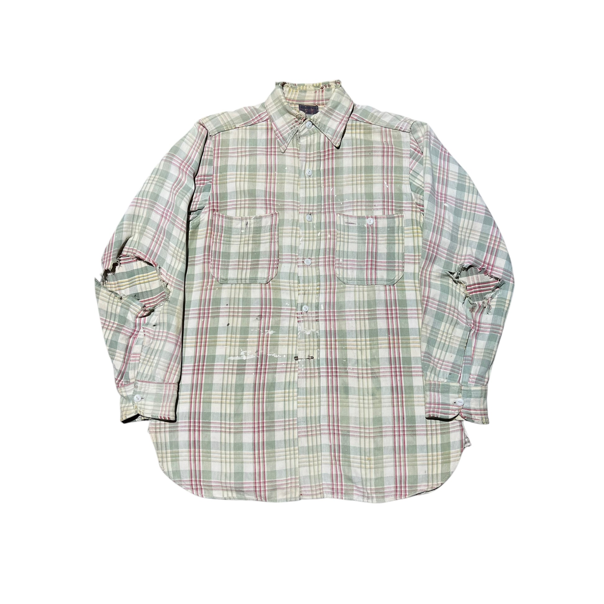 1940s Wards Sun Valley cotton plaid shirt flannel (L/XL)