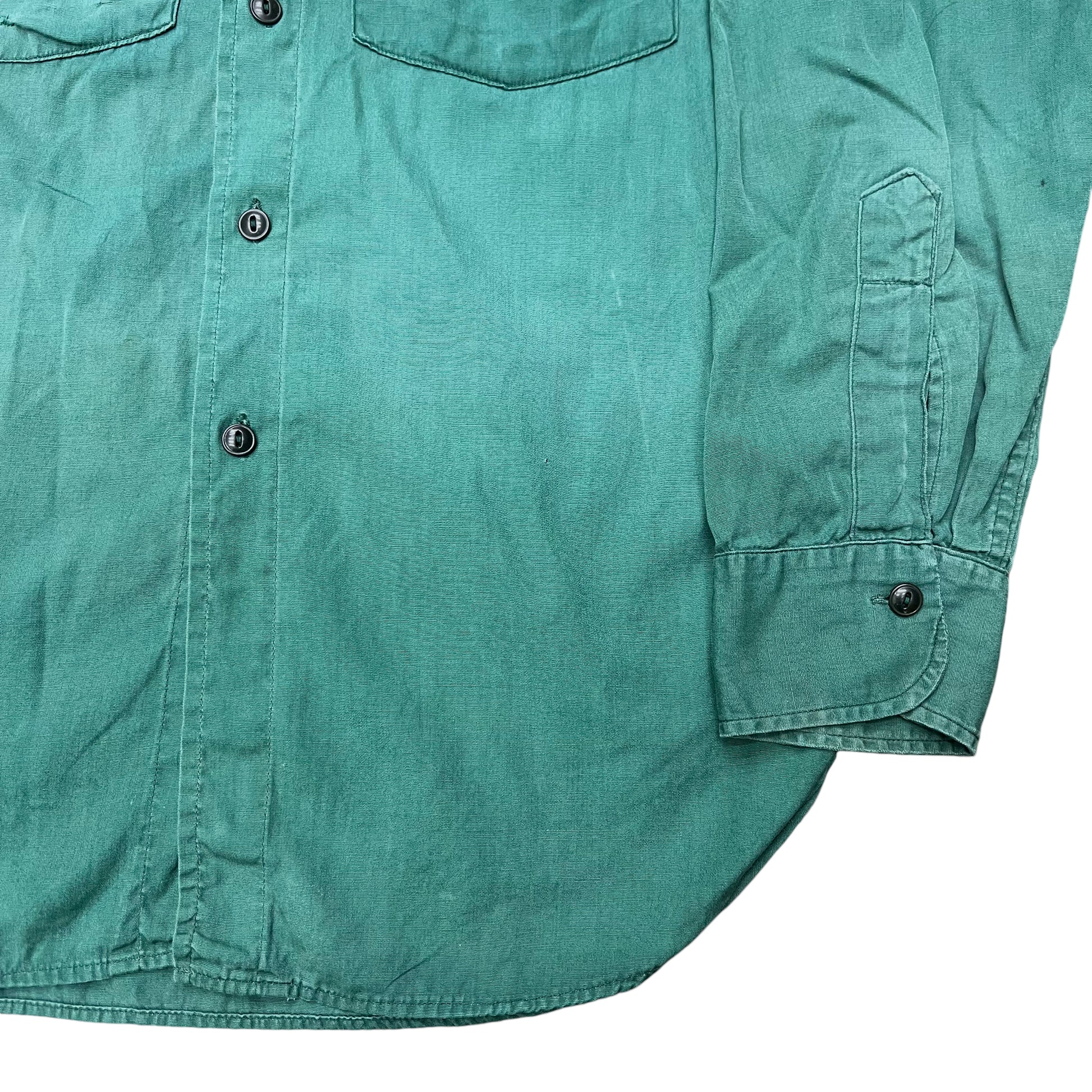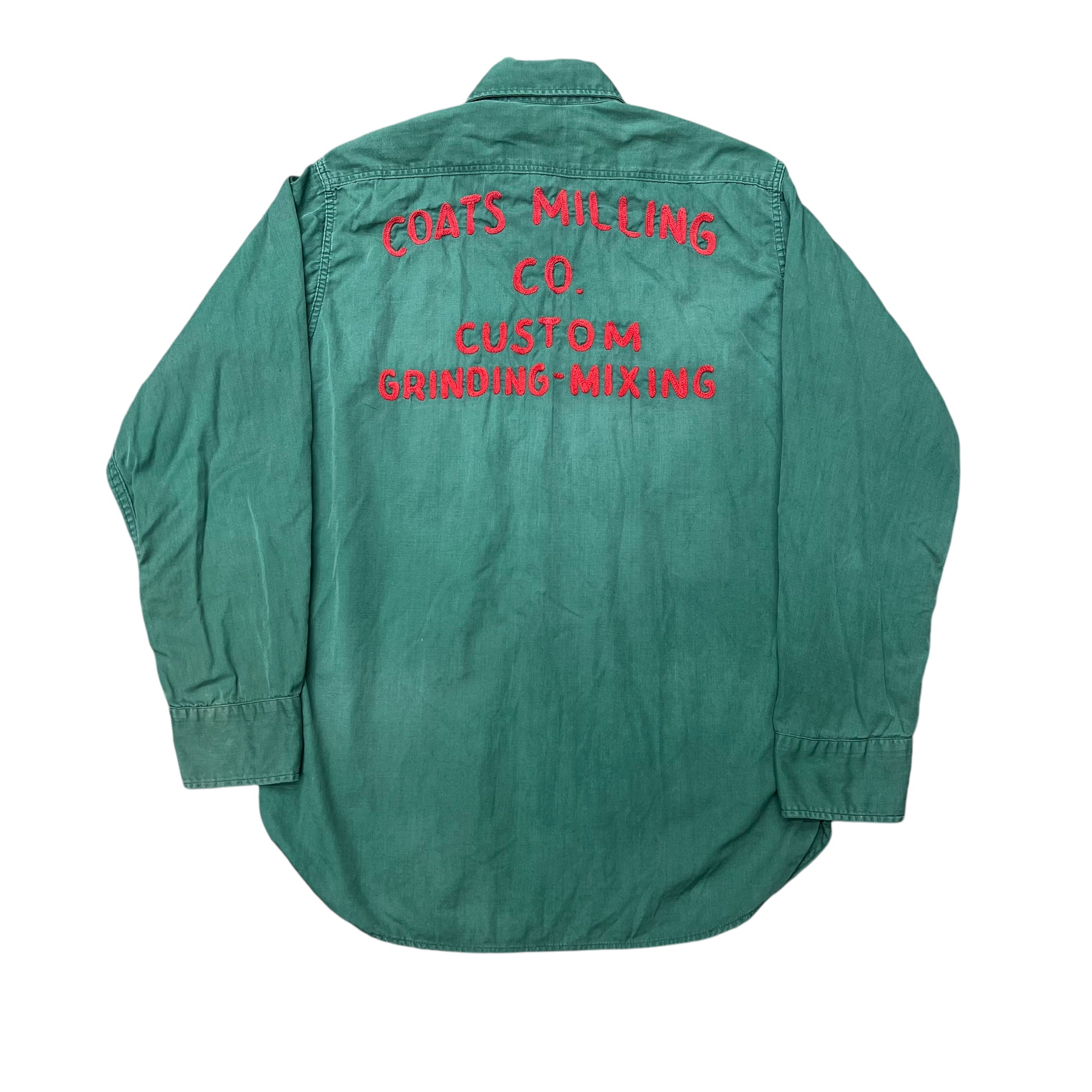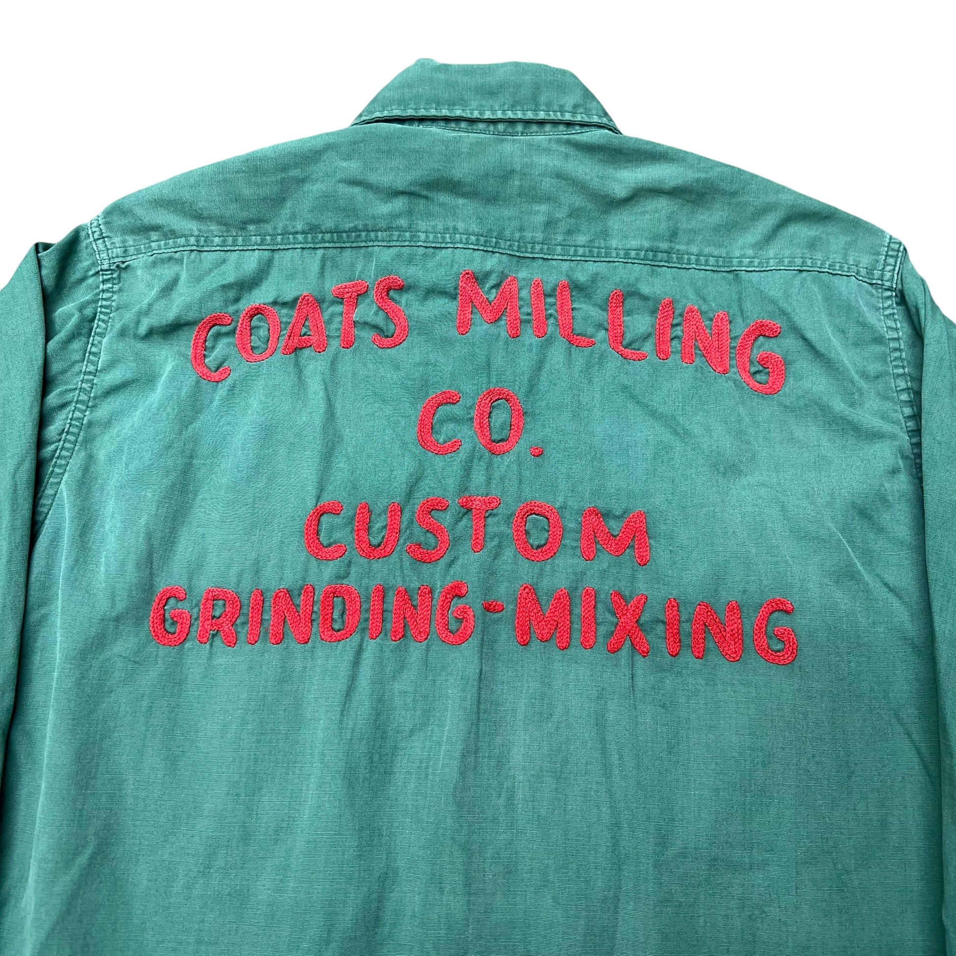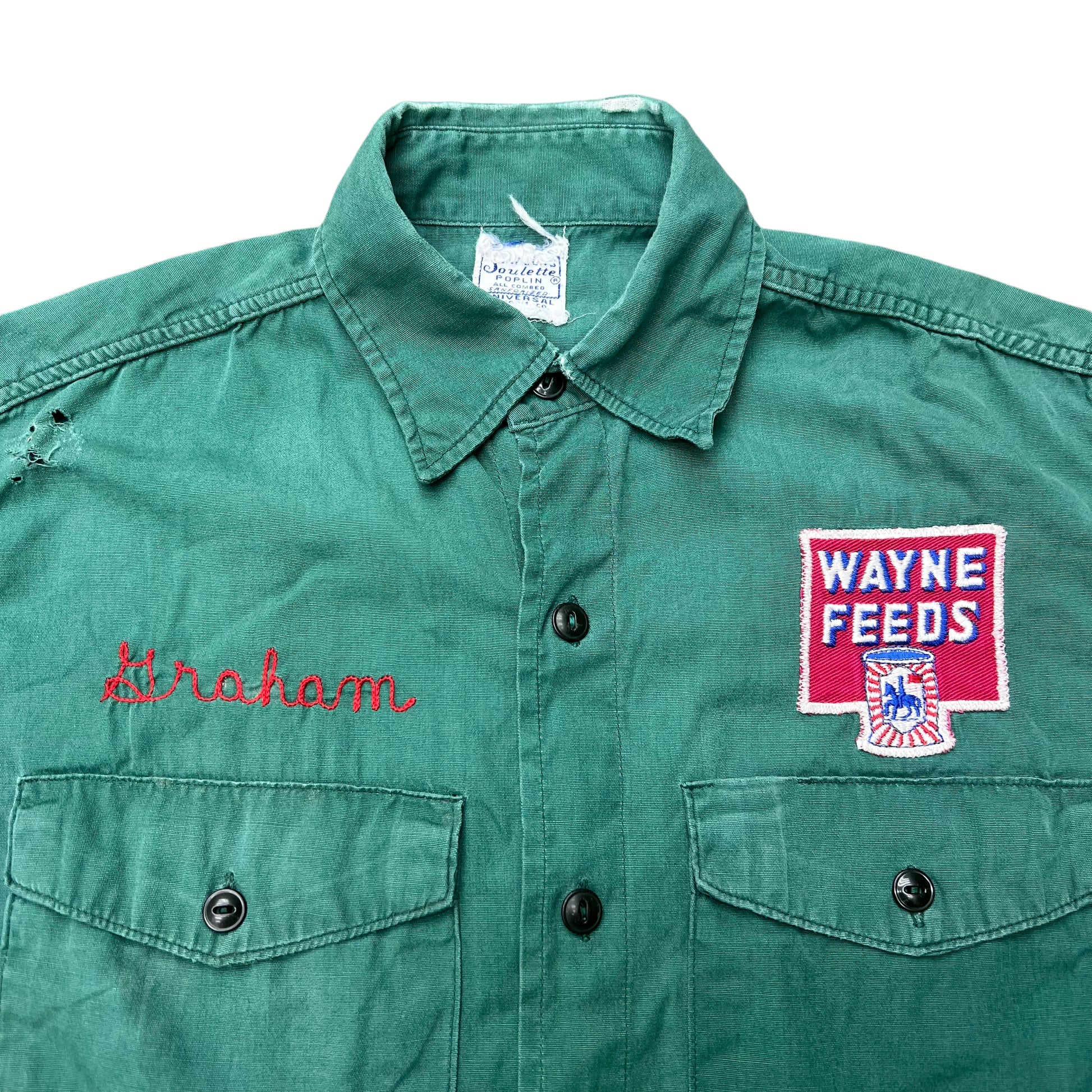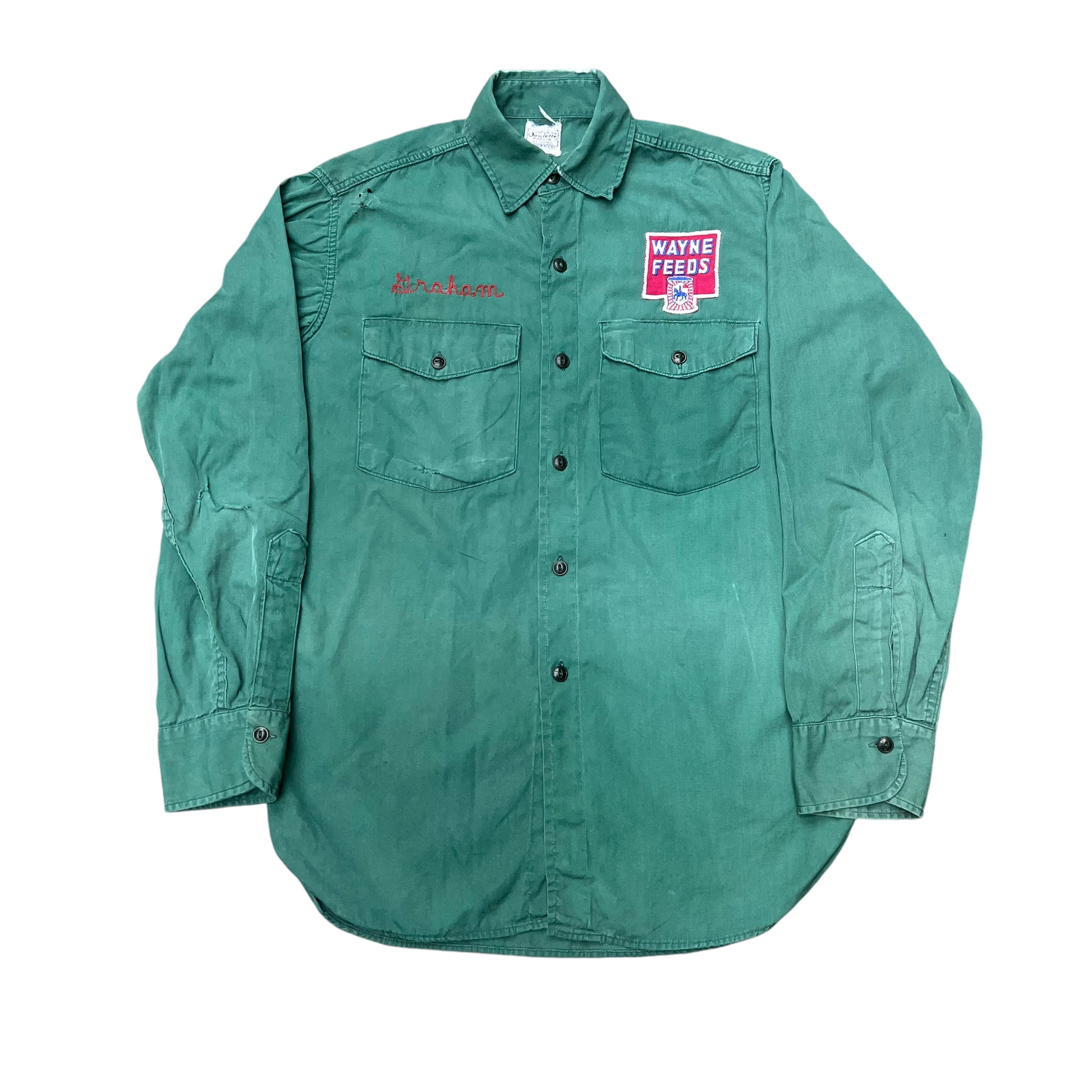 1940s Wayne Feeds green work shirt chain stitch (S)