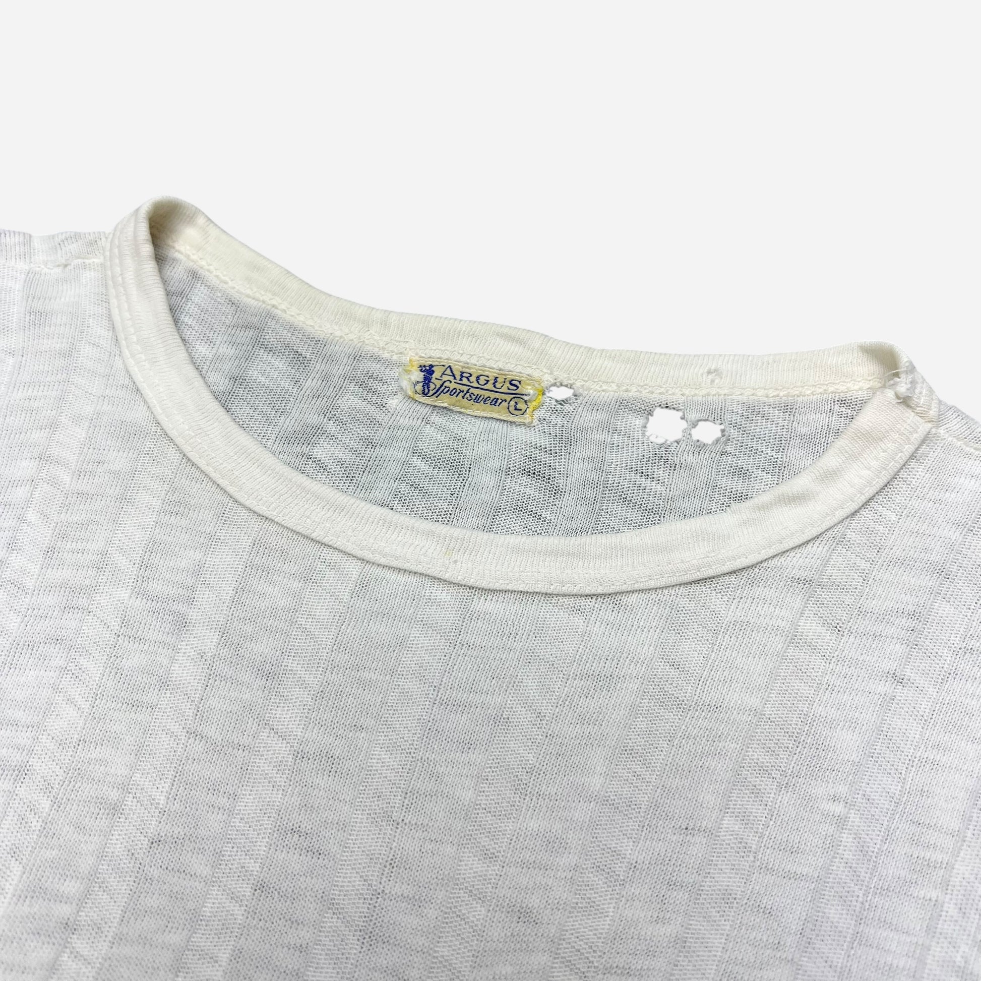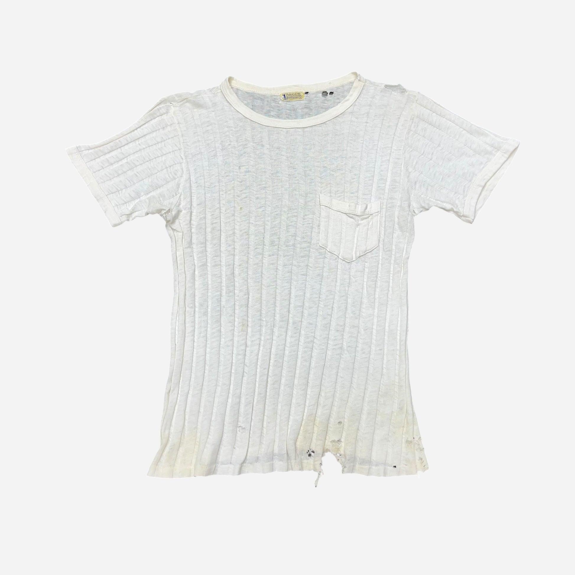 1940s White ribbed cotton pocket t shirt (M)