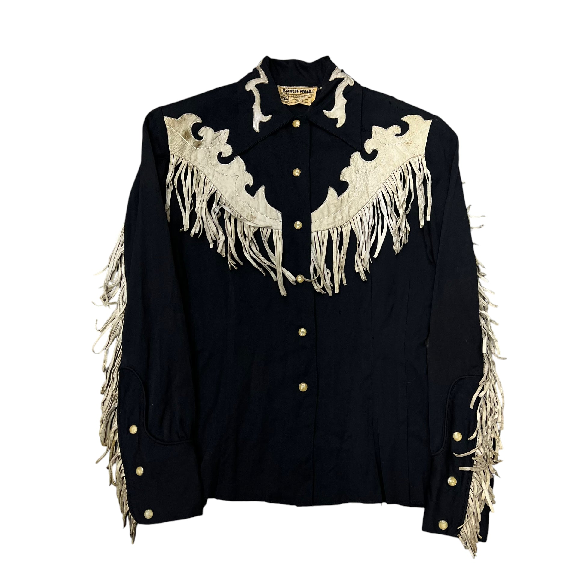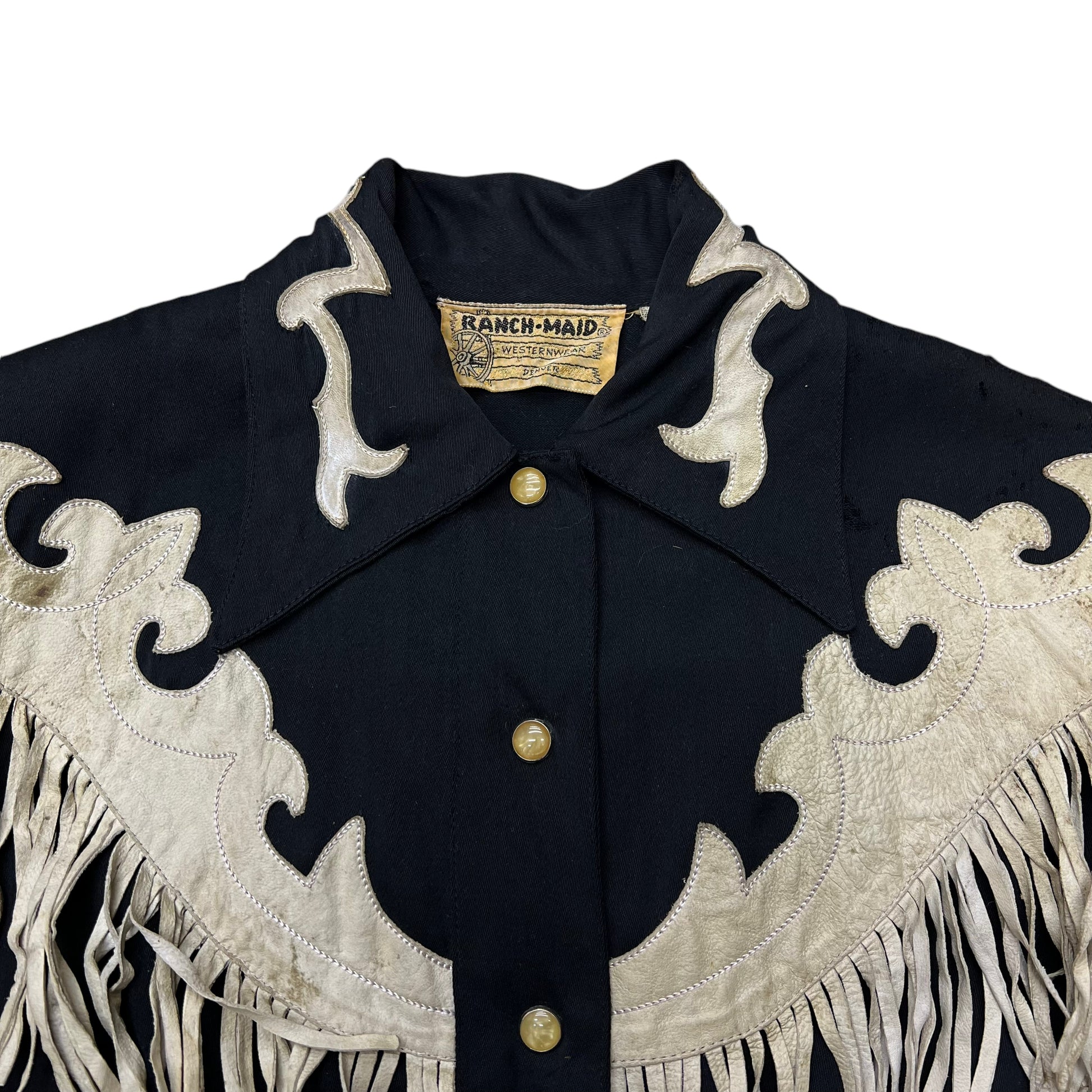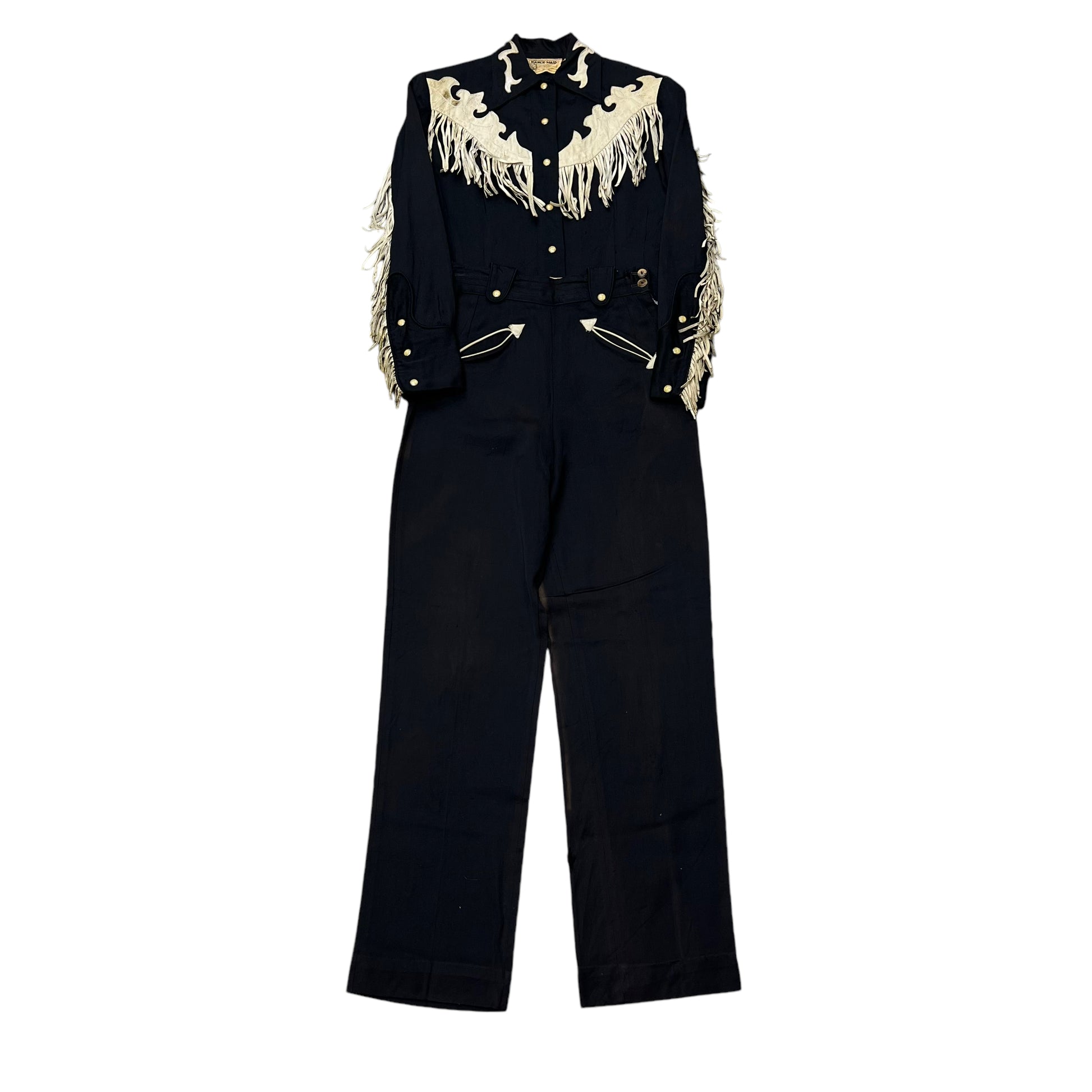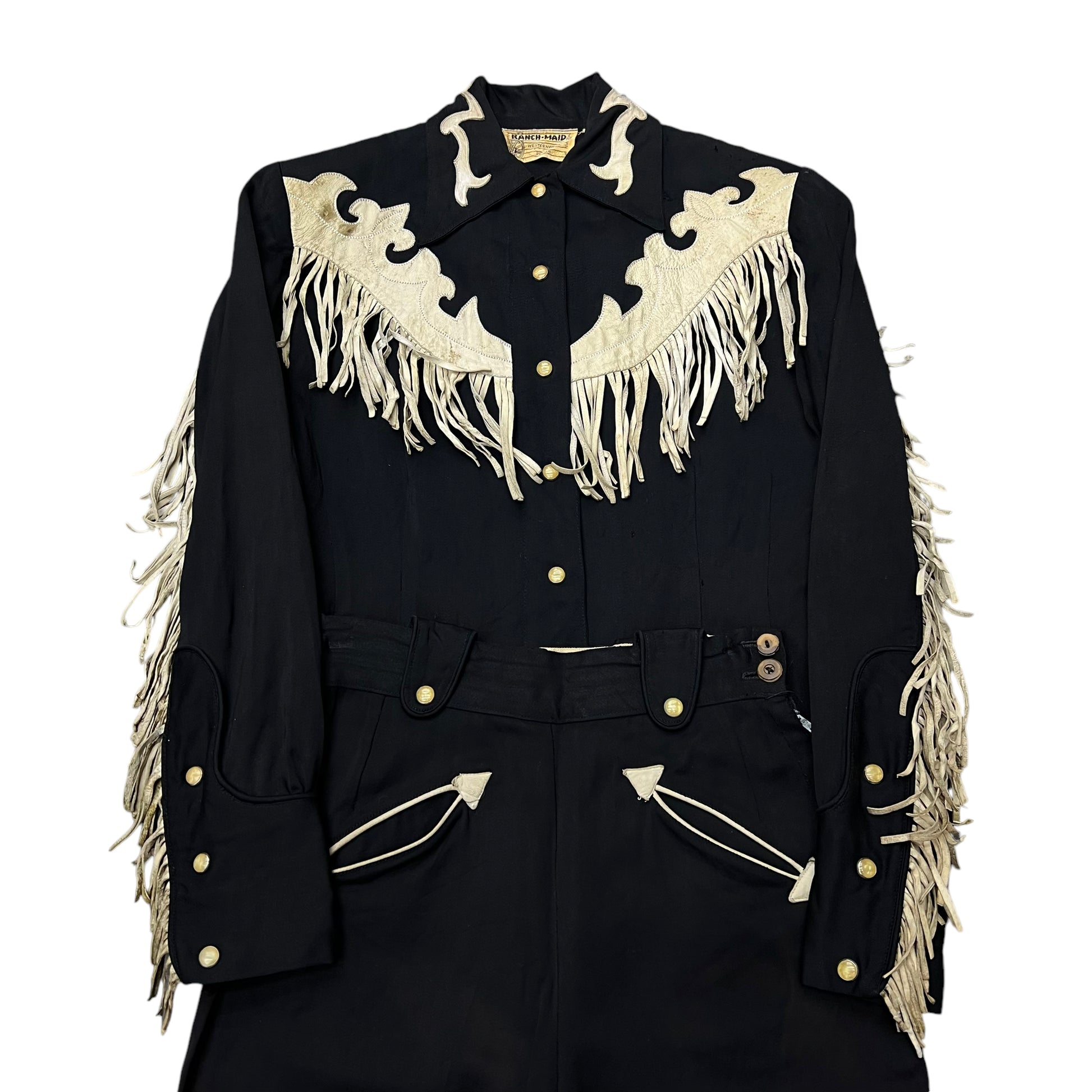 1940s Women’s black rayon white leather western rodeo suit (XS)