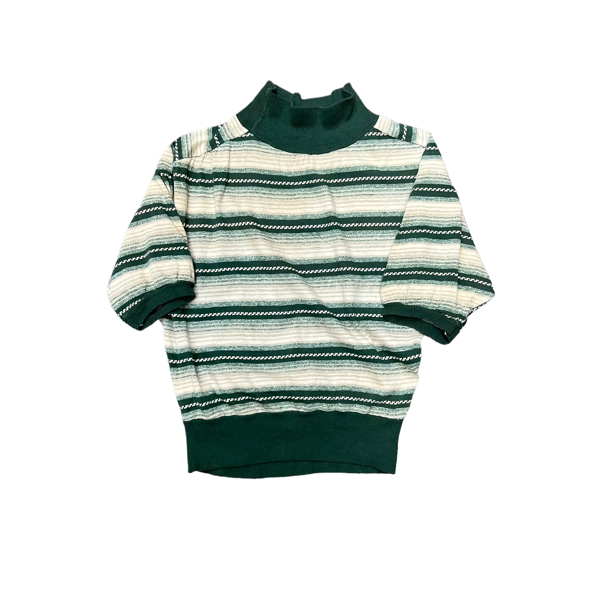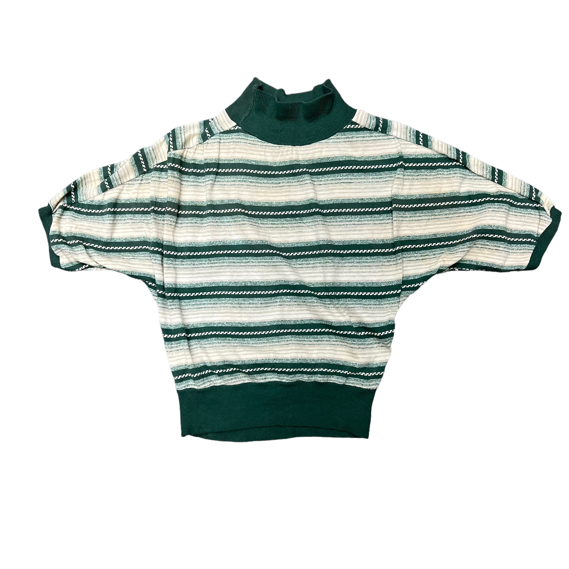 1940s Women’s green striped mock neck sweatshirt (XS/S)