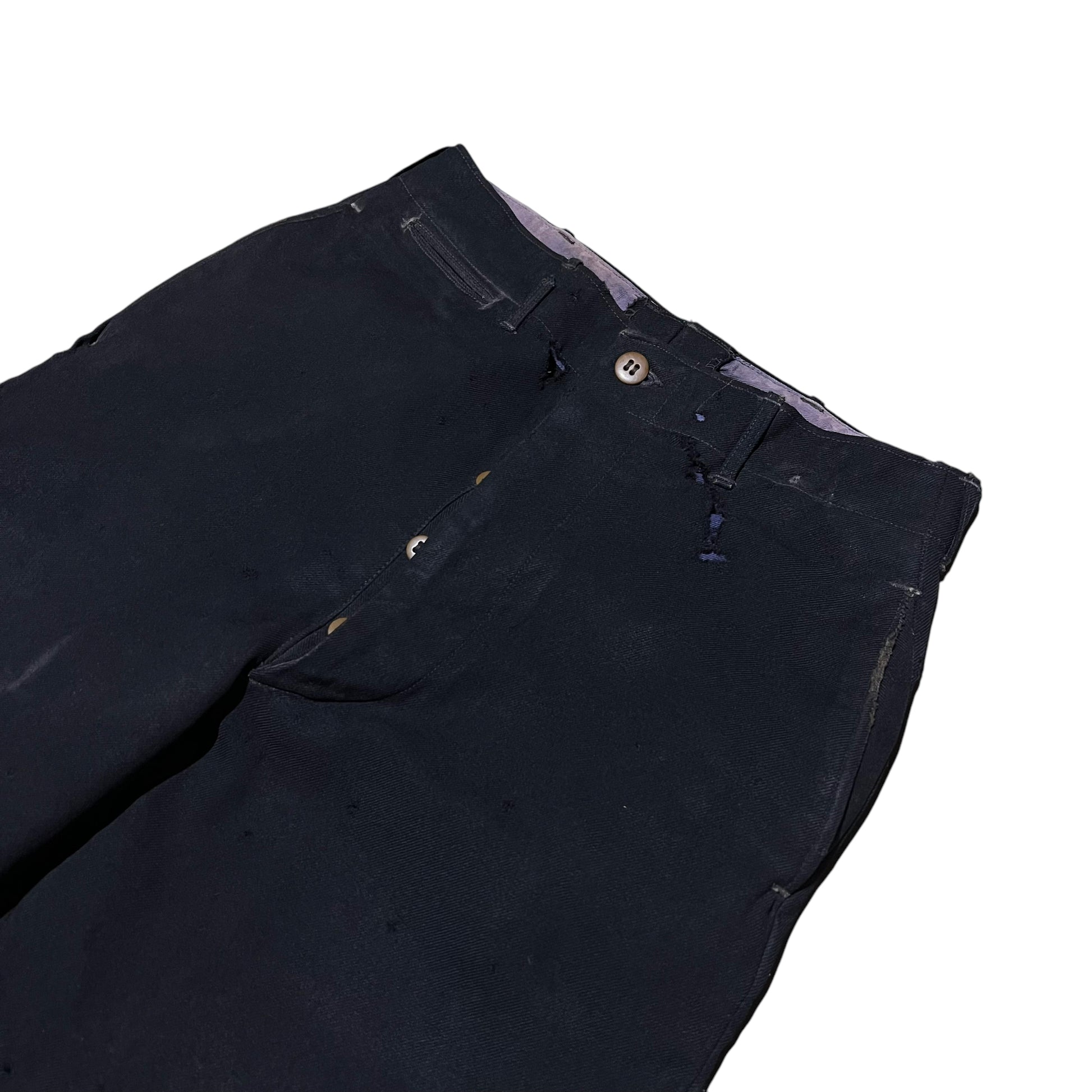 1940s WWII black overdyed whipcord button fly military pants (29w)