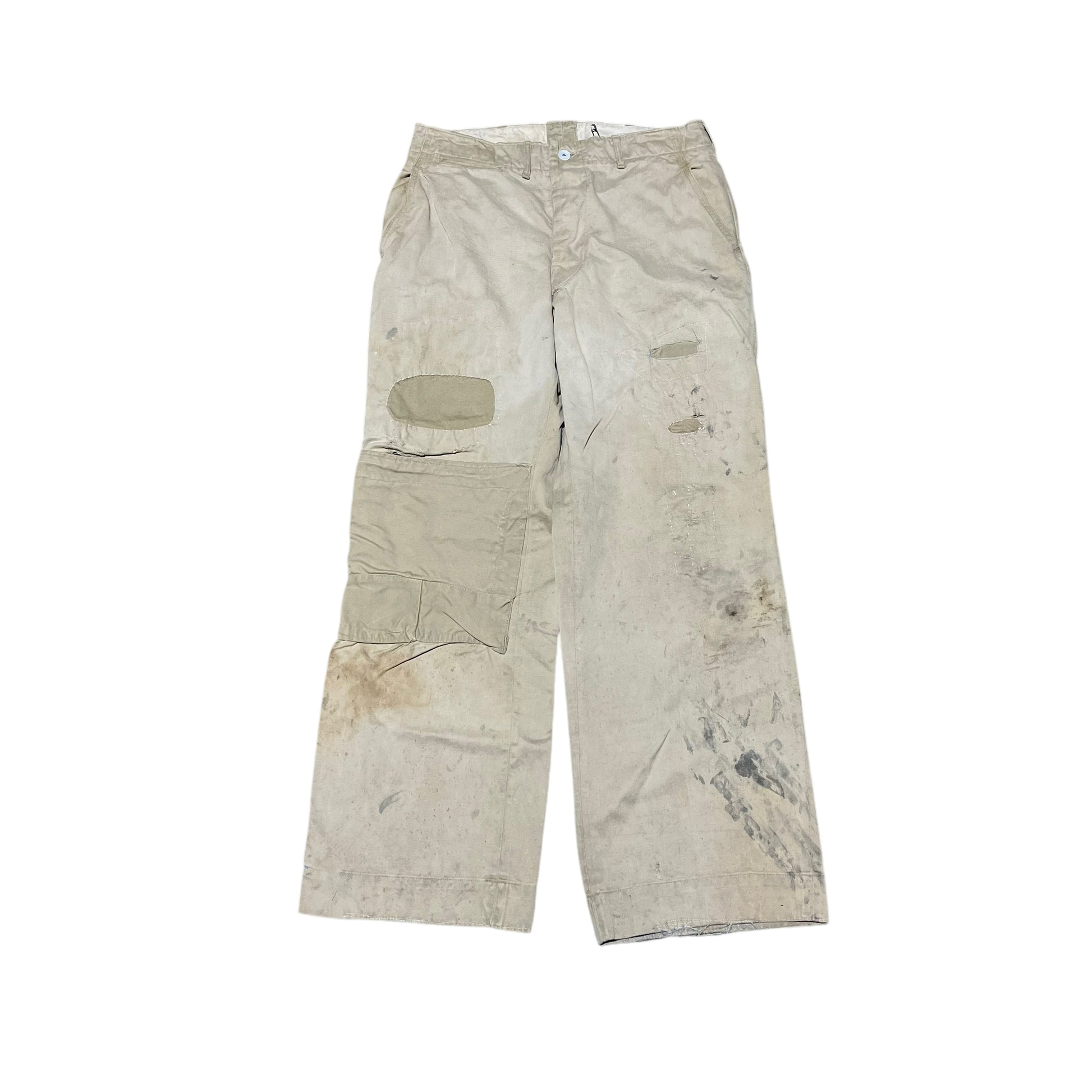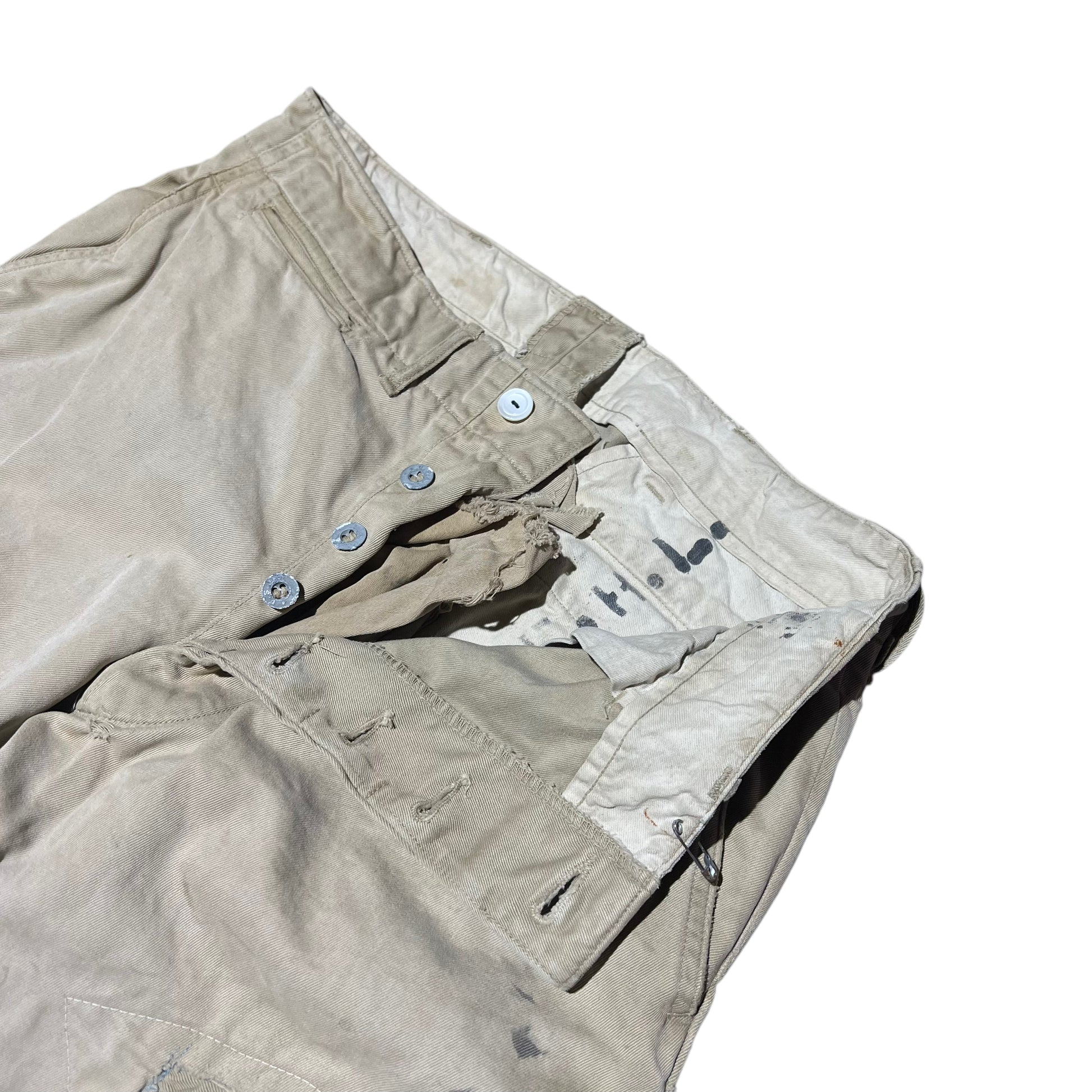 1940s WWII US Army zinc button repaired khaki chino pants (31w)