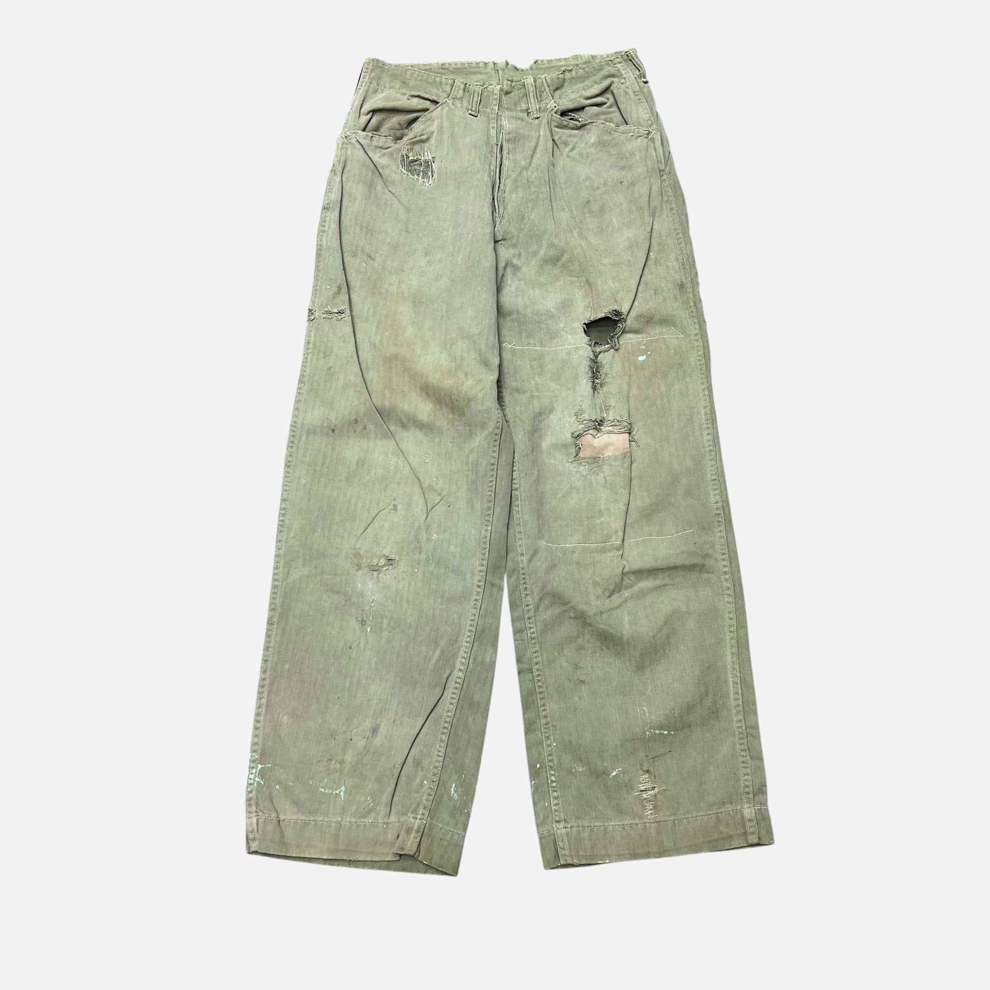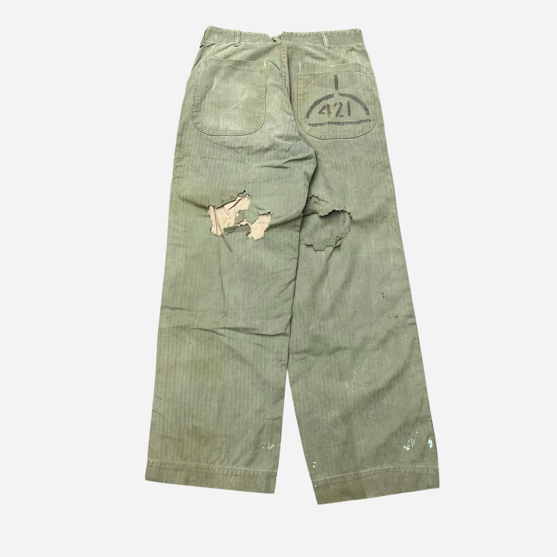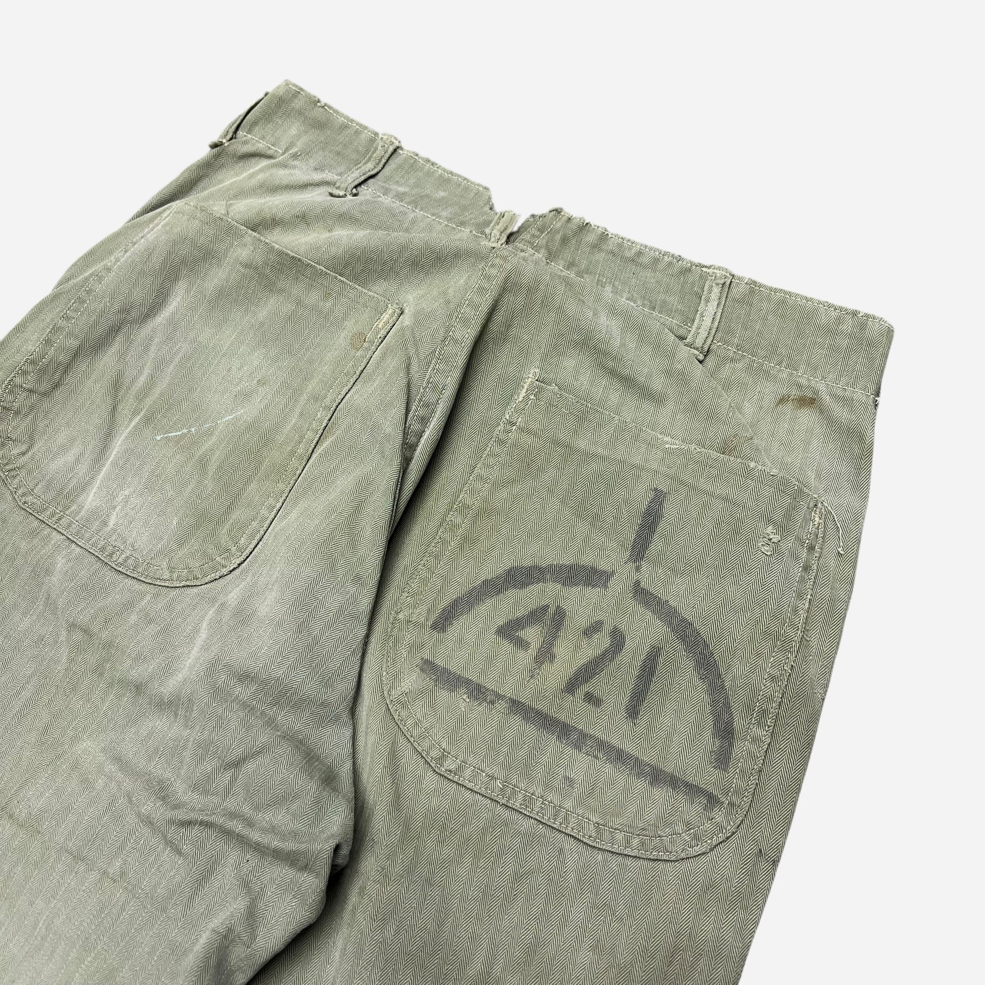 1940s WWII USMC P41 “421” stenciled green hbt pants as is (30w)