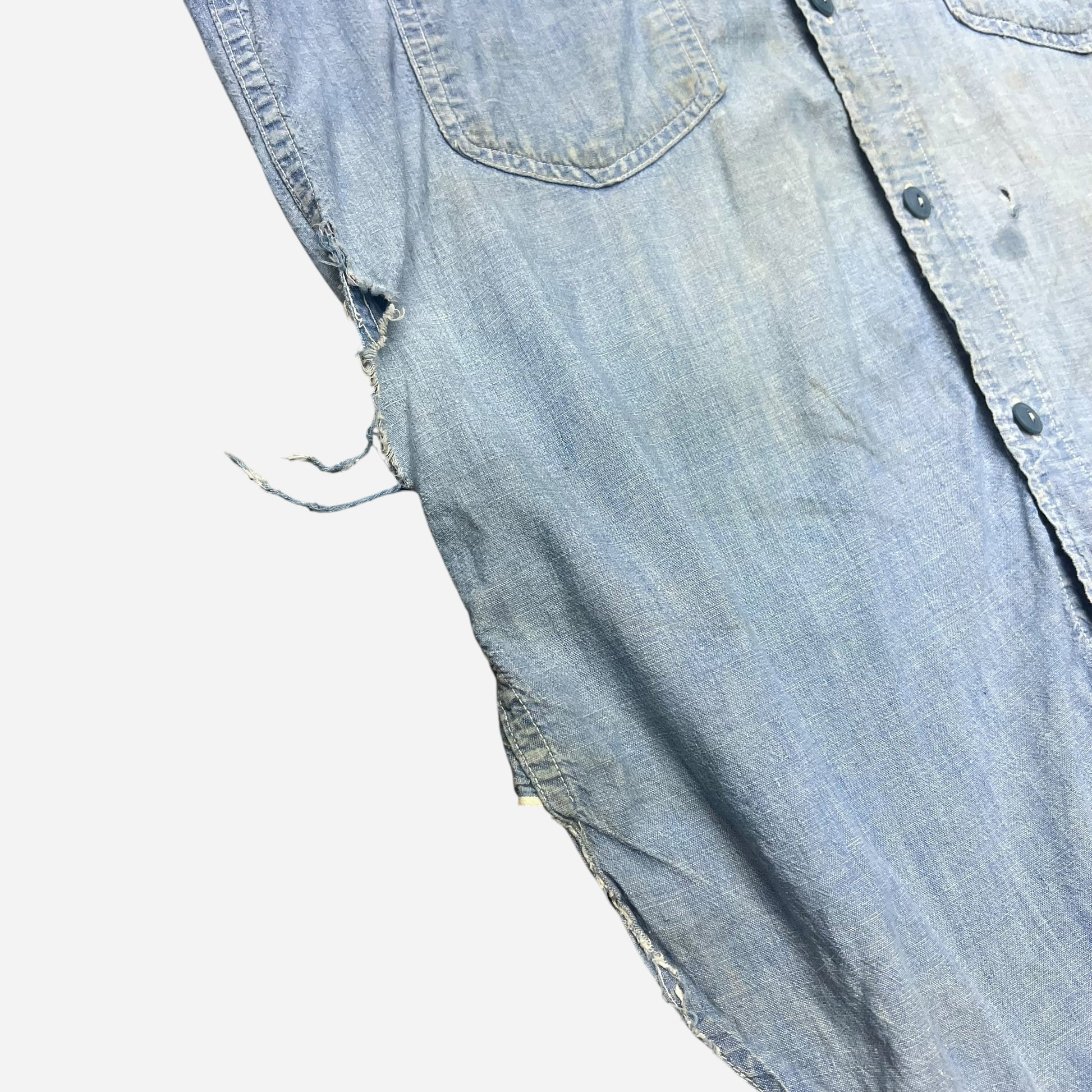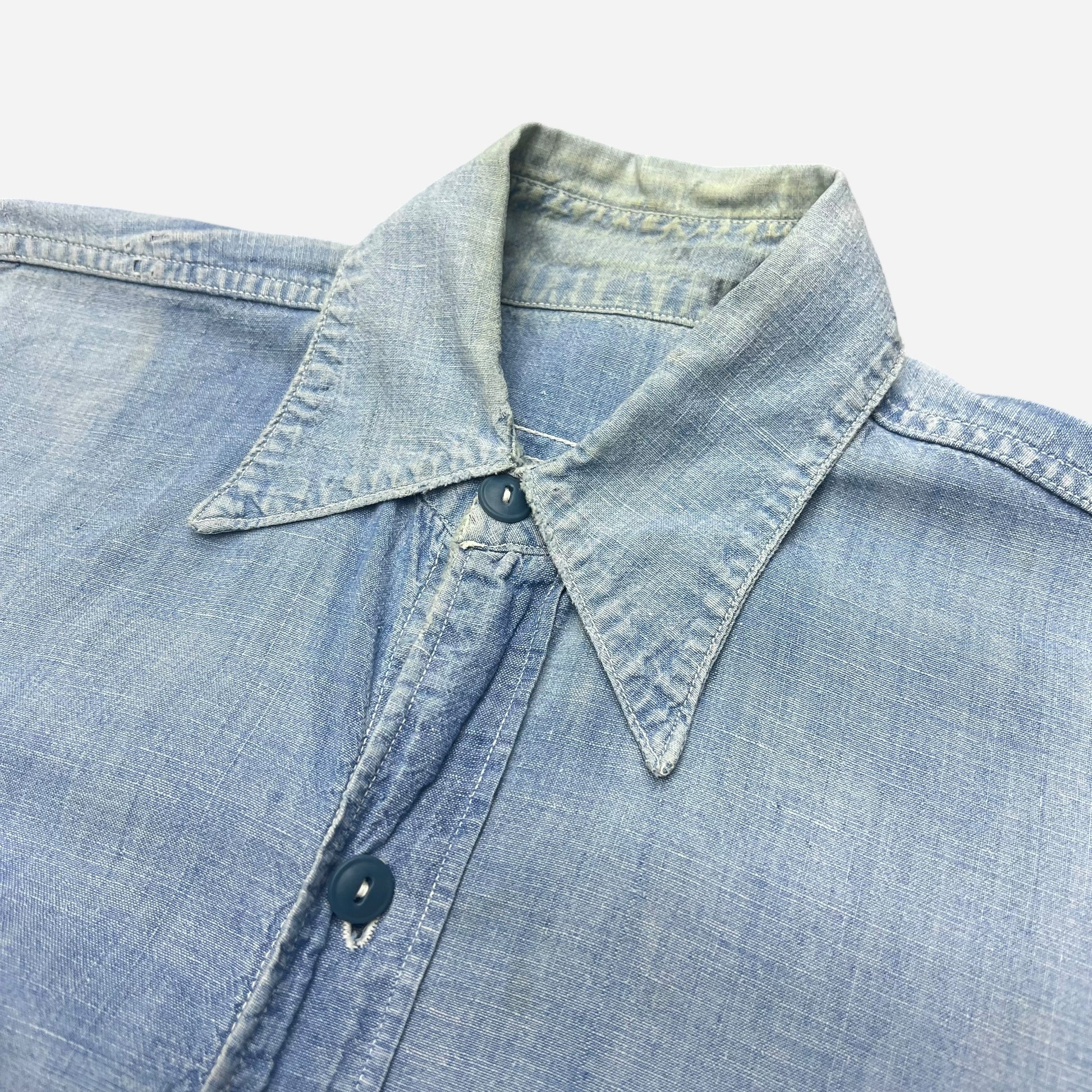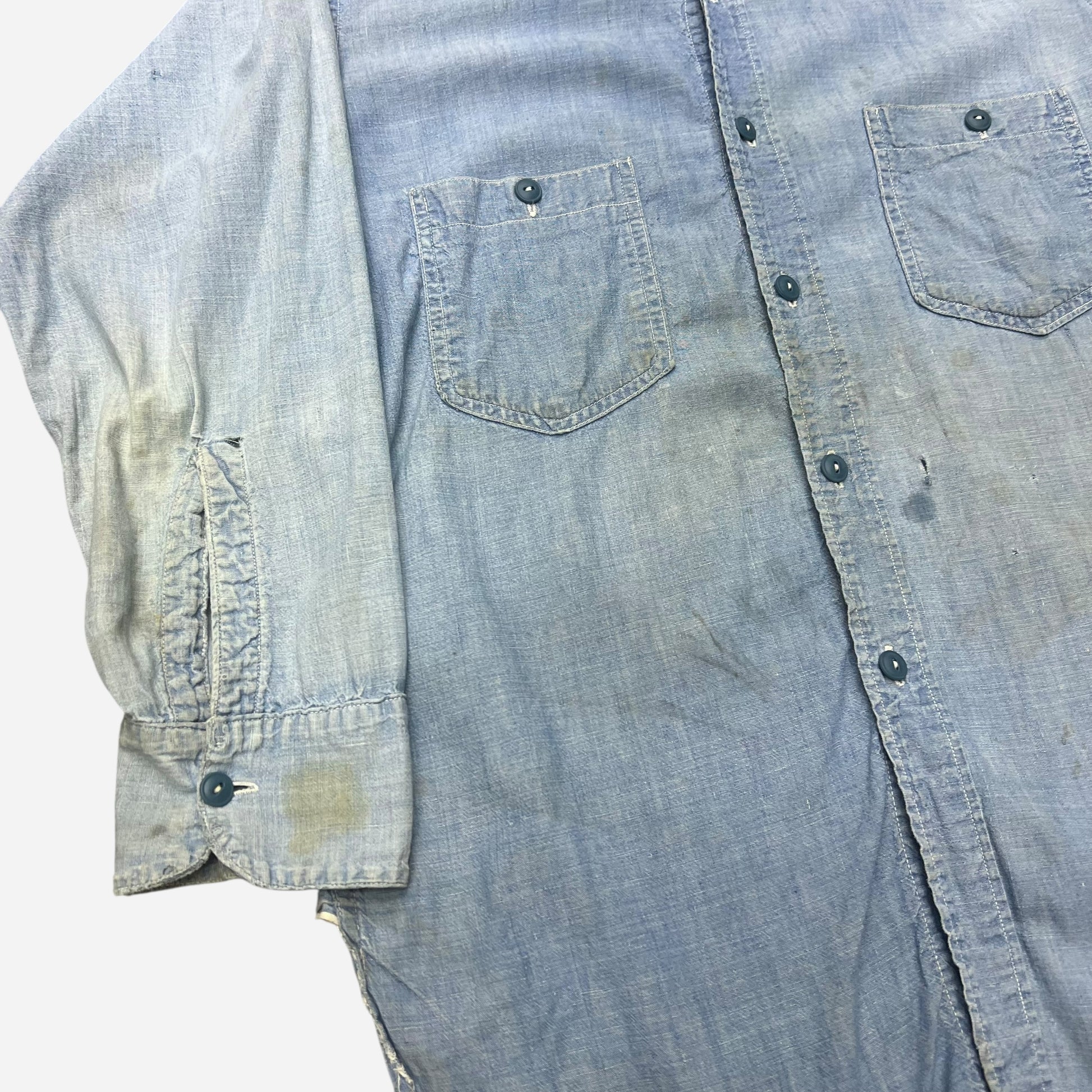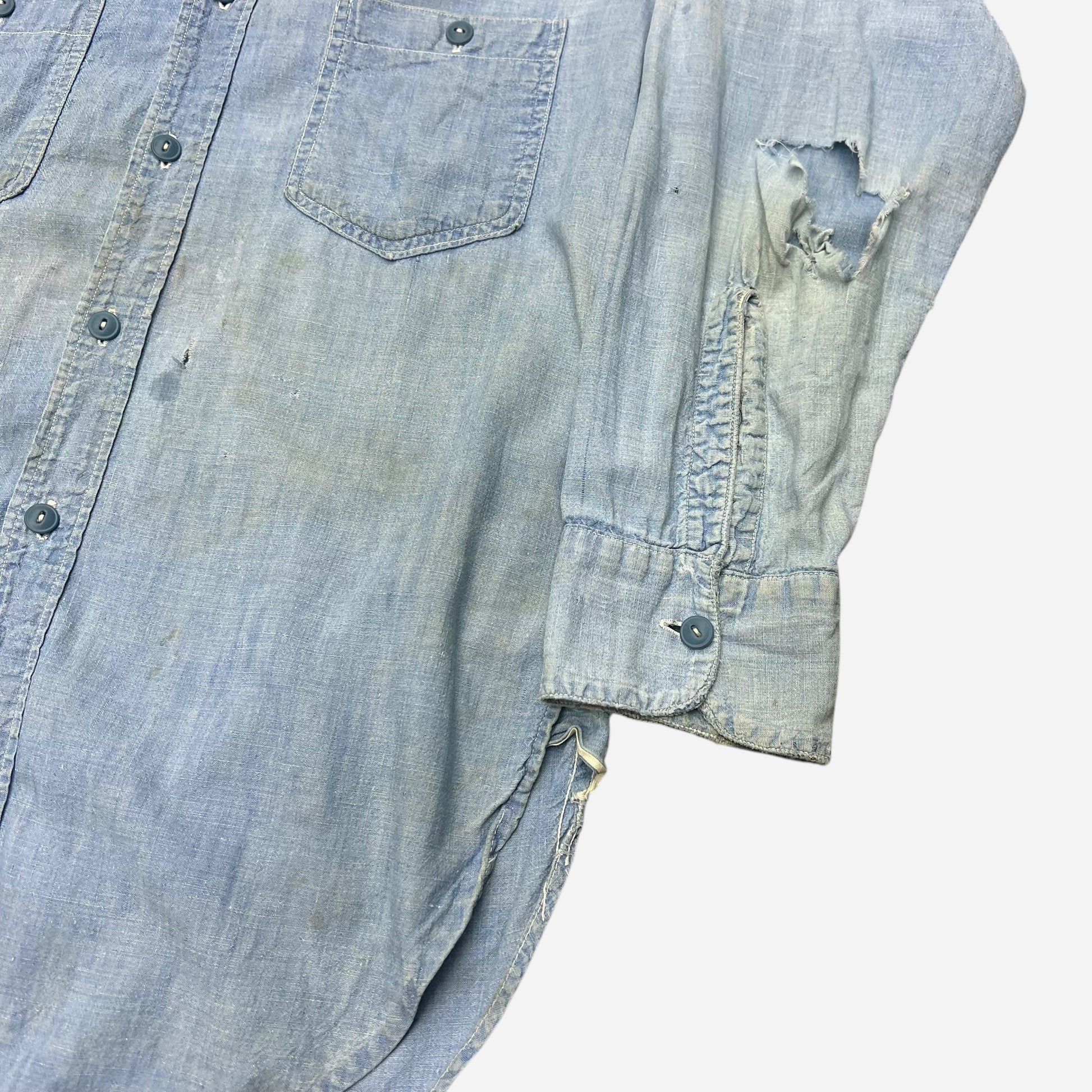 1940s WWII USN chambray shirt farmer worn (M/L)