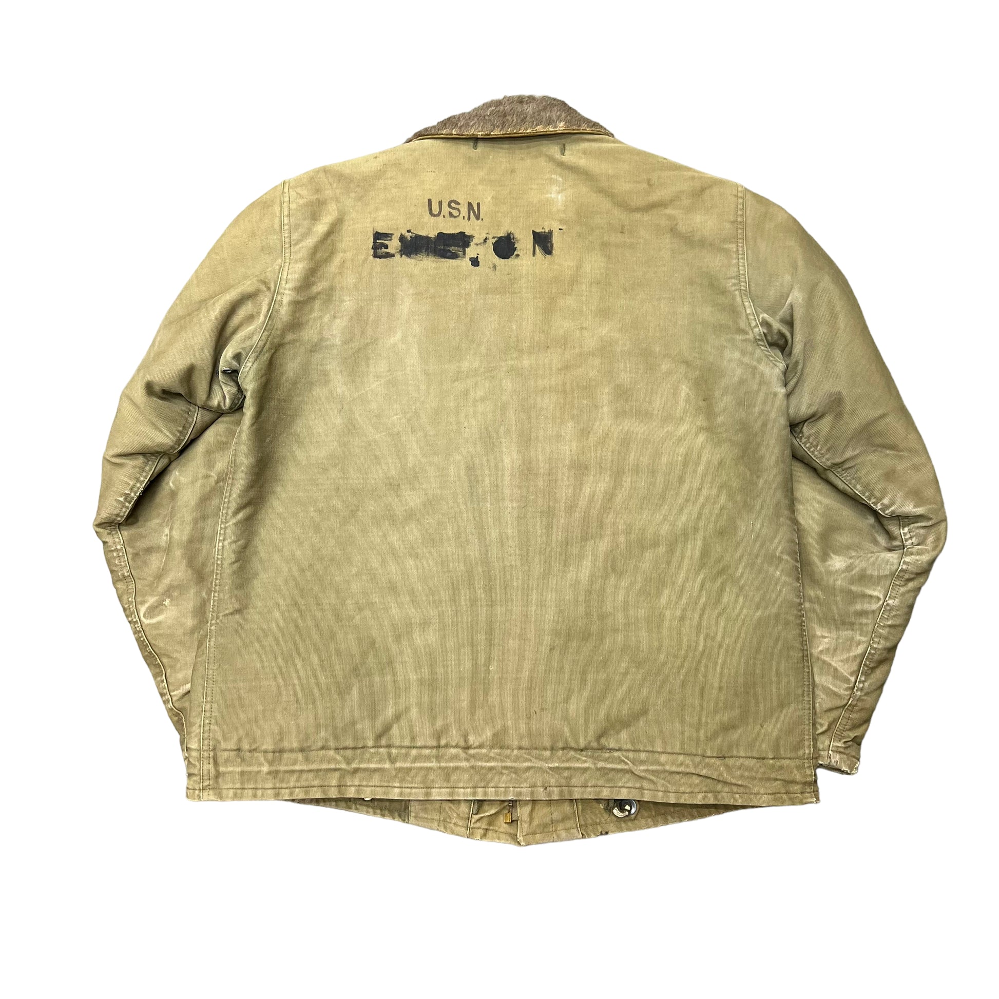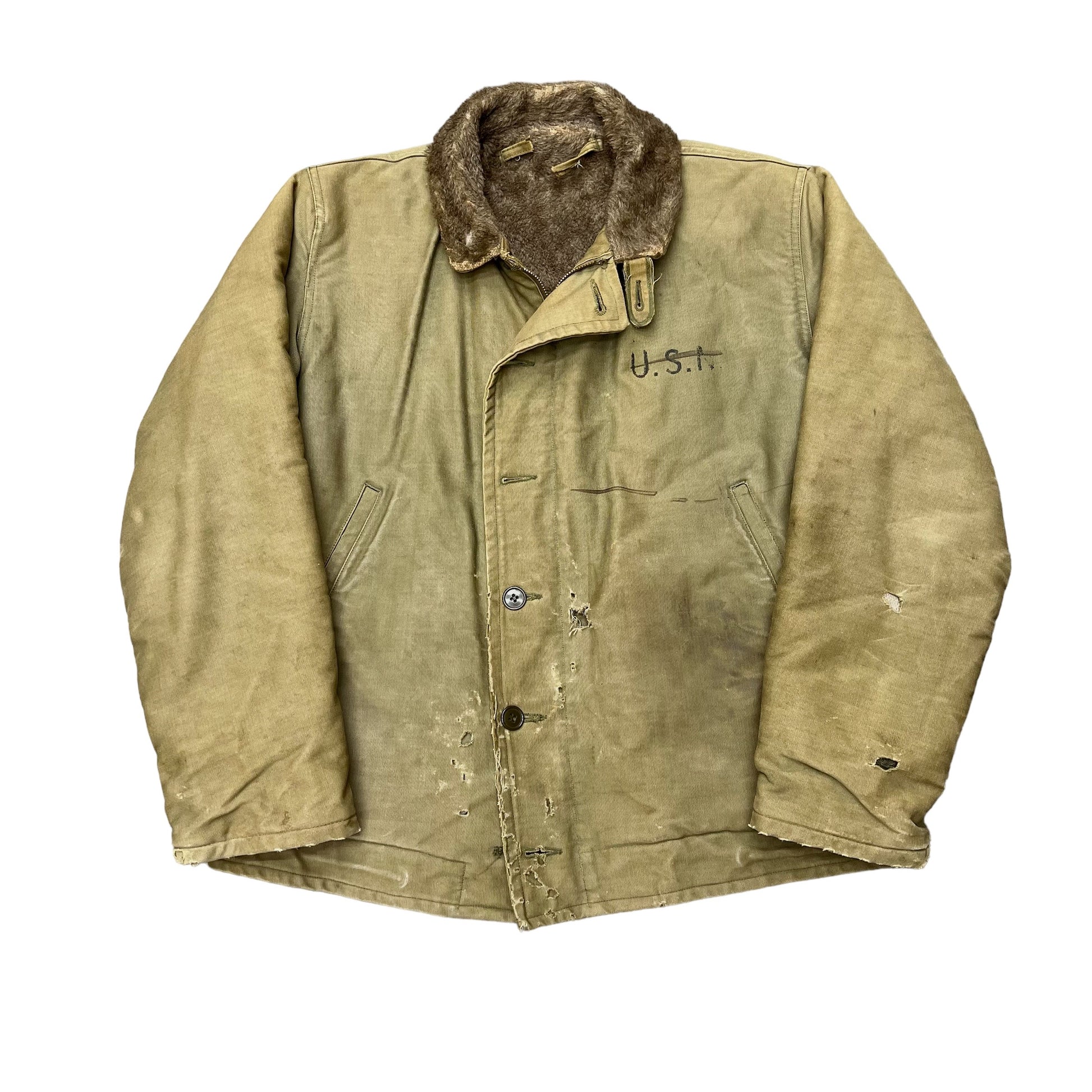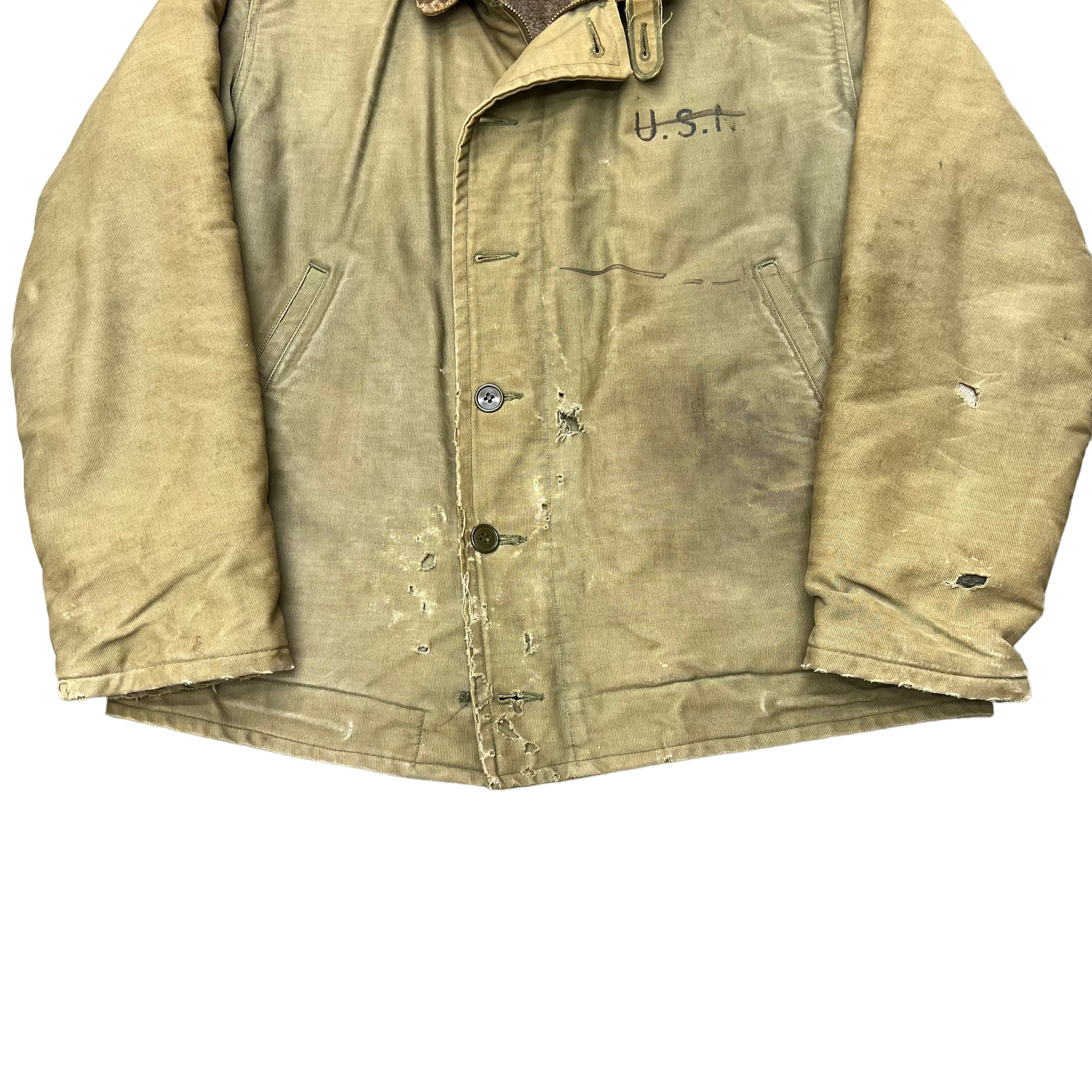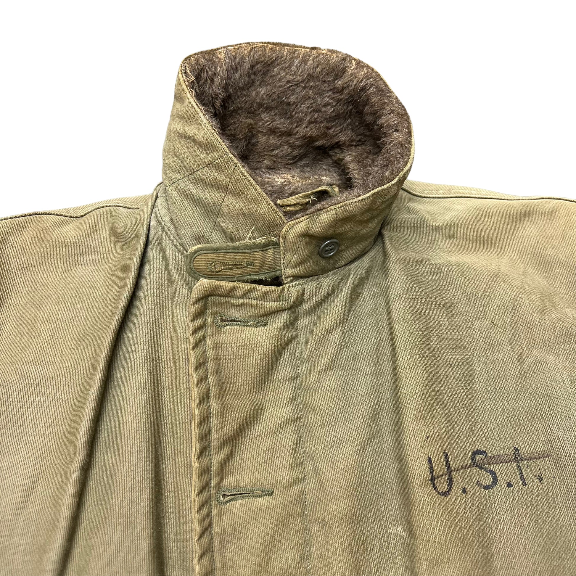 Missing zipper pull. Has two buttons. Liner is in excellent shape, just some collar wear. Sleeve cuffs are in good shape.