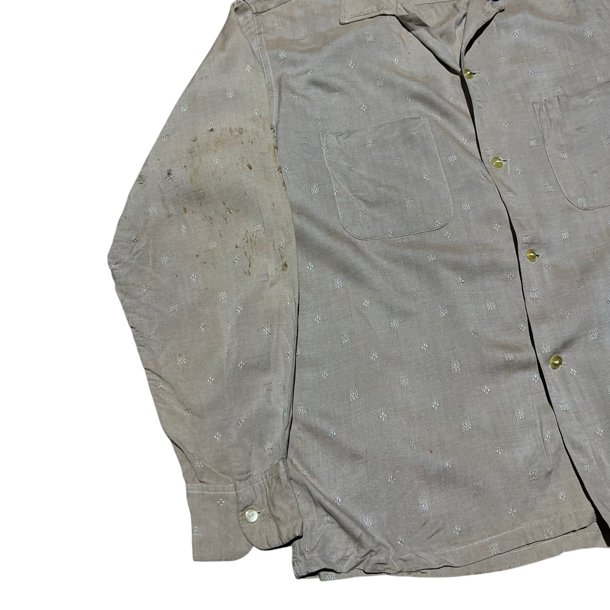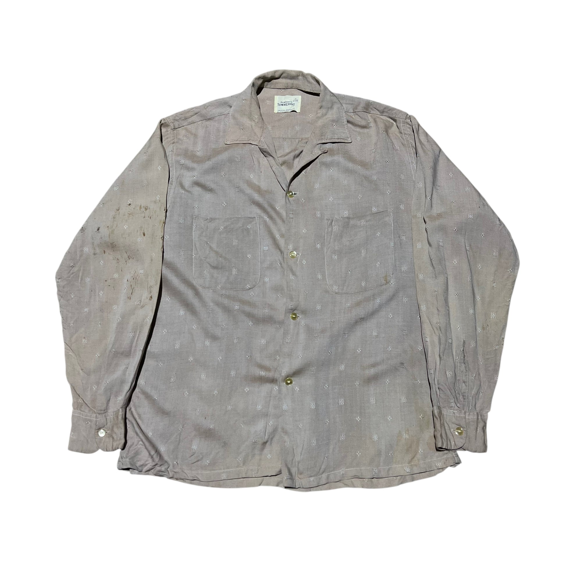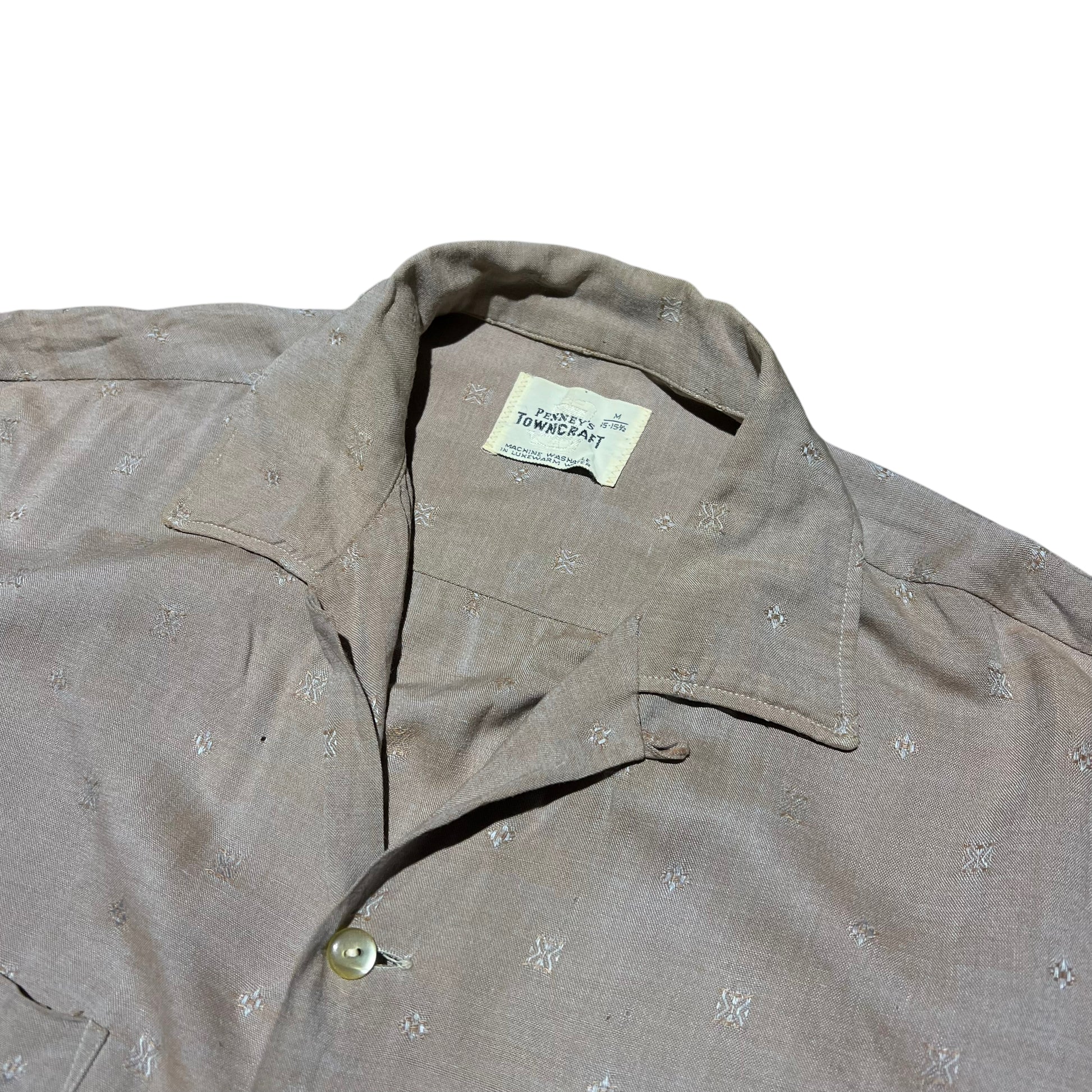 1950s 1960s Towncraft rayon pattern loop collar shirt (M)