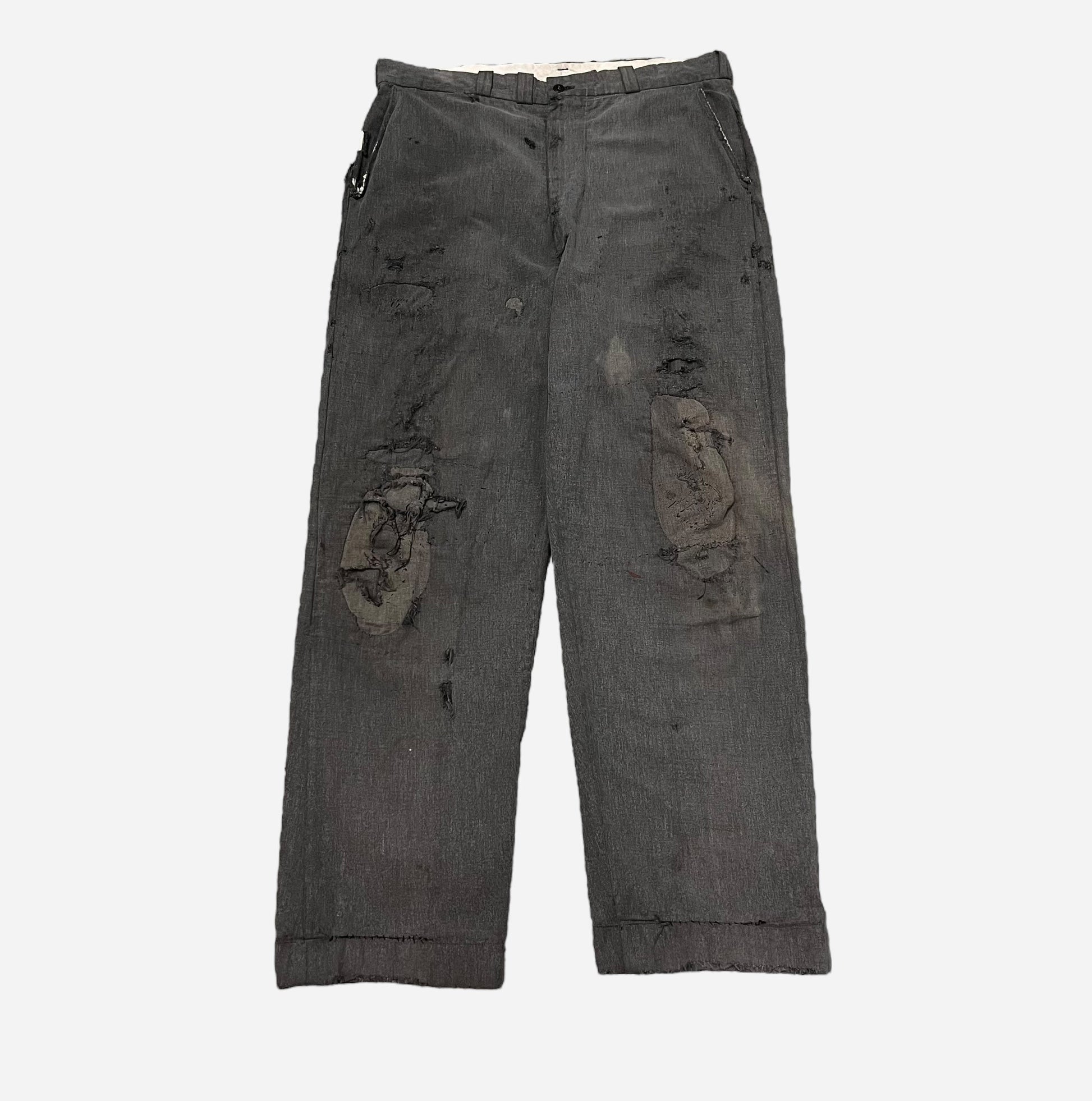 1950s Big Mac heavily repaired salt & pepper work pants (35w)