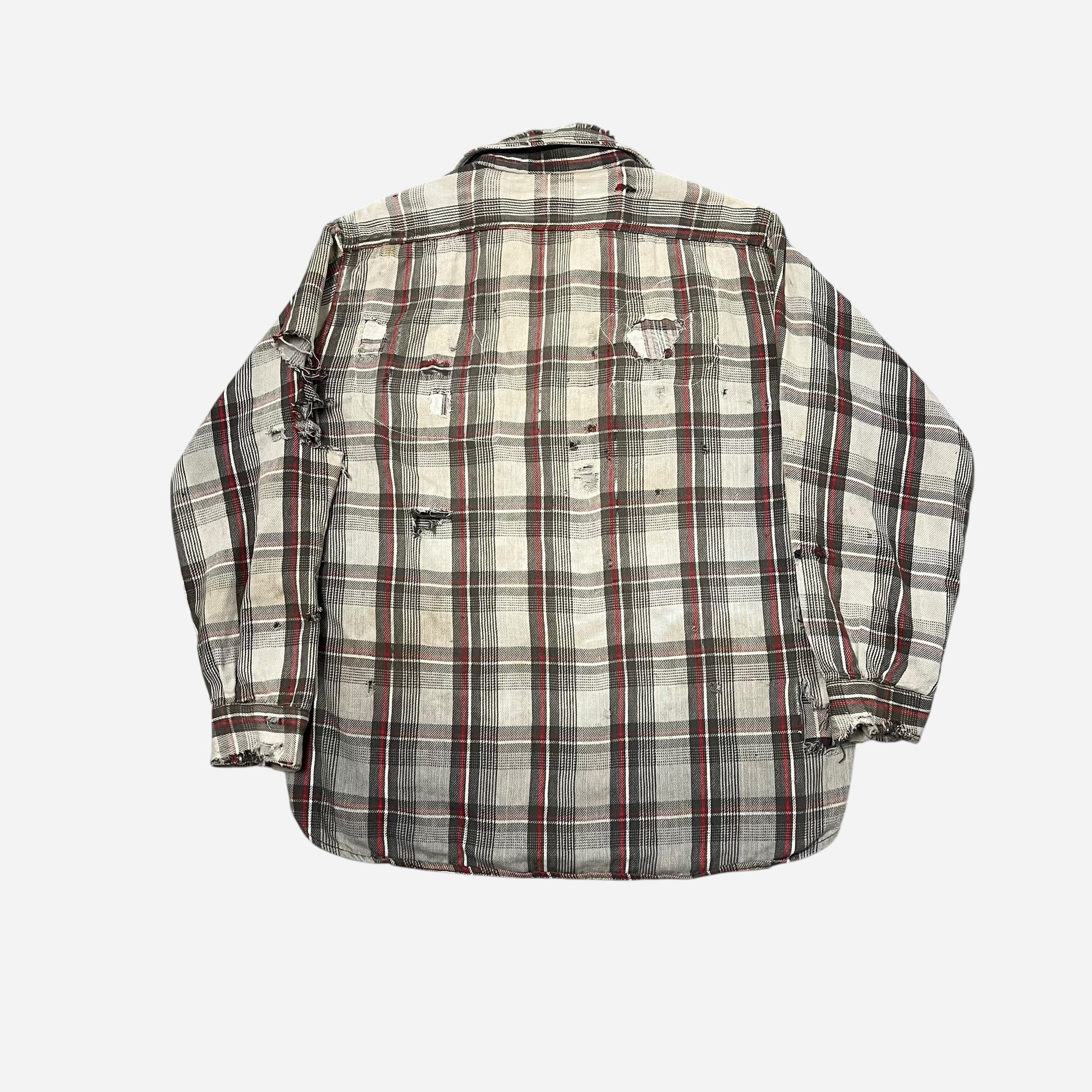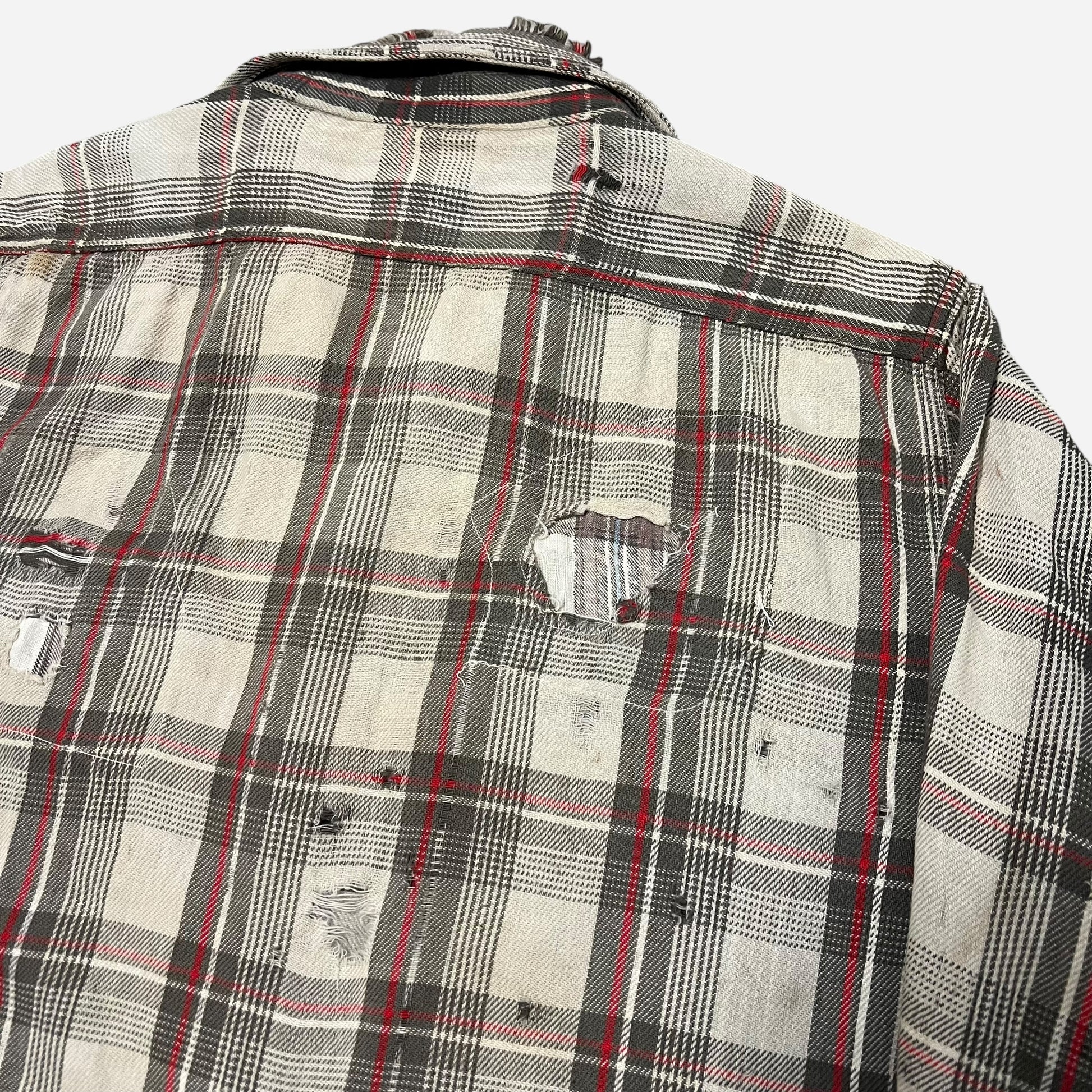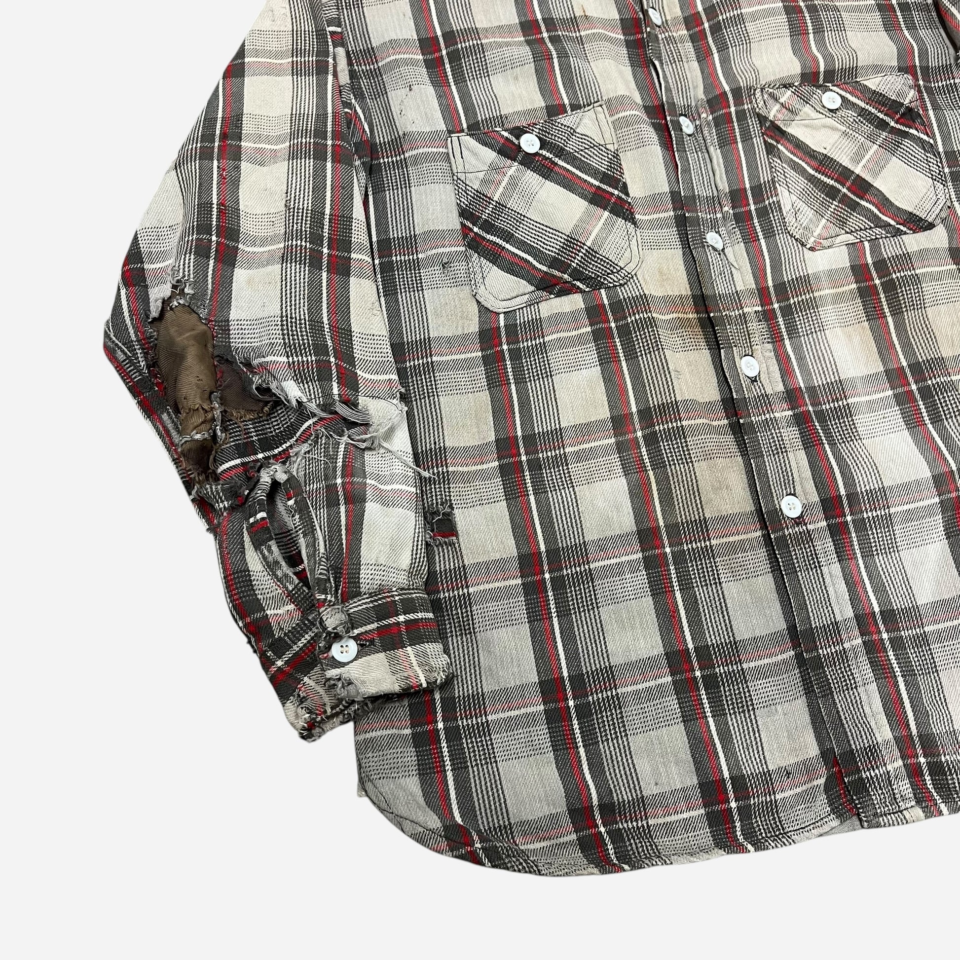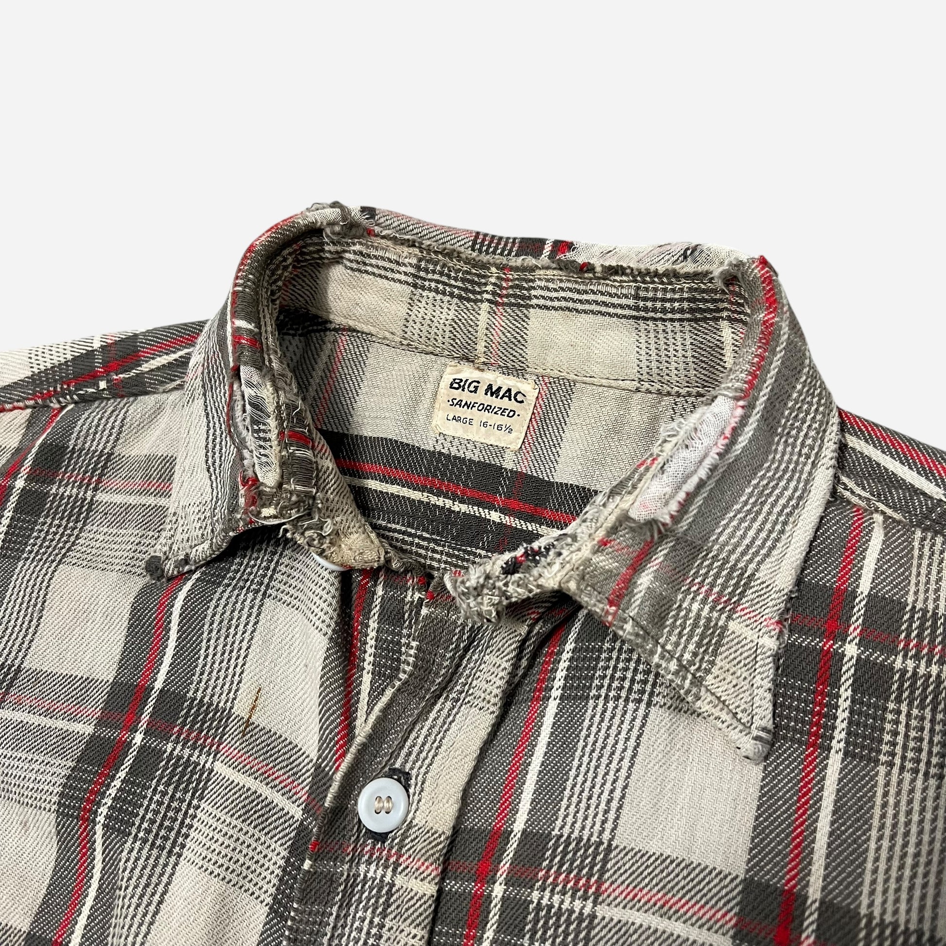 1950s Big Mac red & white plaid heavy woven cotton repaired flannel (L)