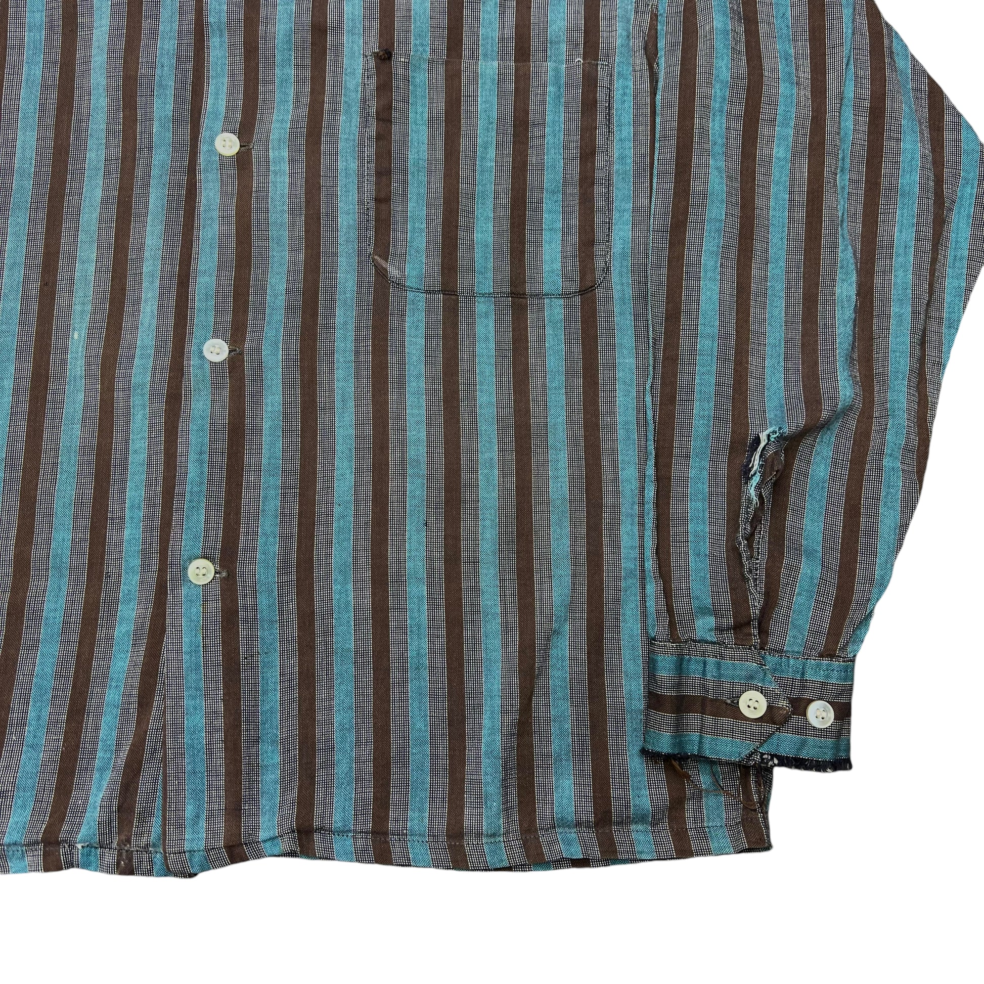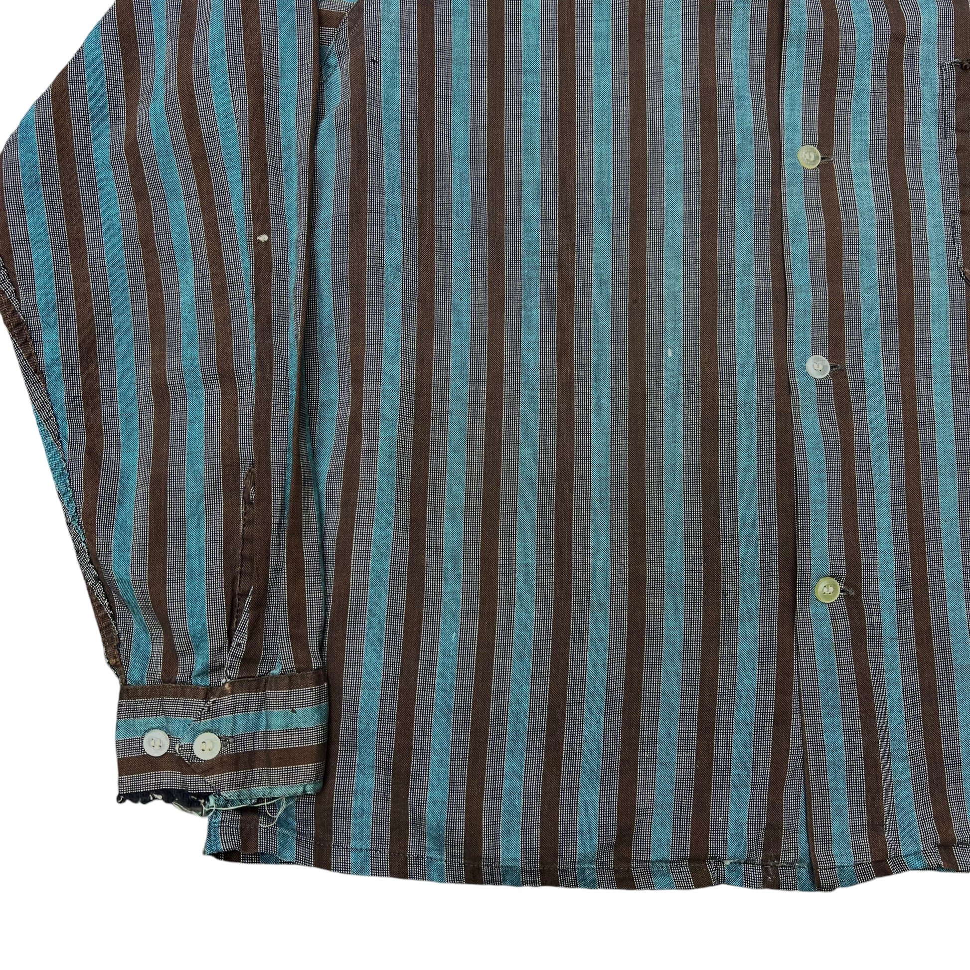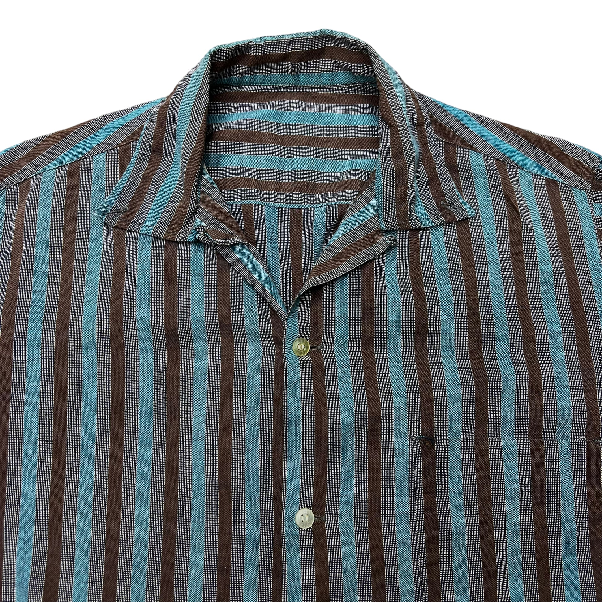1950s Blue & brown striped cotton loop collar shirt (S/M)