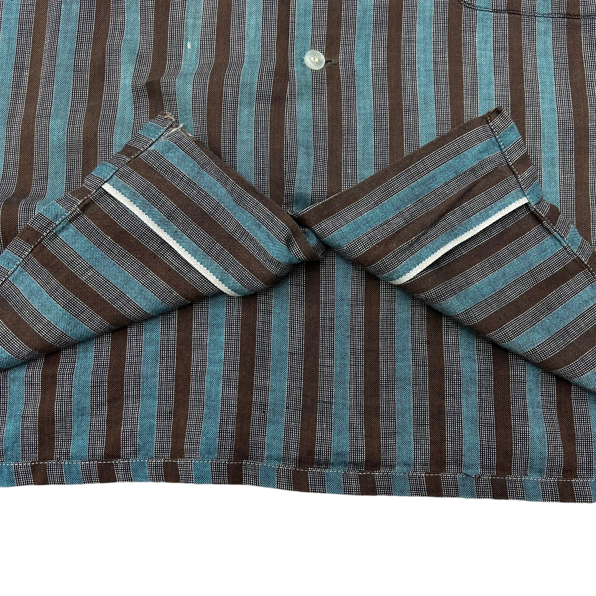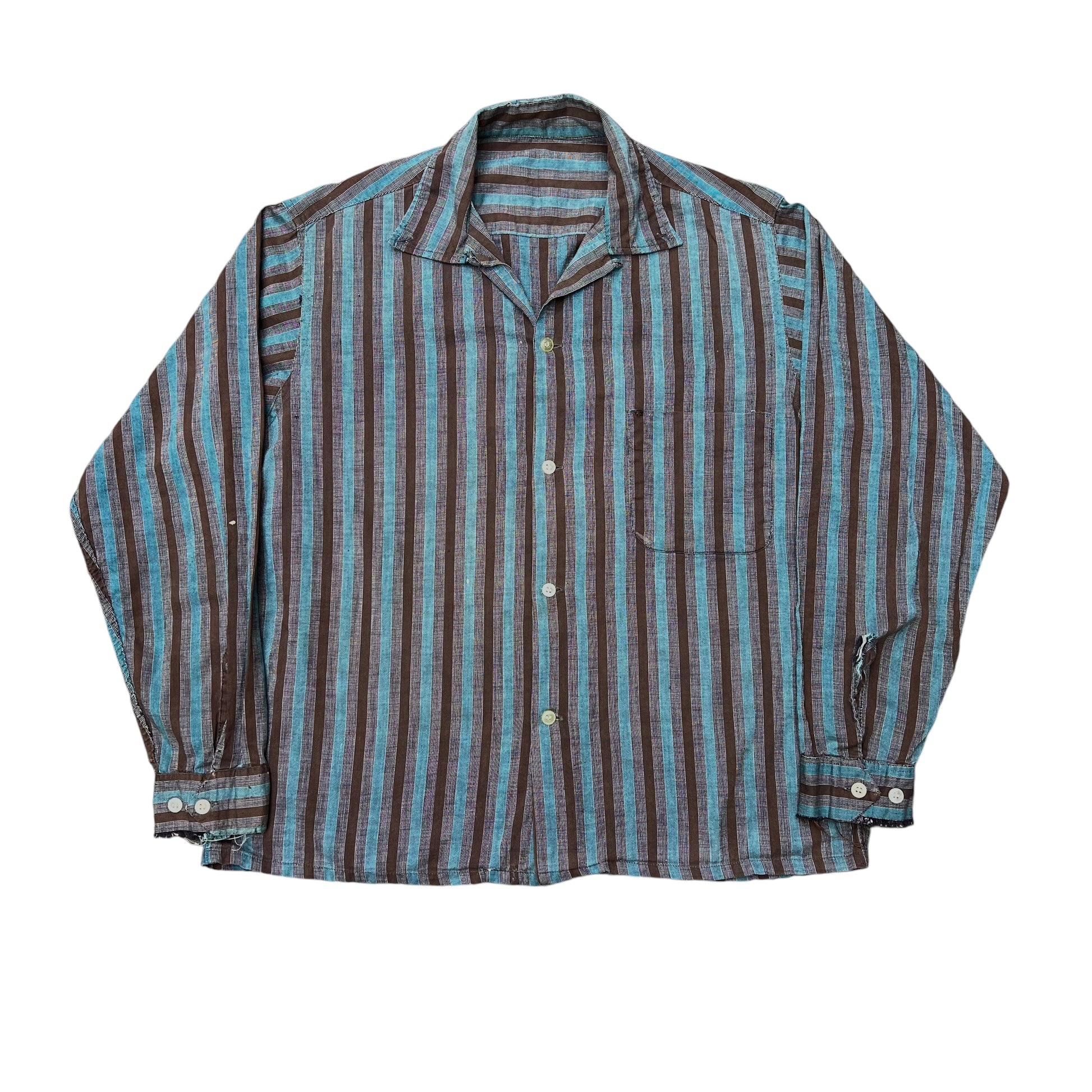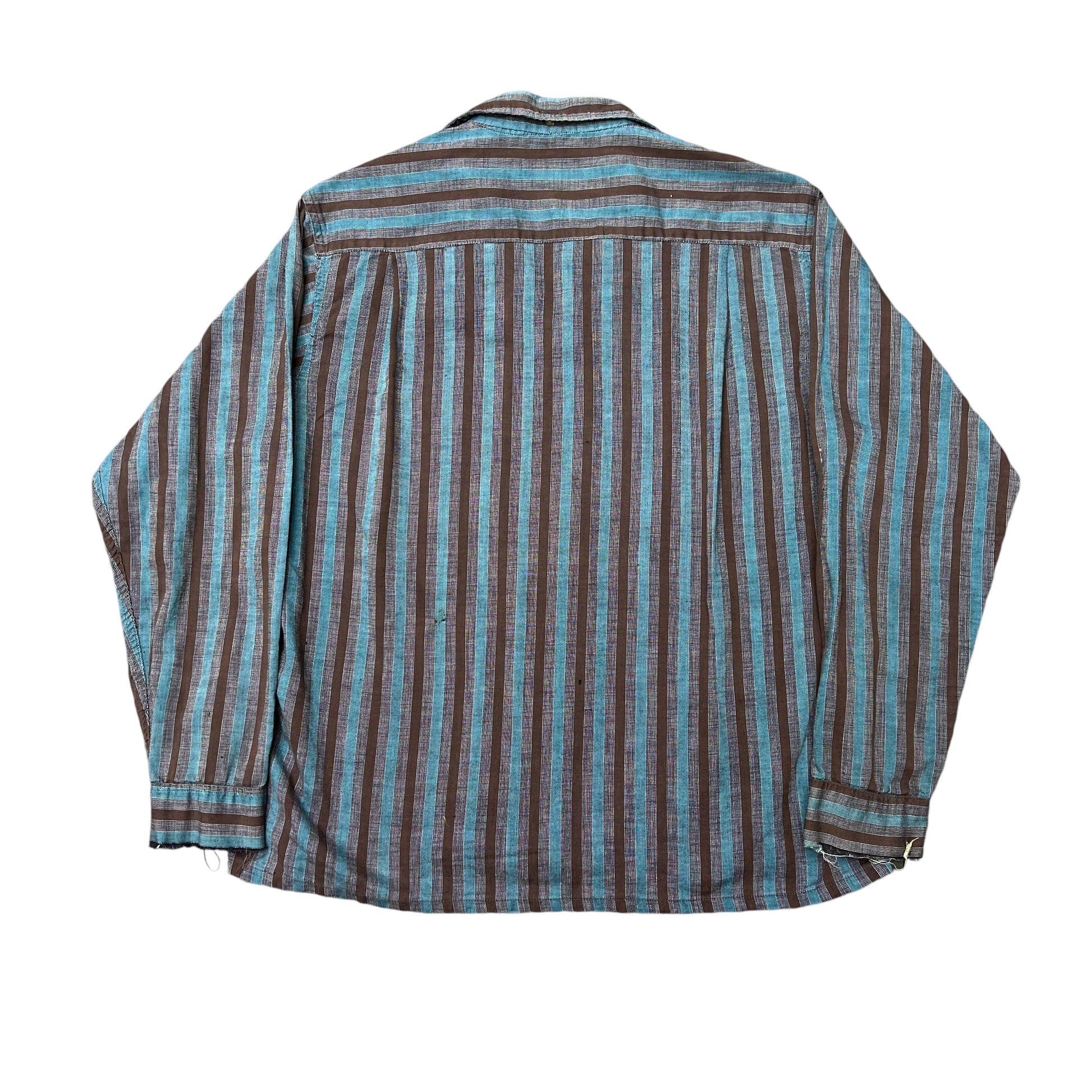 1950s Blue & brown striped cotton loop collar shirt (S/M)