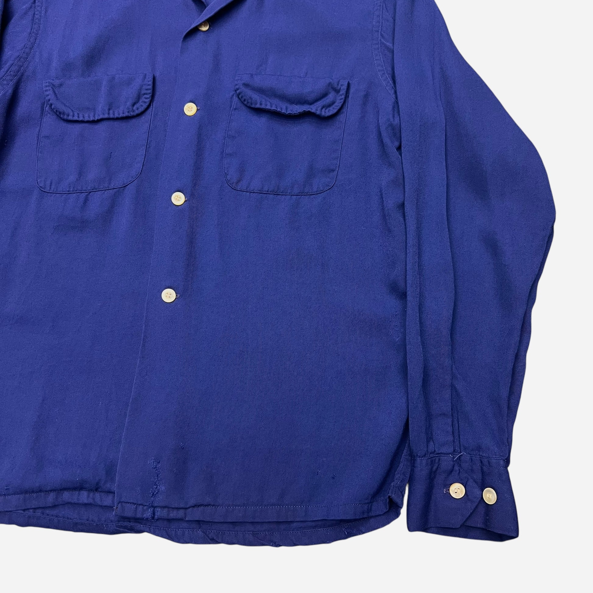 1950s Blue rayon loop collar shirt (M)