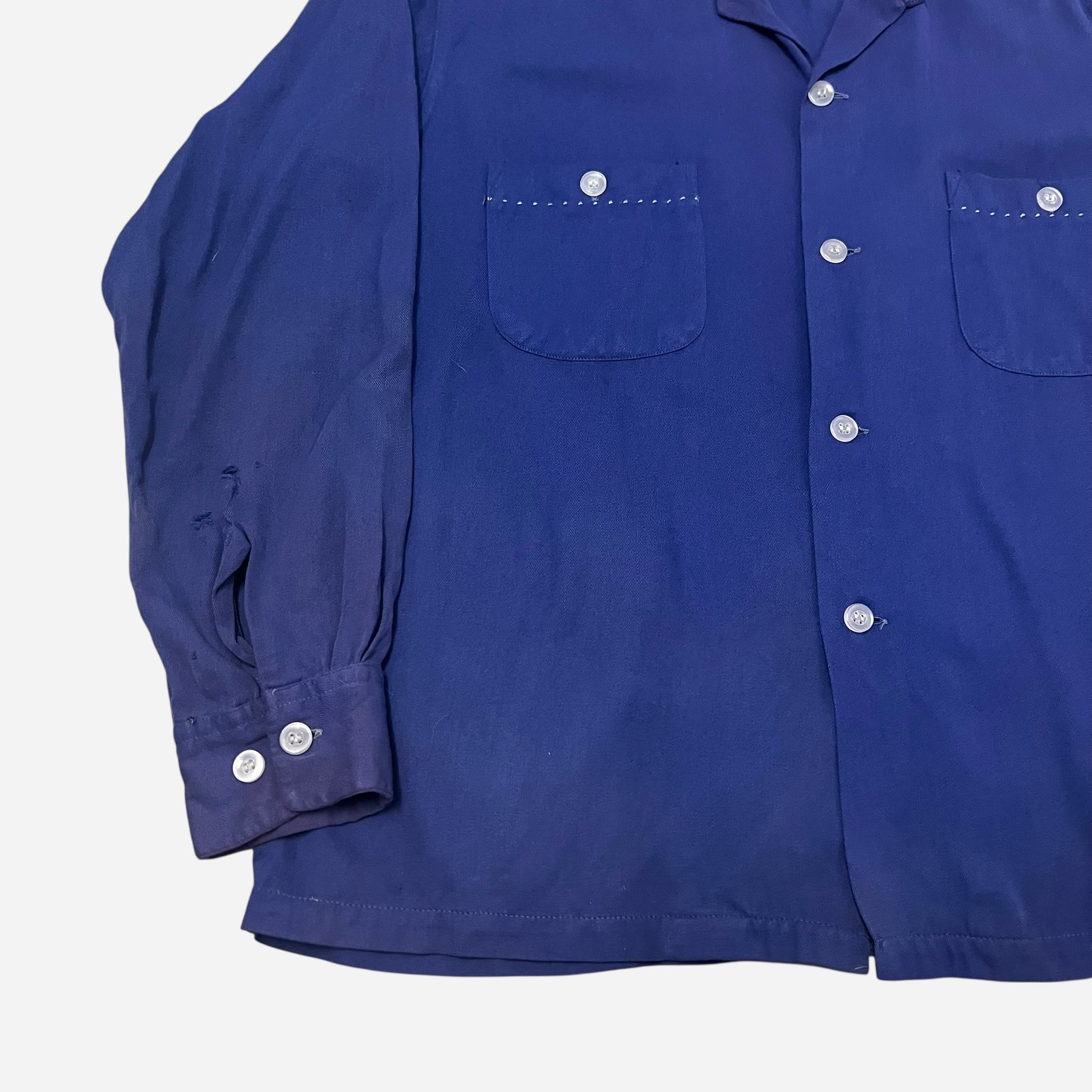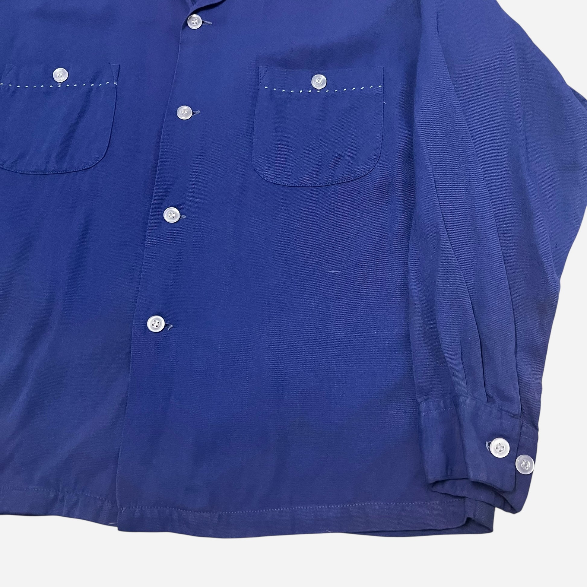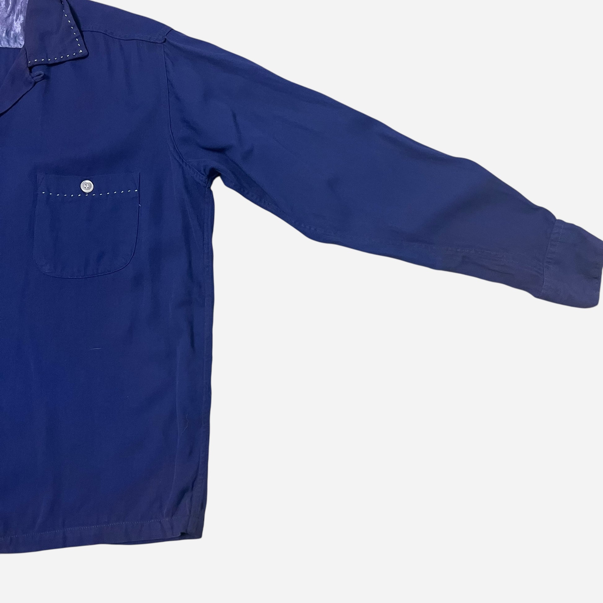 1950s Blue rayon loop collar shirt (M)