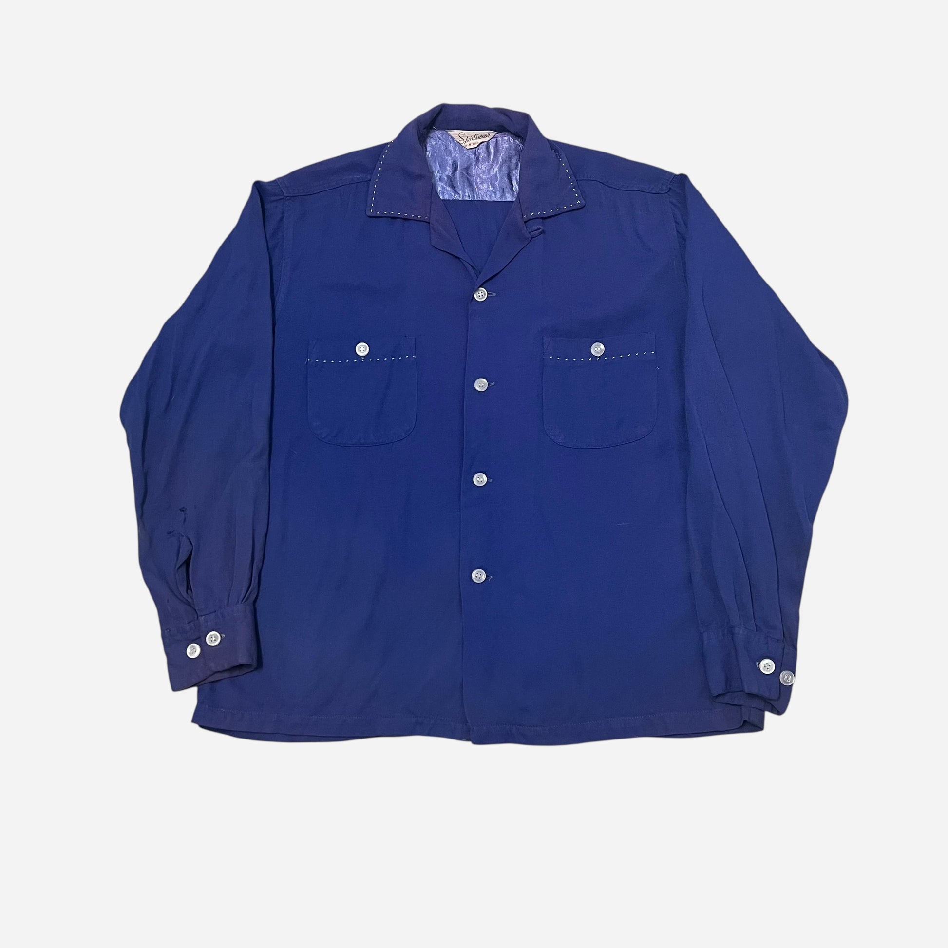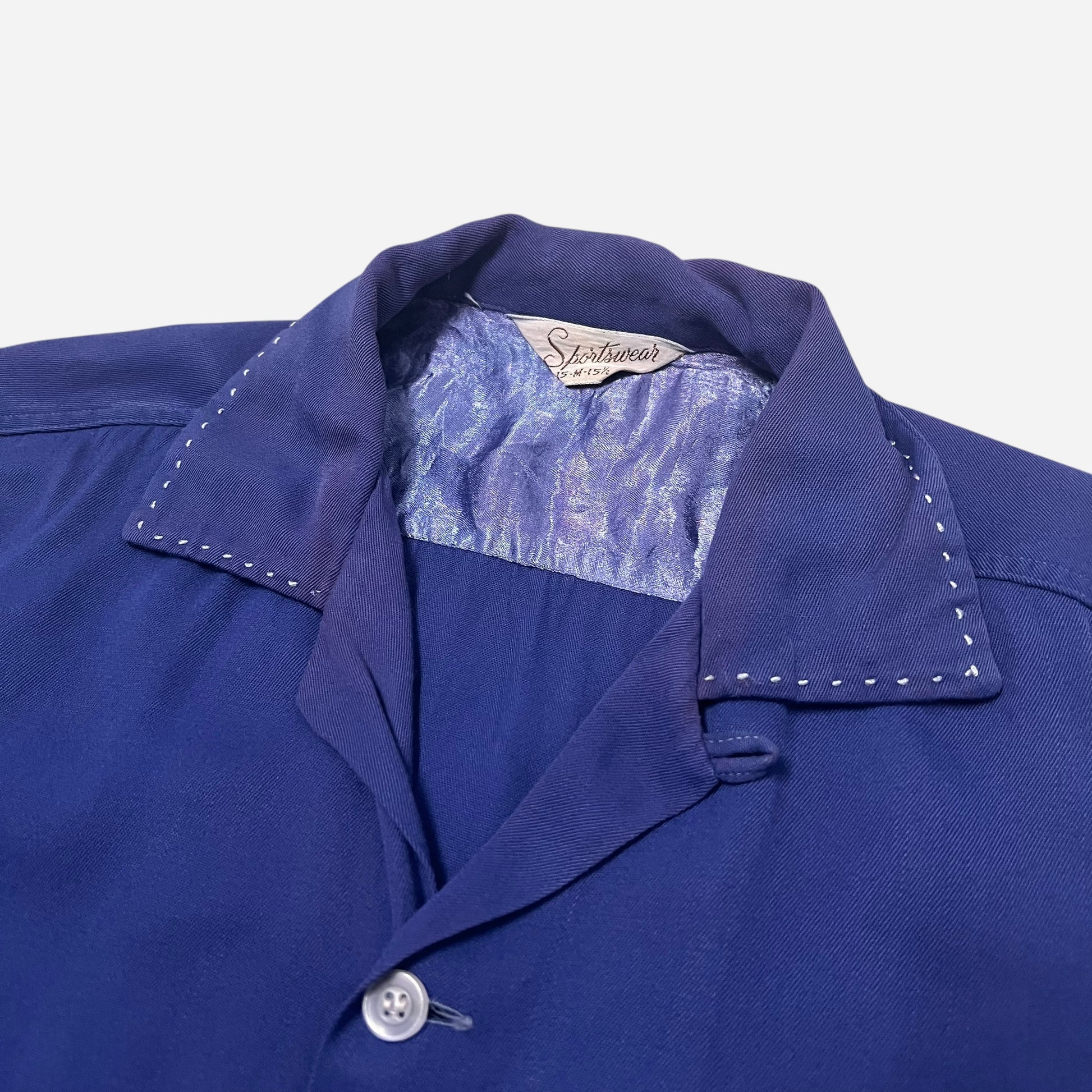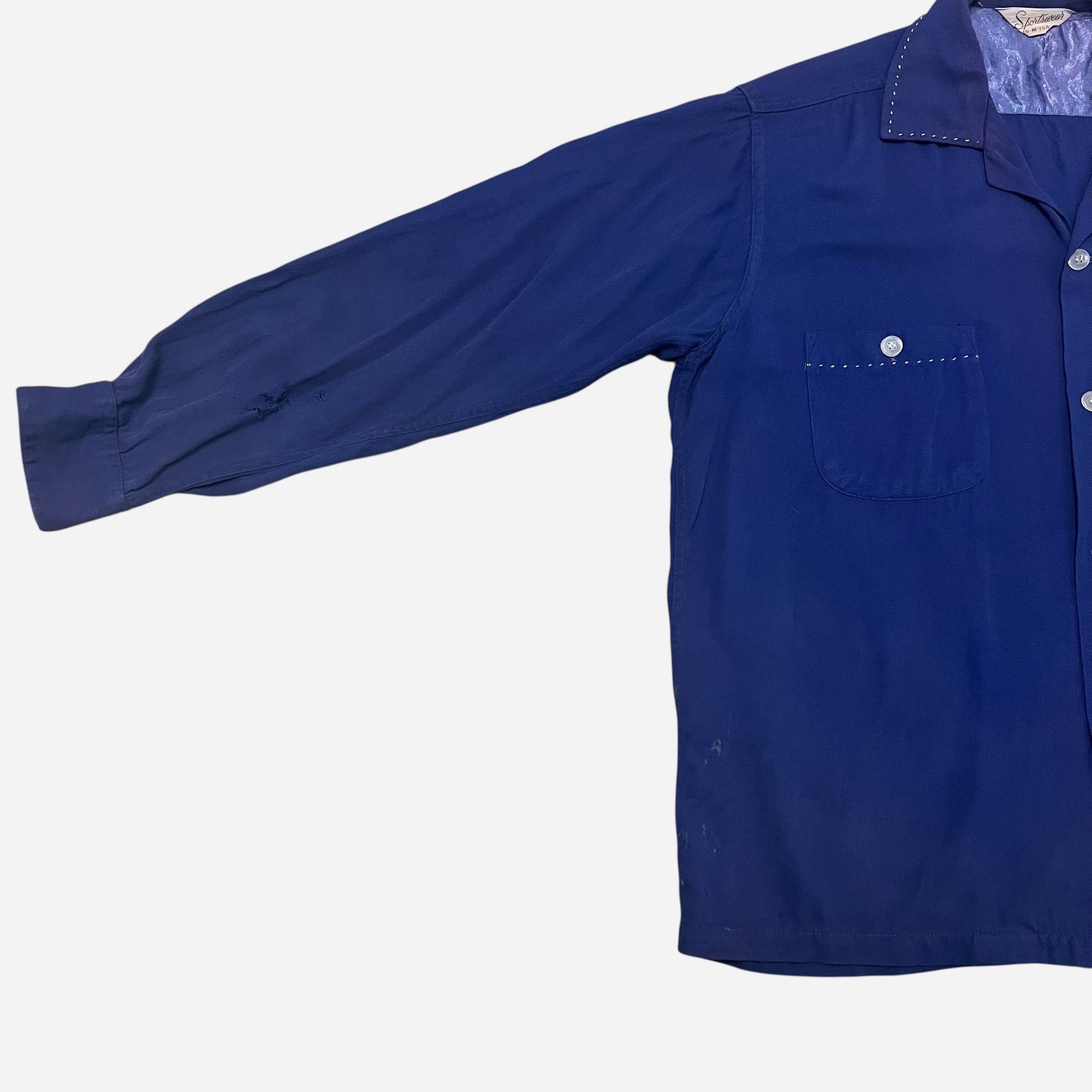 1950s Blue rayon loop collar shirt (M)