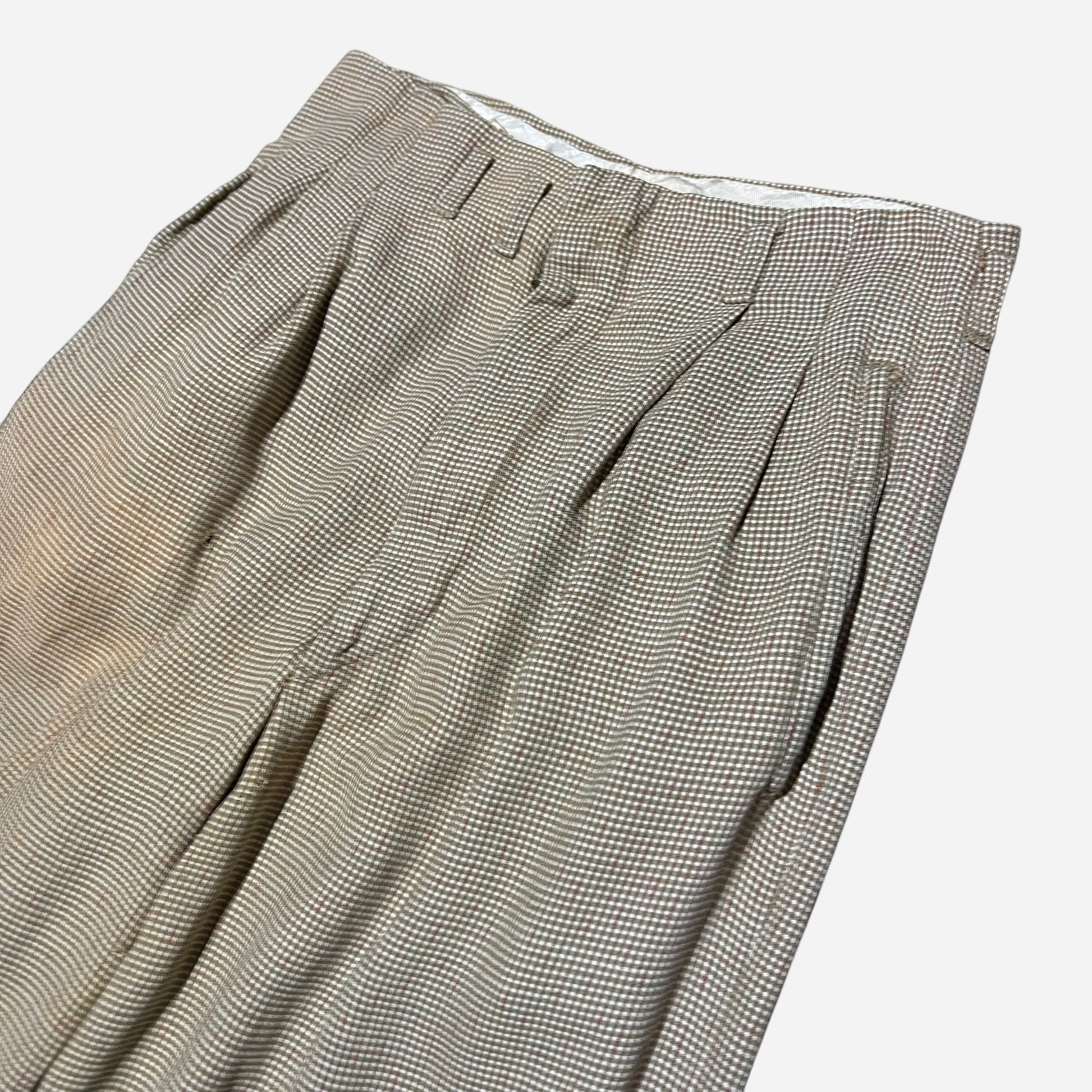 1950s Brown checkered pattern rayon pleated pants (27w)