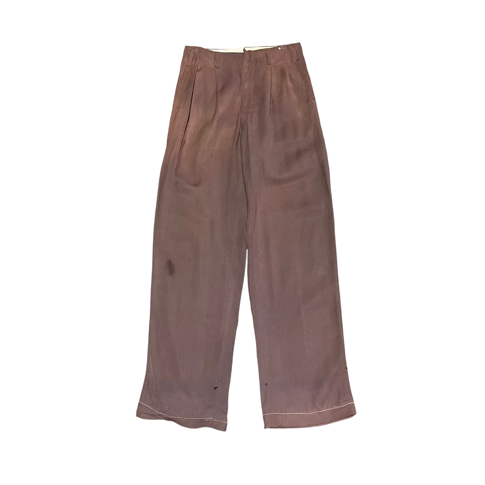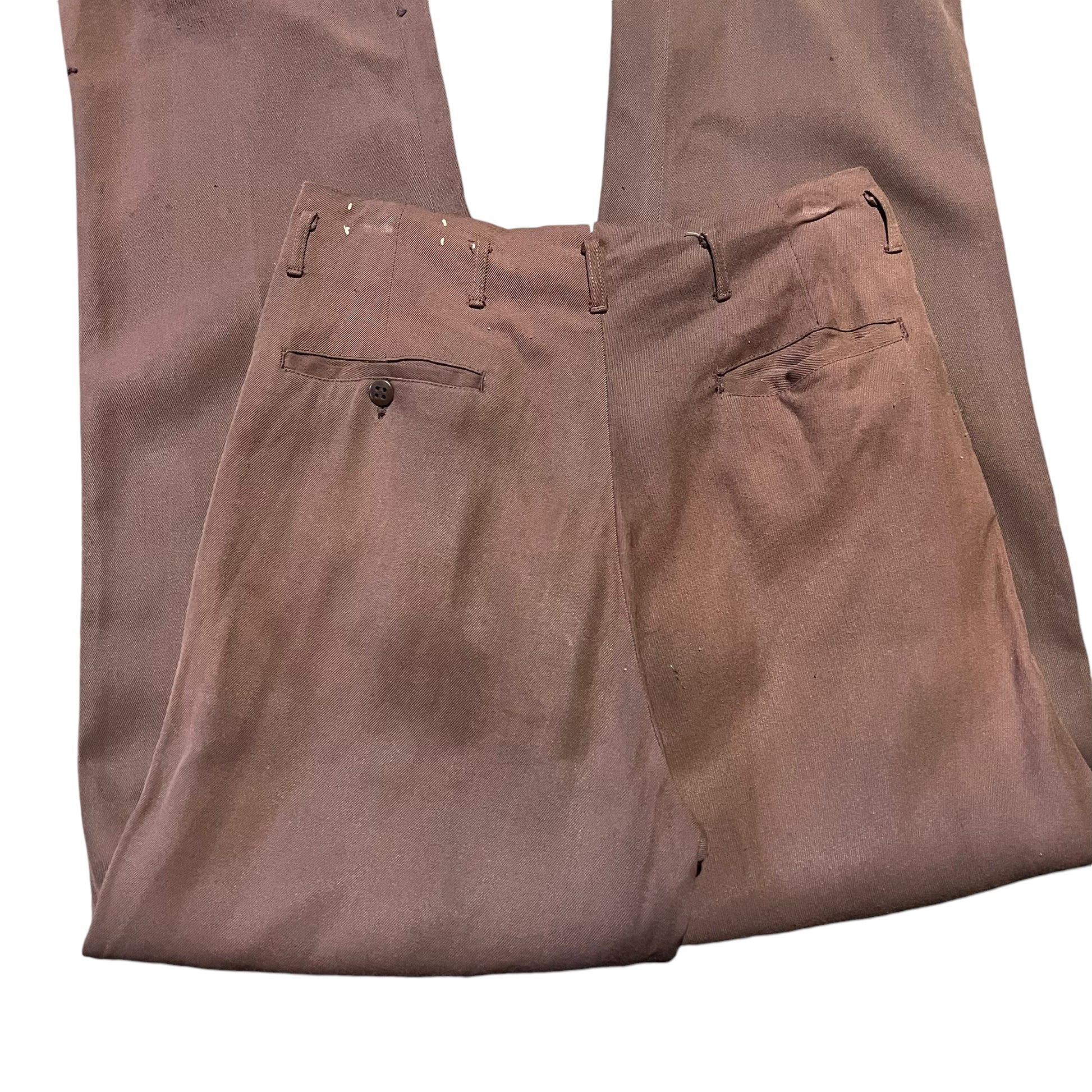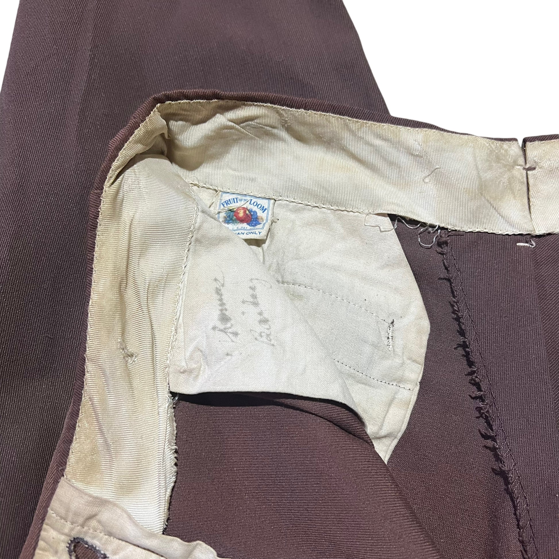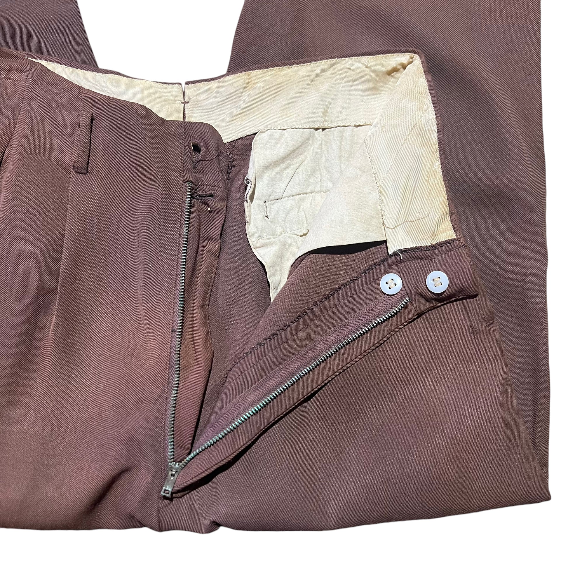 1950s Fruit of the loom brown gabardine pleated pants trousers (27w)