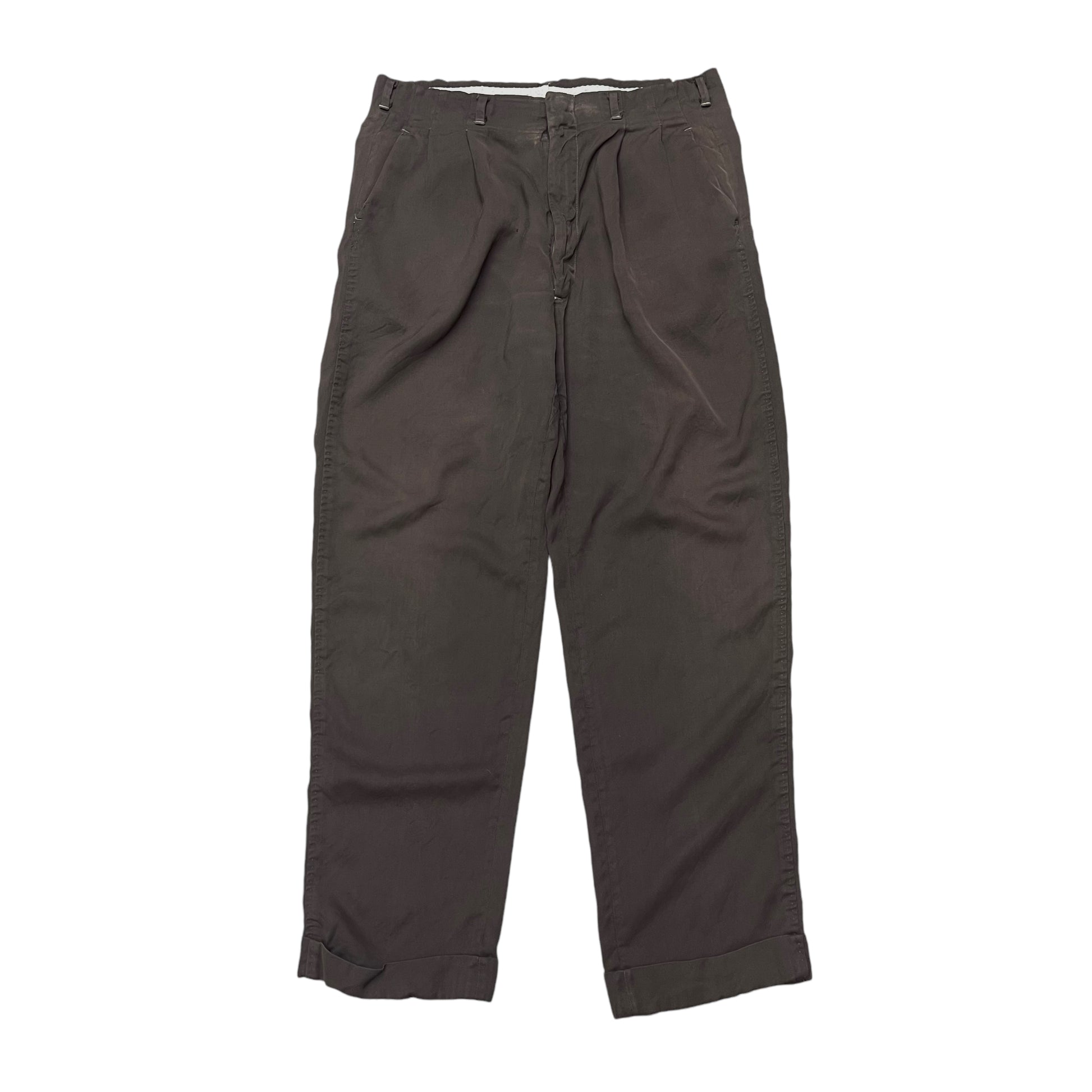 1950s Brown rayon gabardine pleated pants (34w)