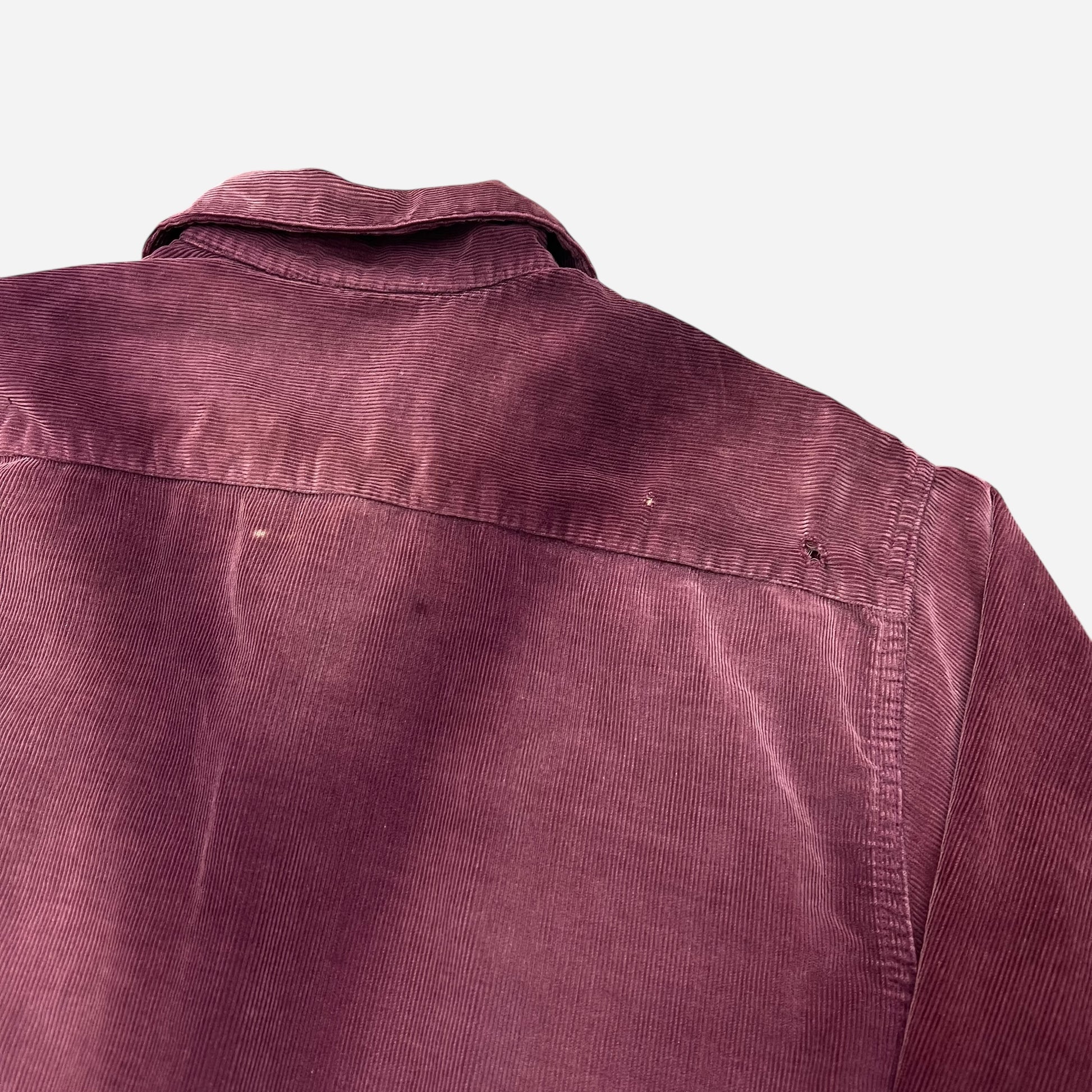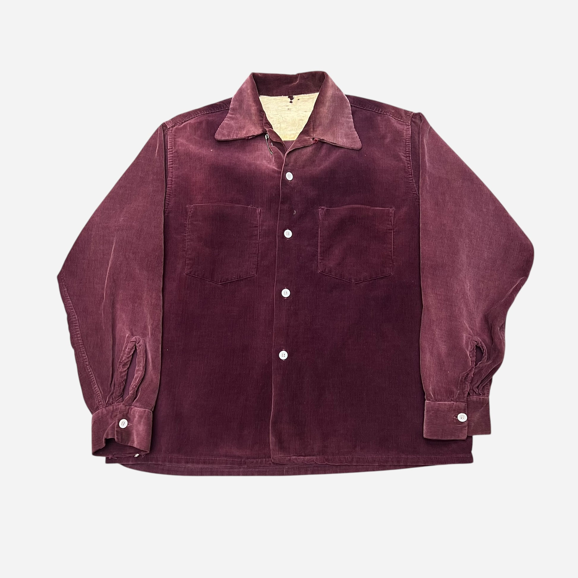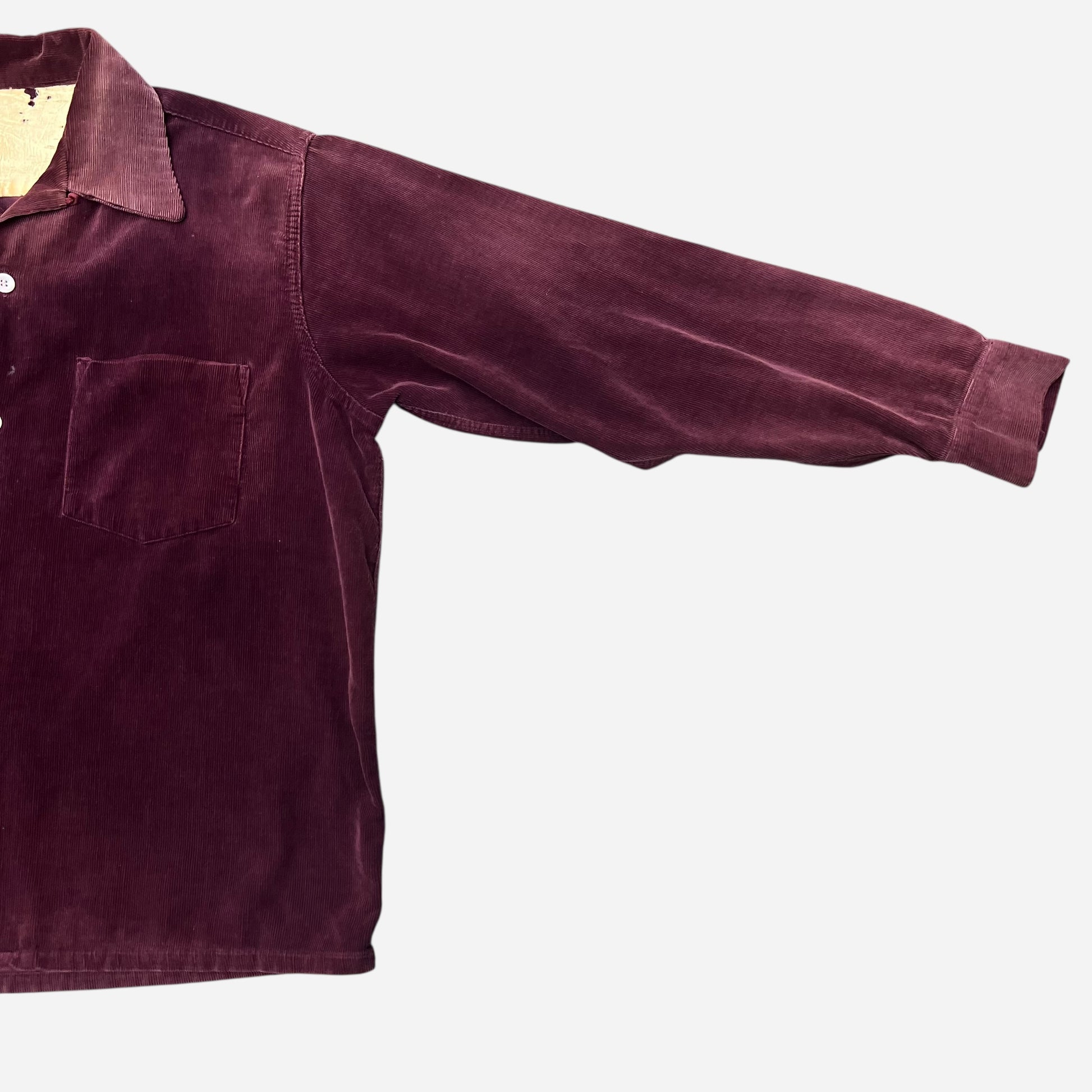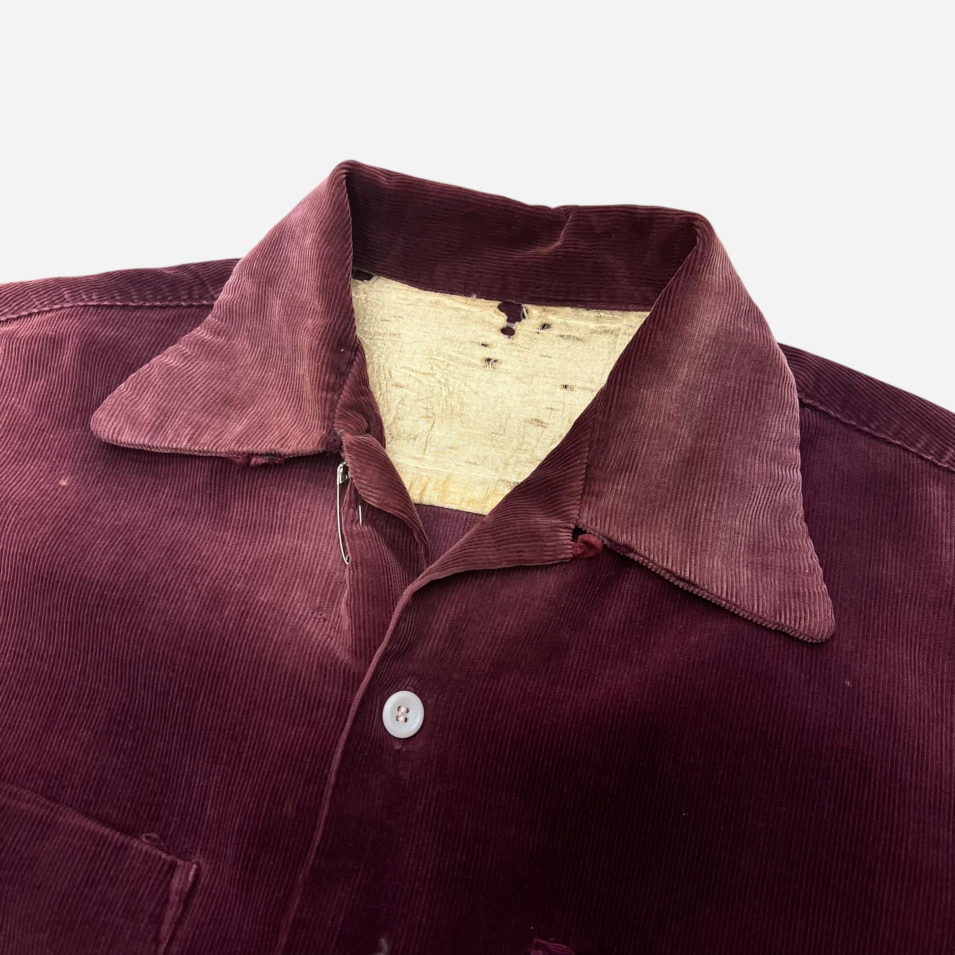 1950s Burgundy corduroy loop collar shirt farmer worn (M/L)