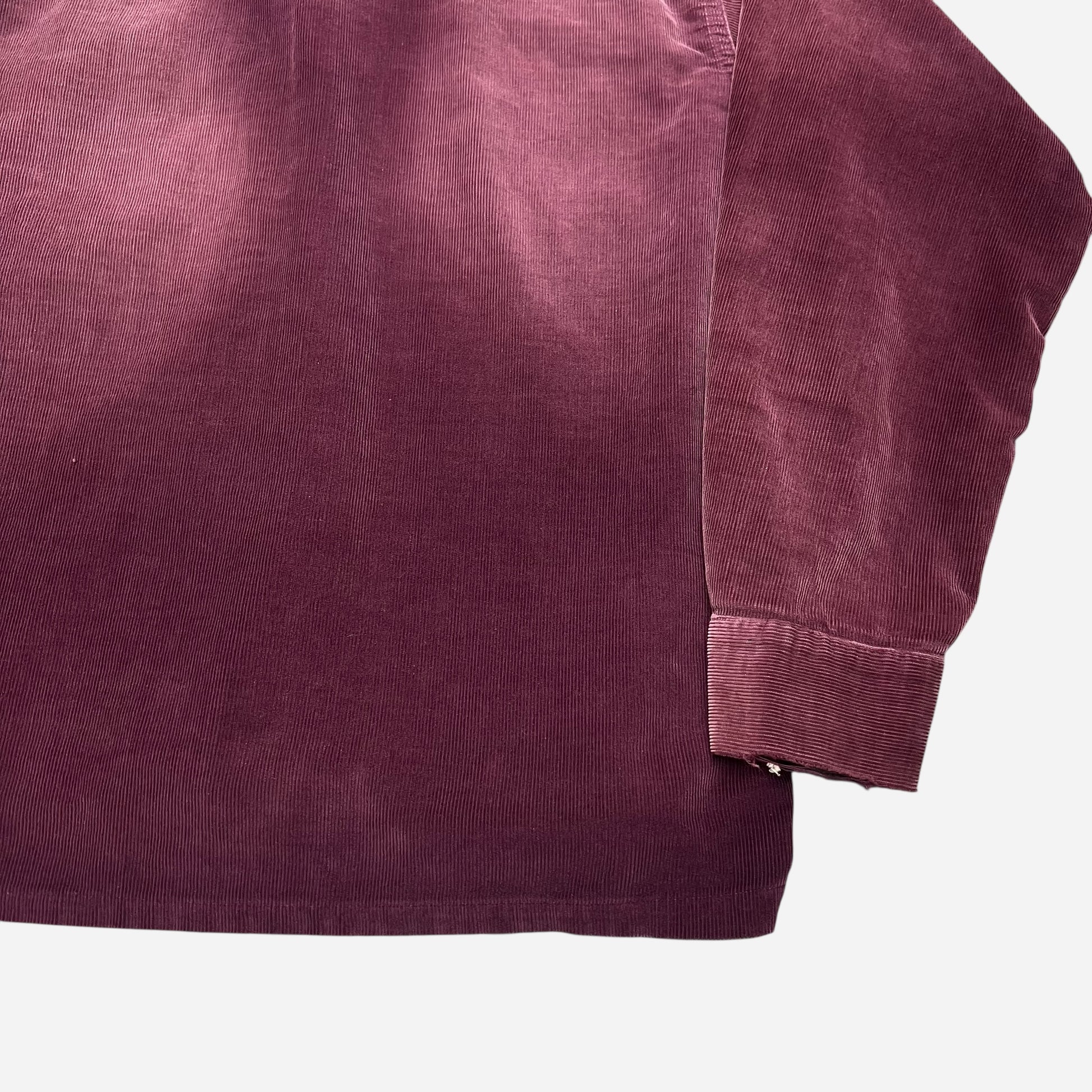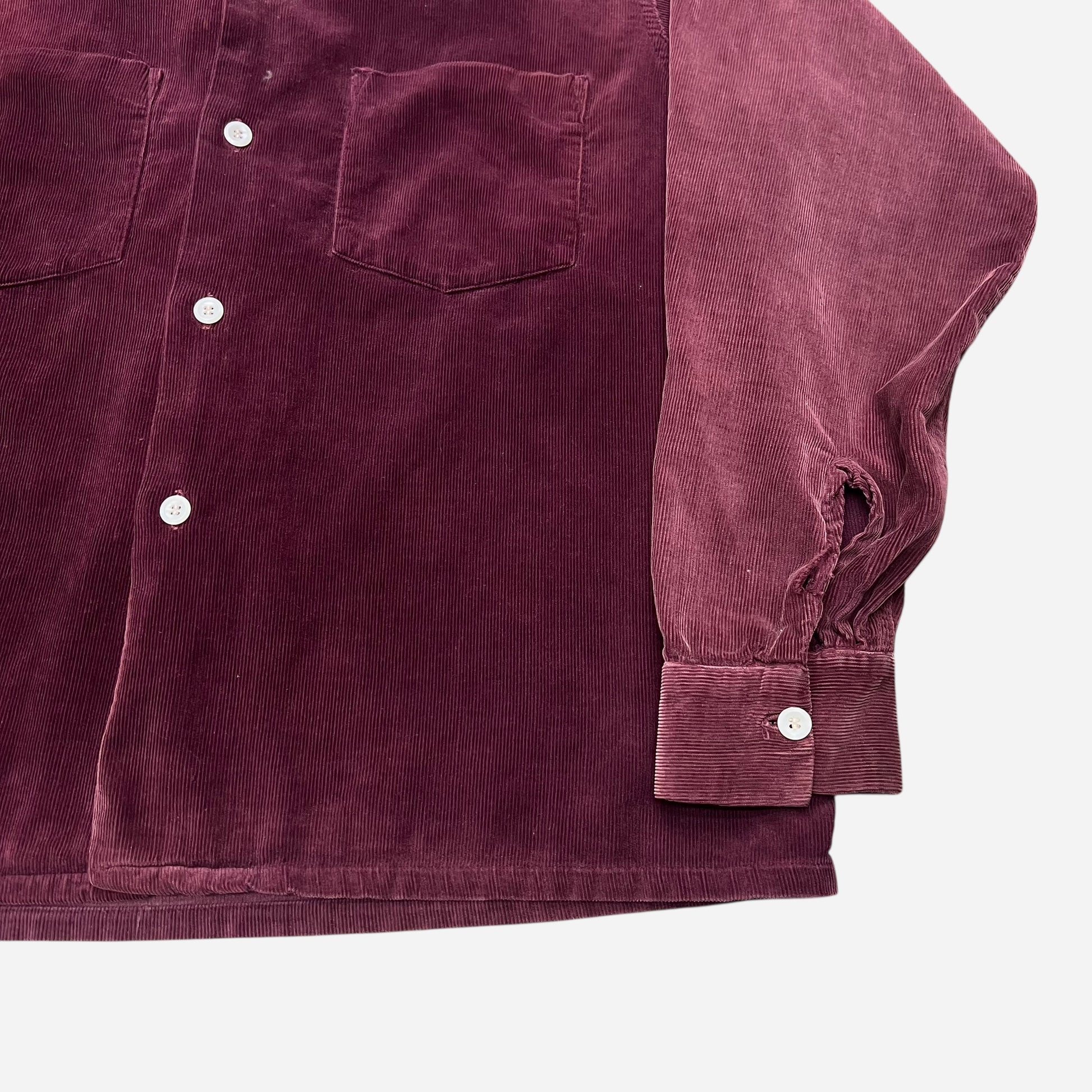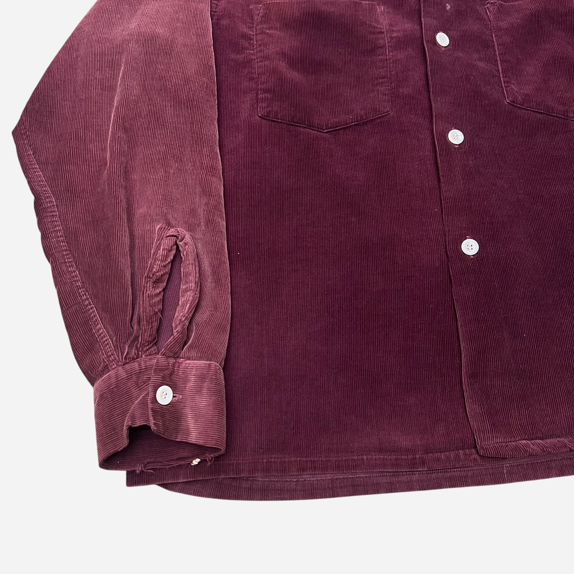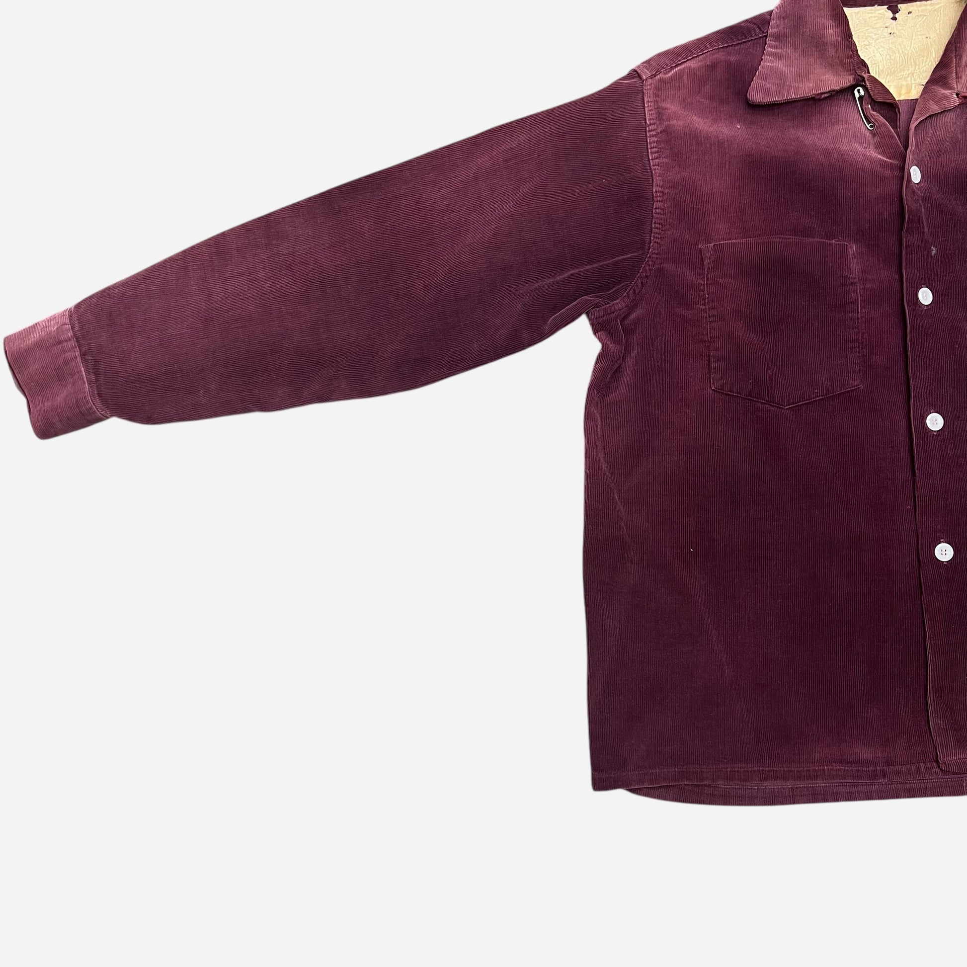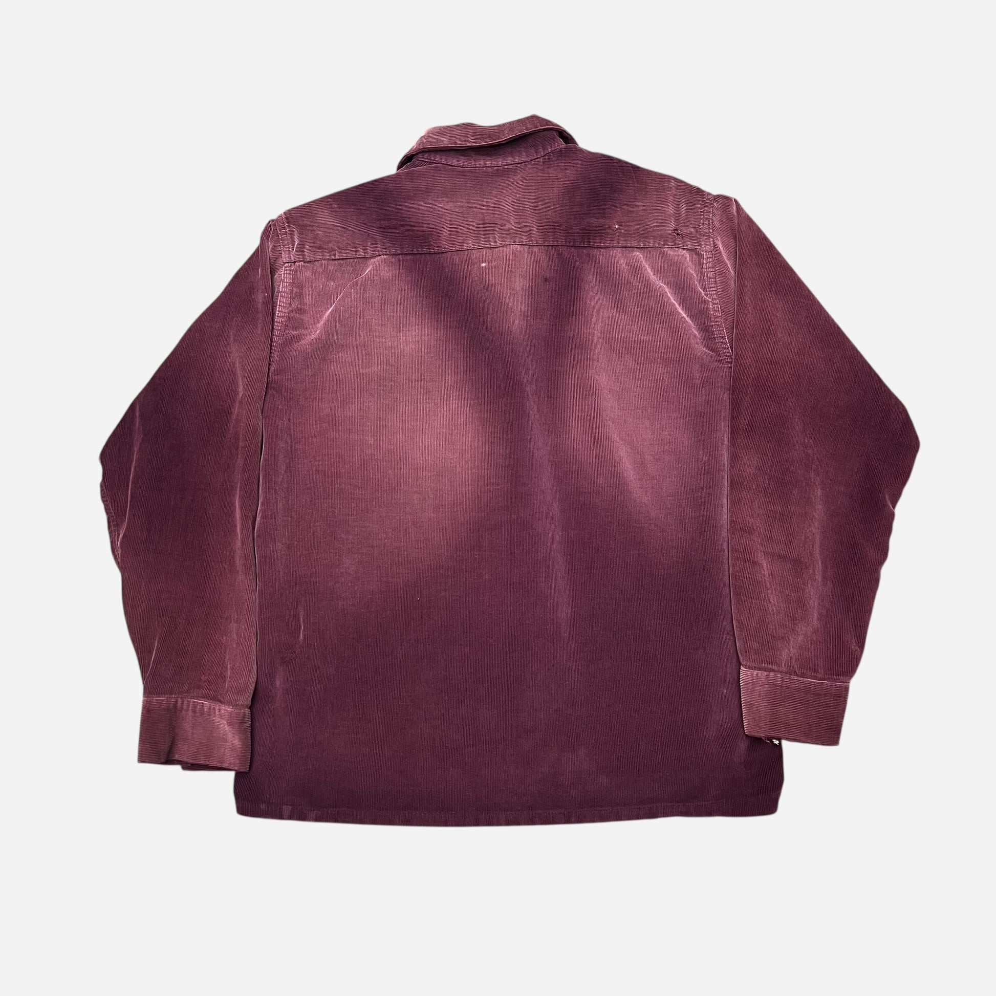 1950s Burgundy corduroy loop collar shirt farmer worn (M/L)