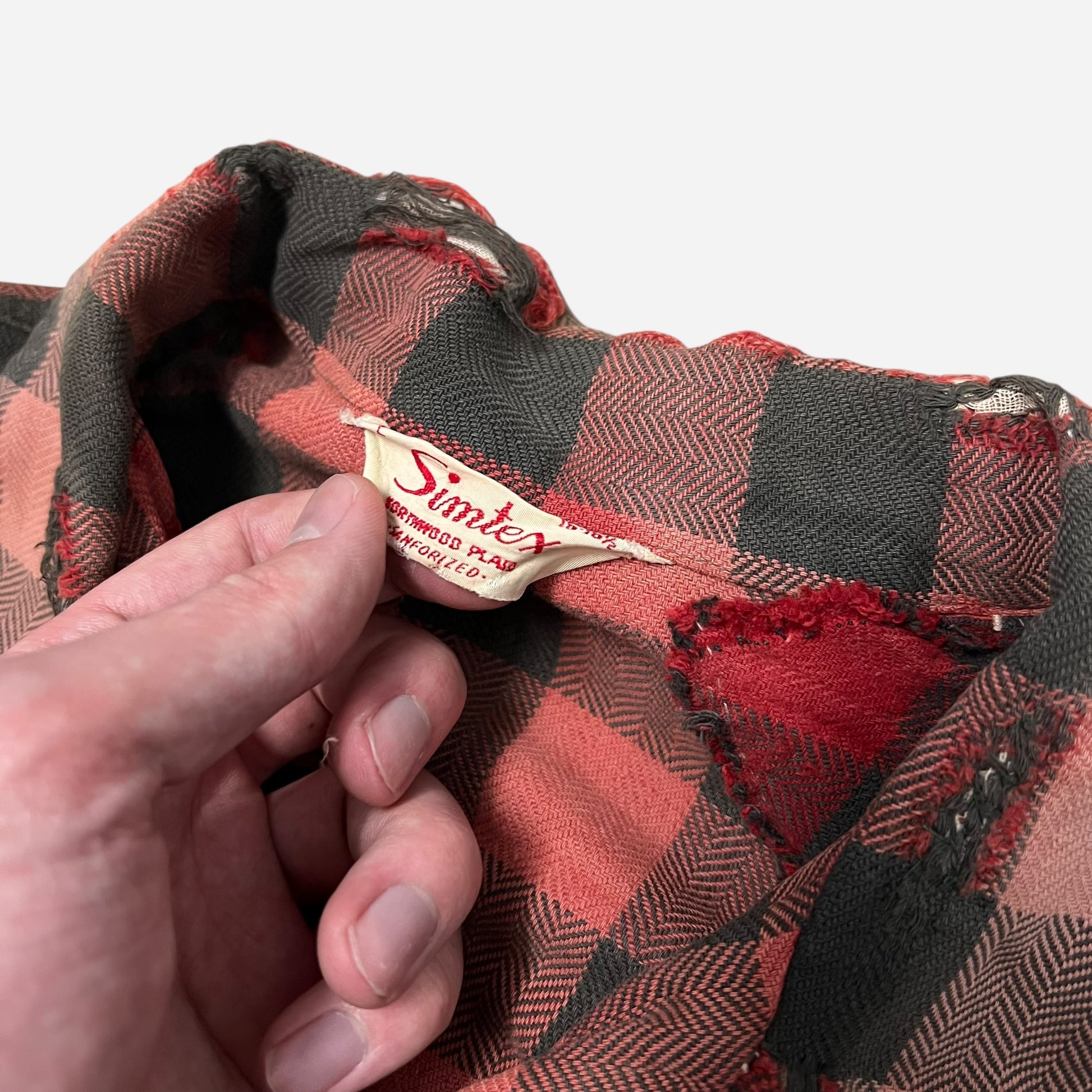 1950s Cotton black & red flannel loop collar shirt (L)
