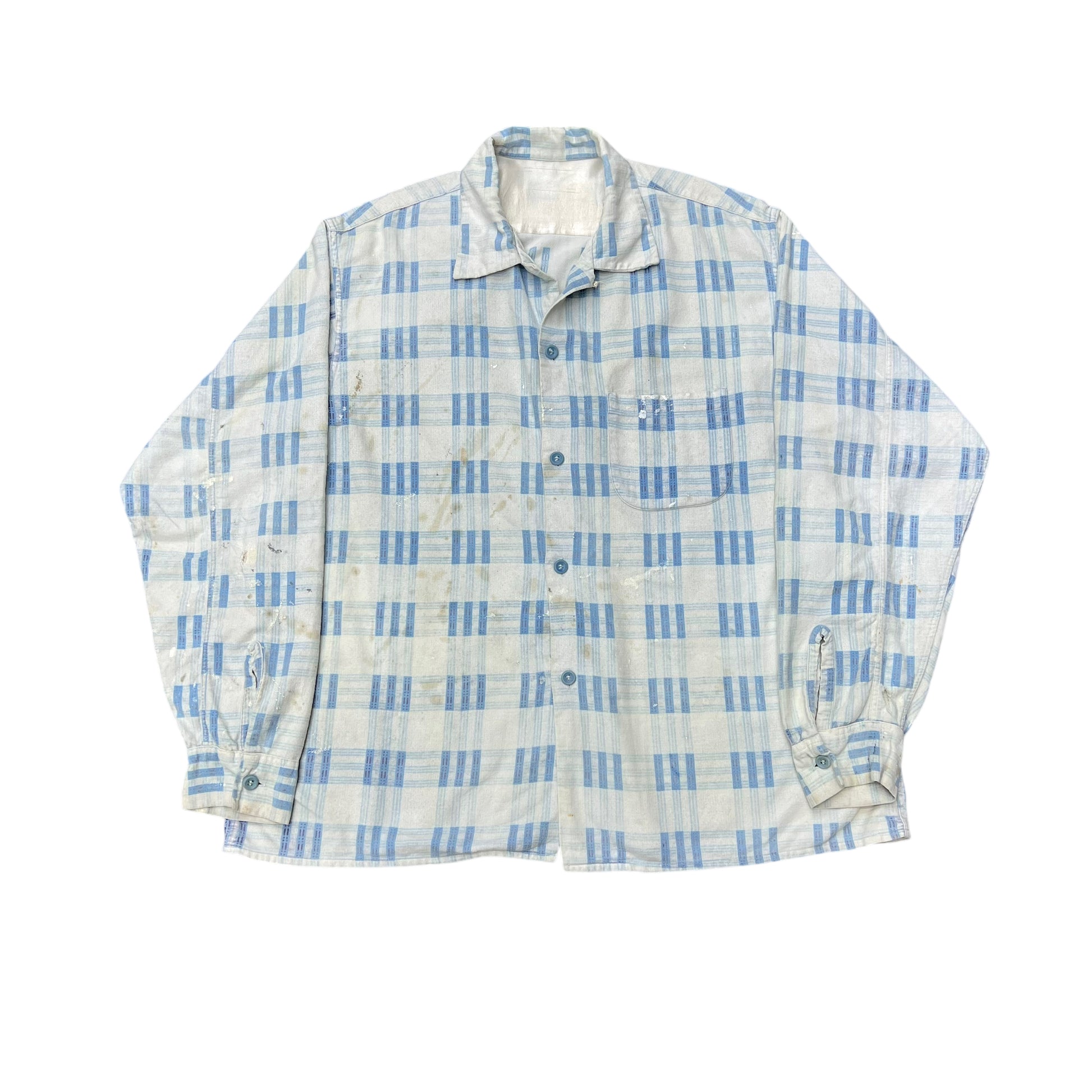 1950s Cotton printed pattern flannel loop collar shirt (XL)