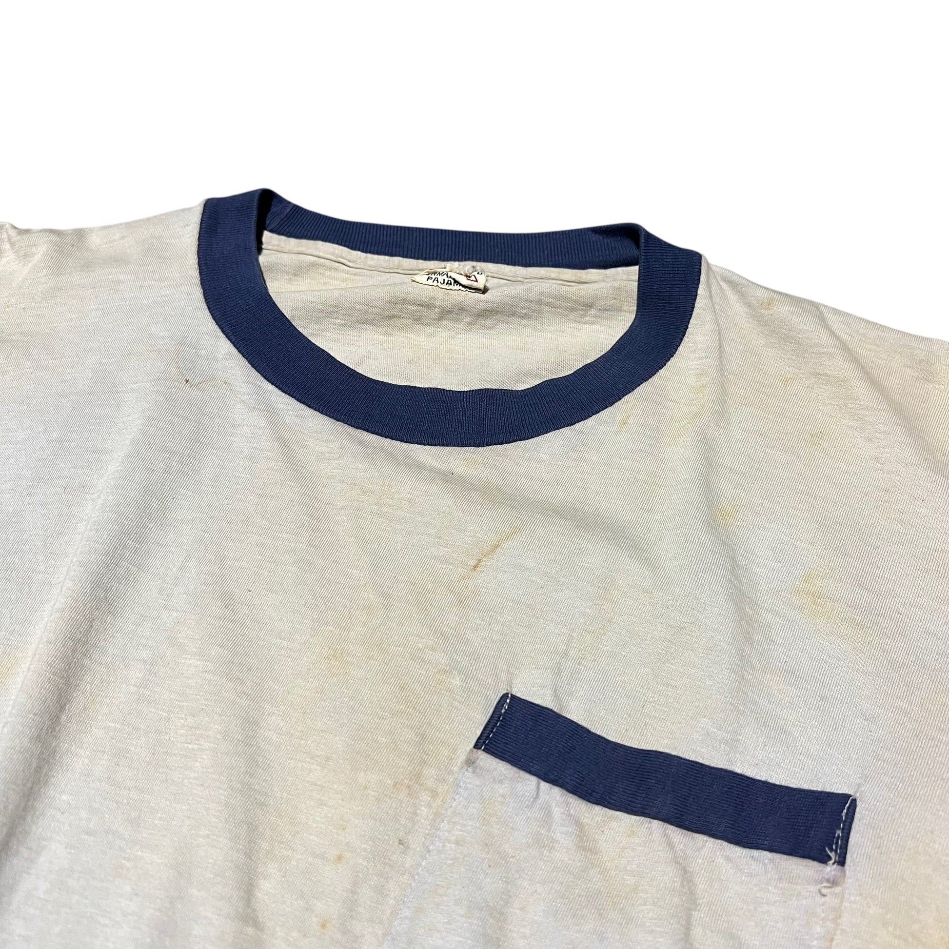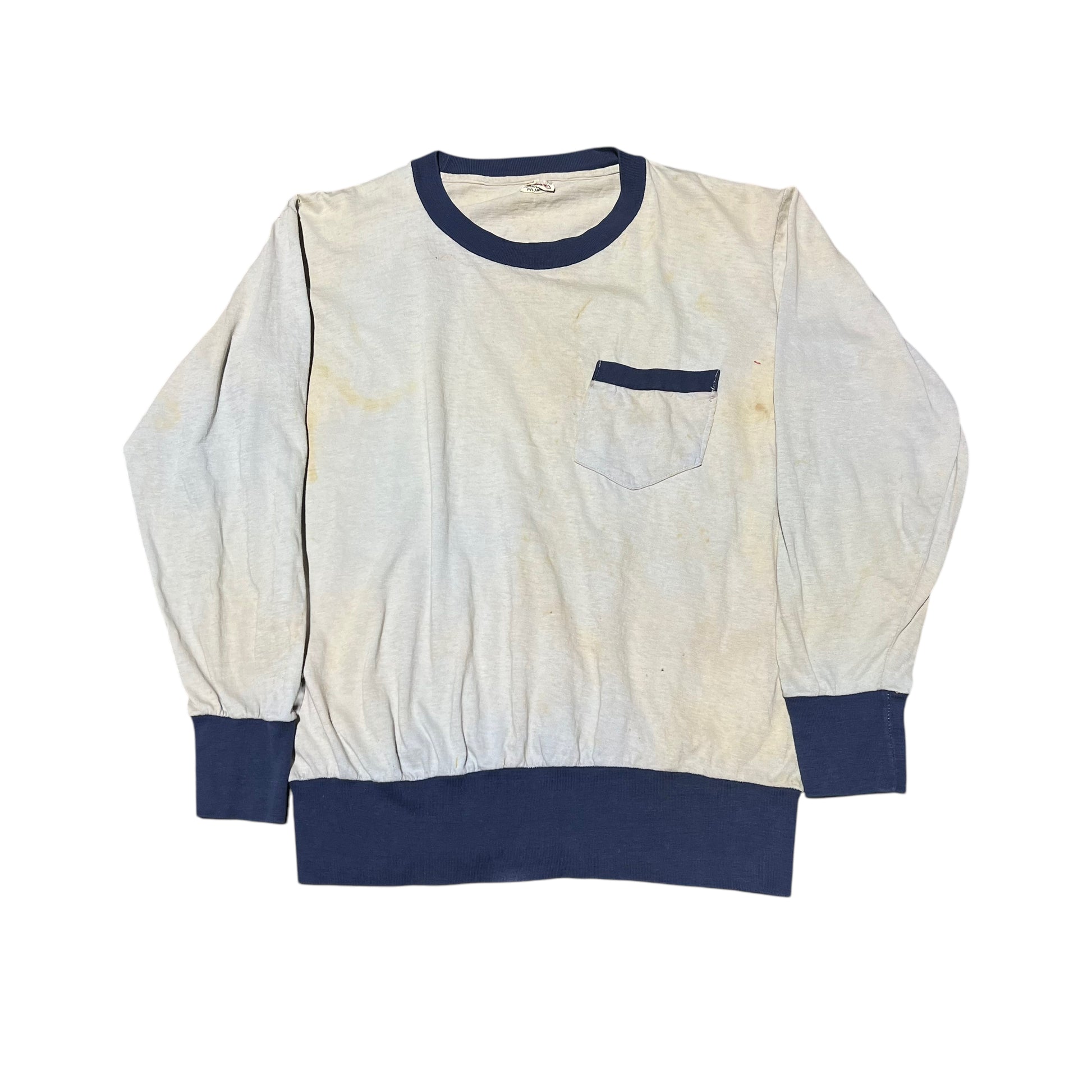 1950s Cotton two toned one pocket long sleeve sleep shirt (M/L)